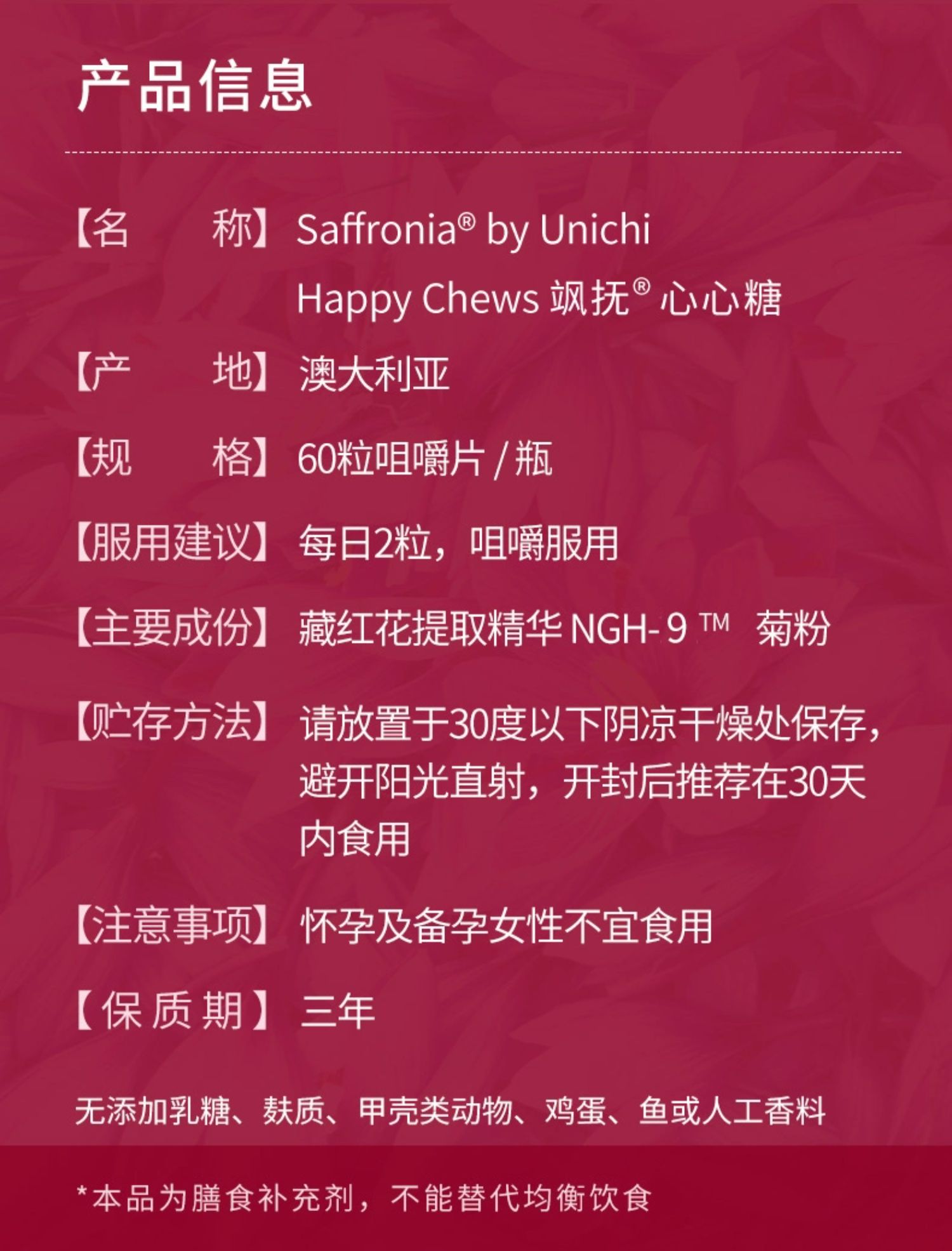 【保税仓】UNICHI抗焦虑咀嚼片60粒