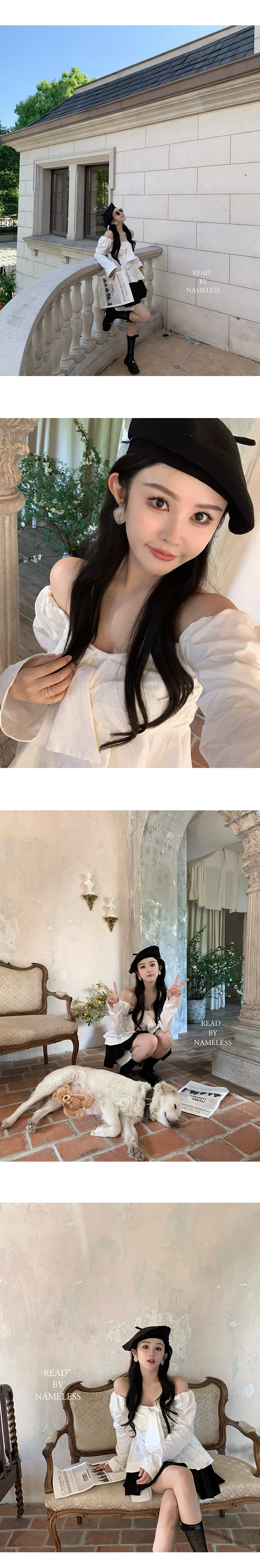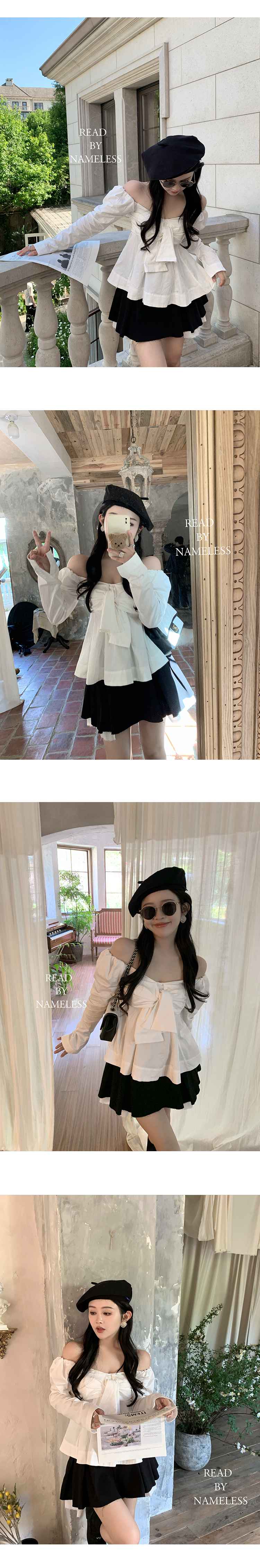 Read Nameless/露肩系带蝴蝶结衬衫白色