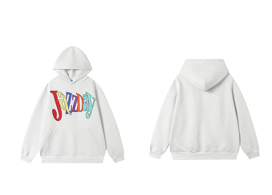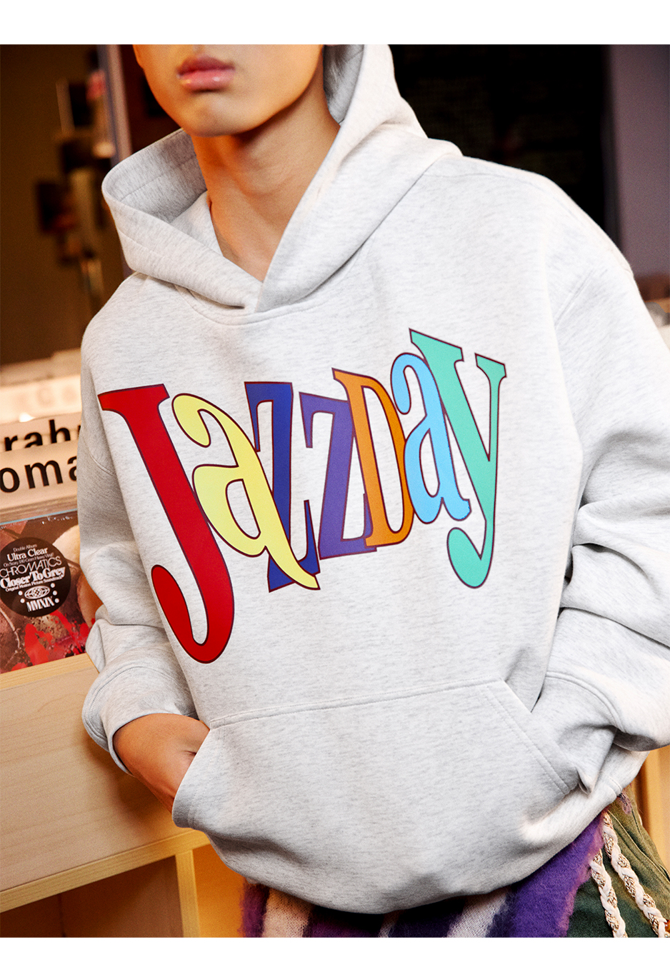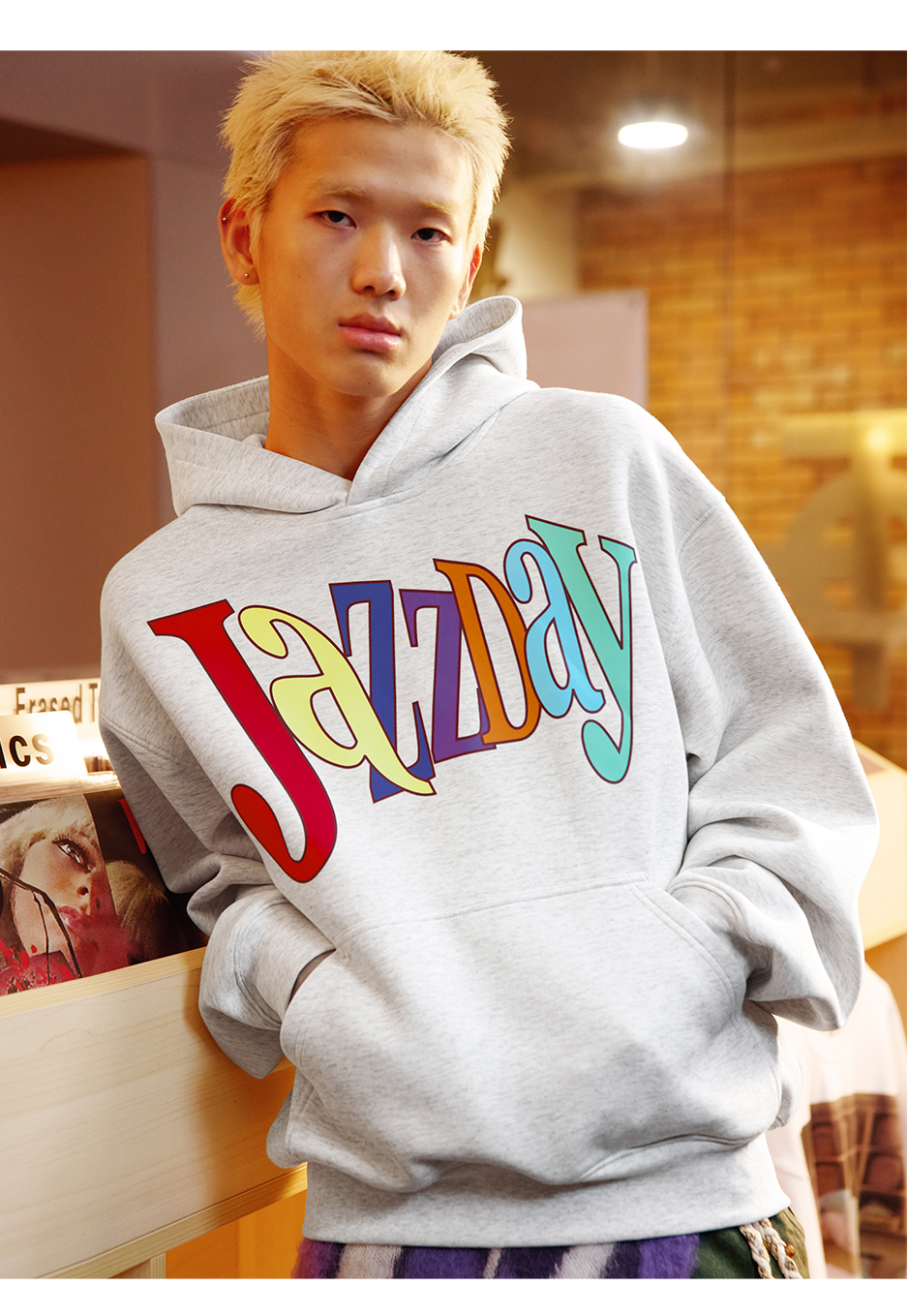 CryingCenterJazzDay字母印花棉软空气层廓形戴帽花灰卫衣