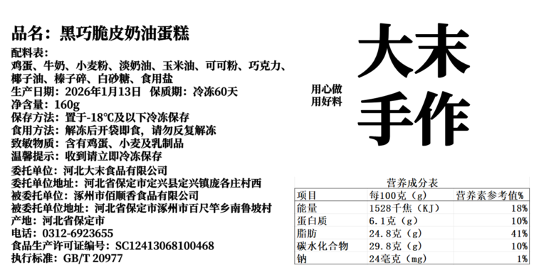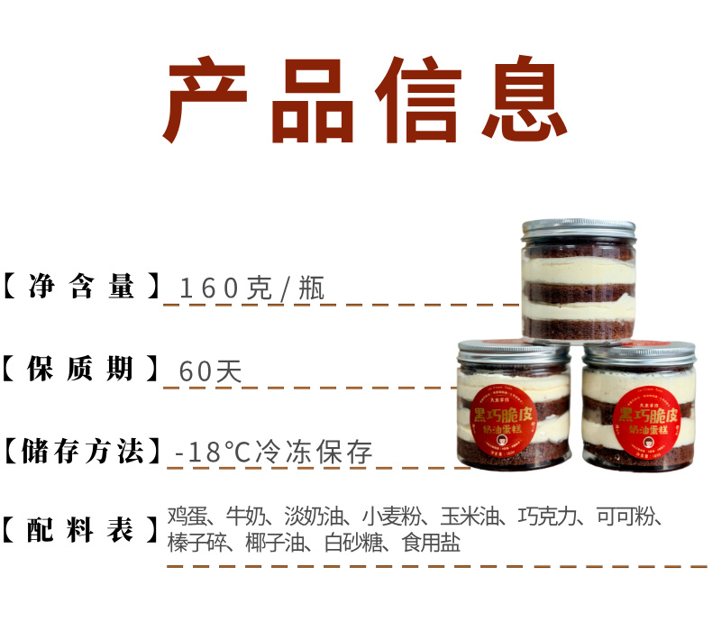 【品名/规格】【大末手作】黑巧脆皮奶油蛋糕(160g/罐)