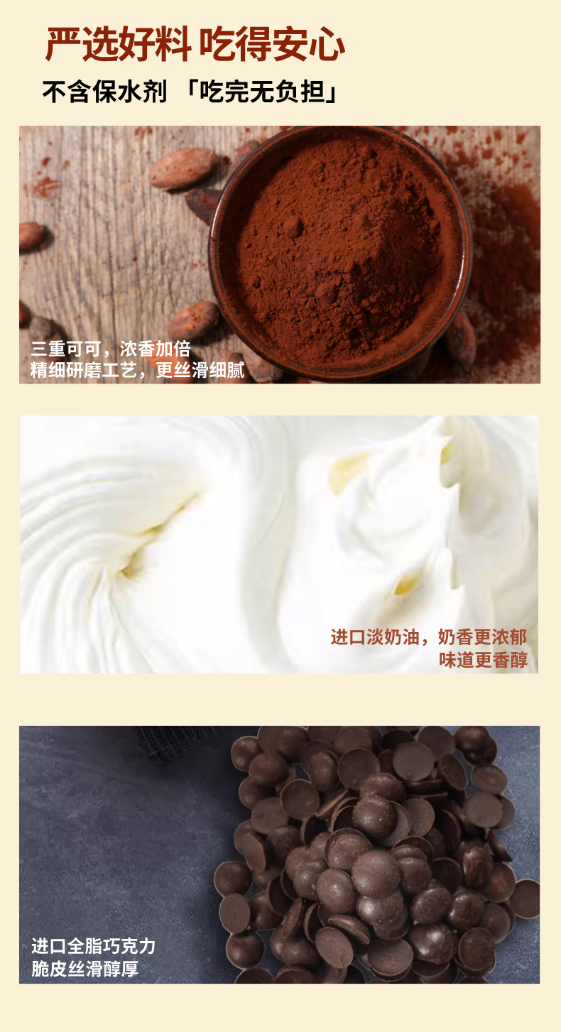 1、进口全脂黑巧克力,浓郁不腻,回味悠长