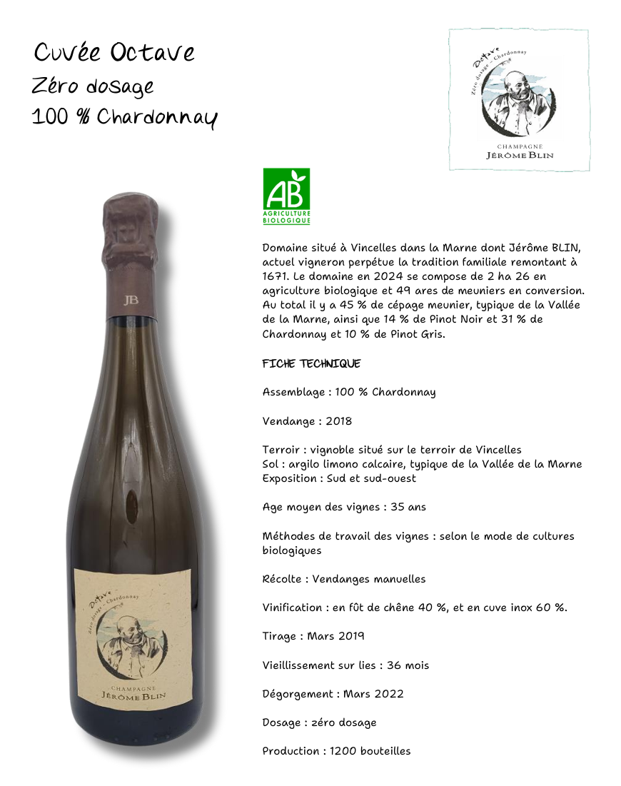 2018 Jerome Blin Octave Blanc de Blancs 杰罗姆·布兰酒庄"奥克塔夫"白中白年份香槟