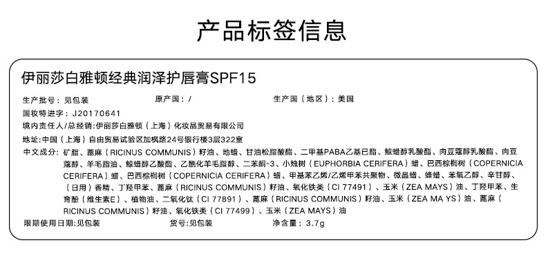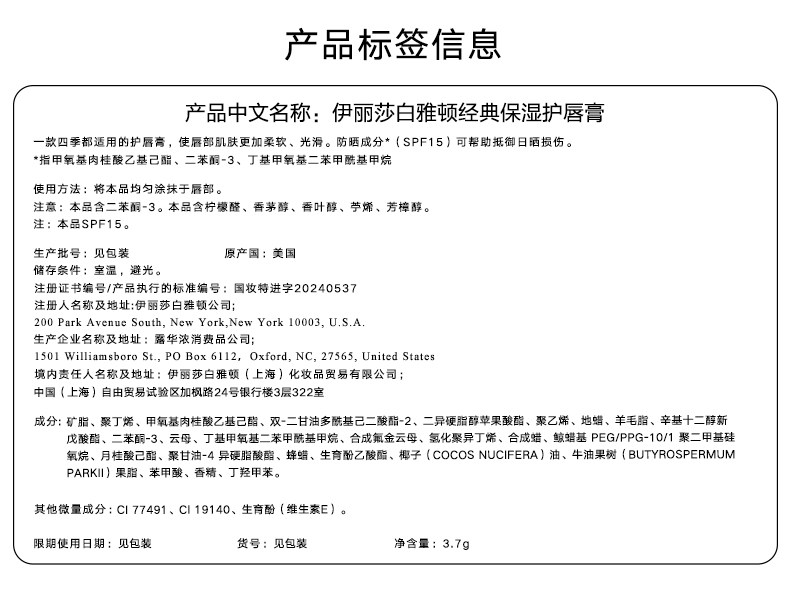伊丽莎白雅顿 经典保湿护唇膏 3.7g