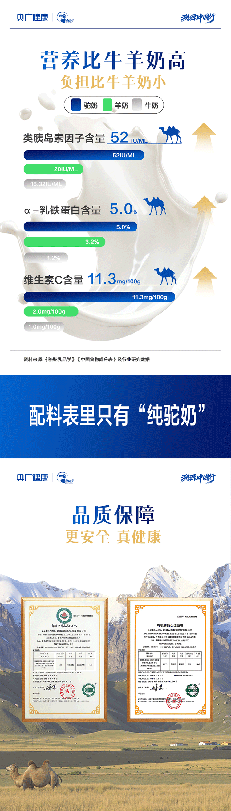 央广健康有机全脂纯骆驼乳粉