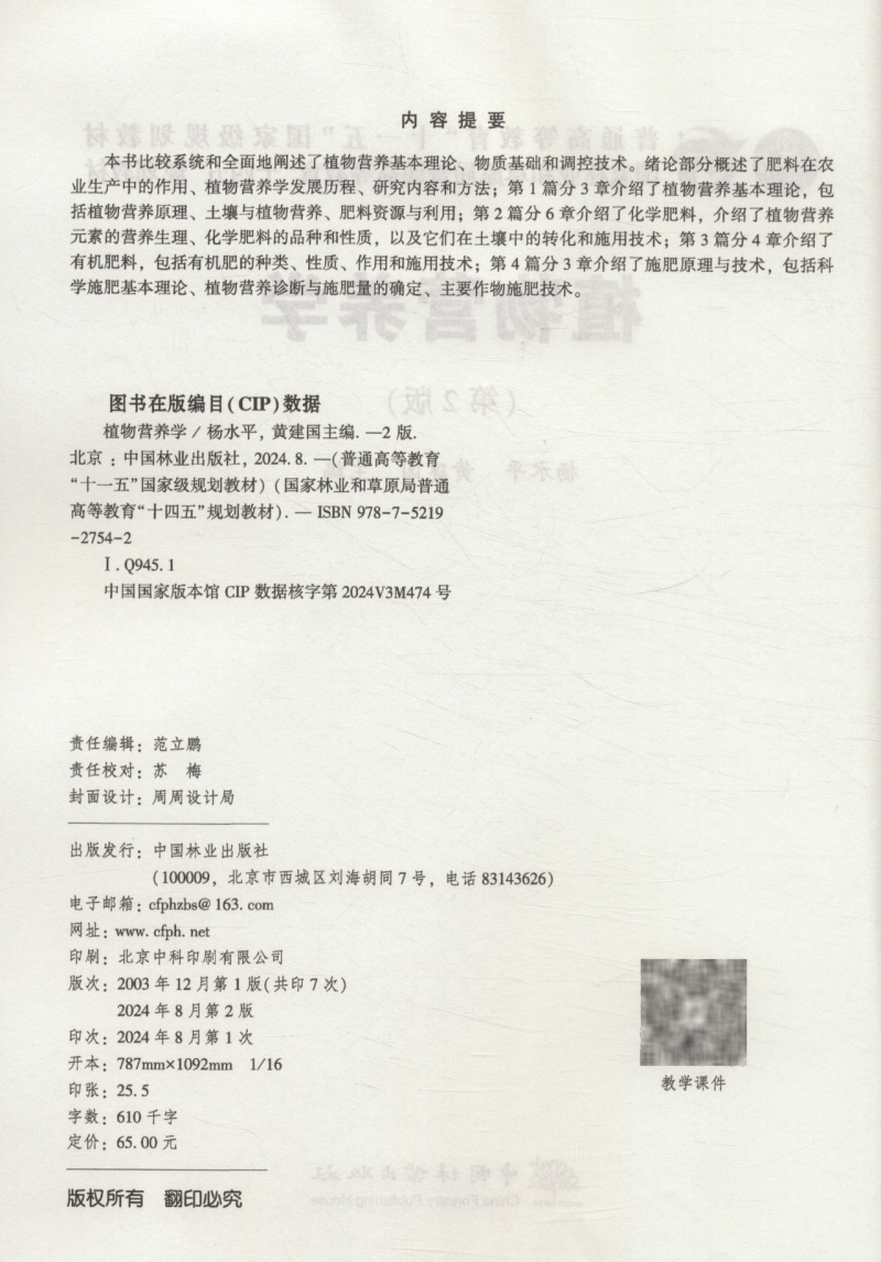 植物营养学(第2版普通高等教育十一五国家级规划教材) &2754
