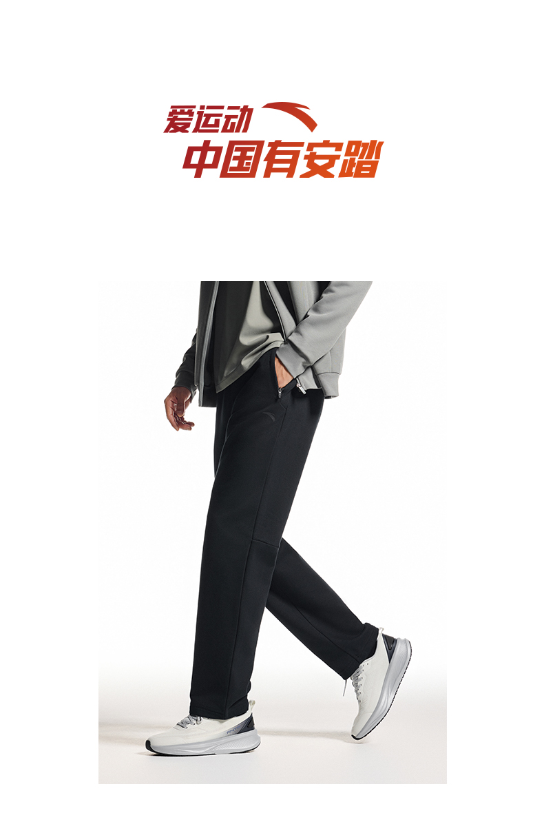 安踏加绒保暖针织运动长裤男冬季新款黑色跑步直筒卫裤152547324N