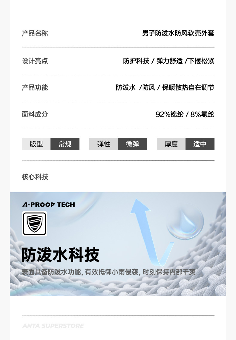 超级安踏软壳外套秋冬新款男子防泼水夹克户外防风上衣152536605U
