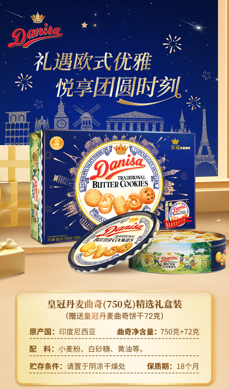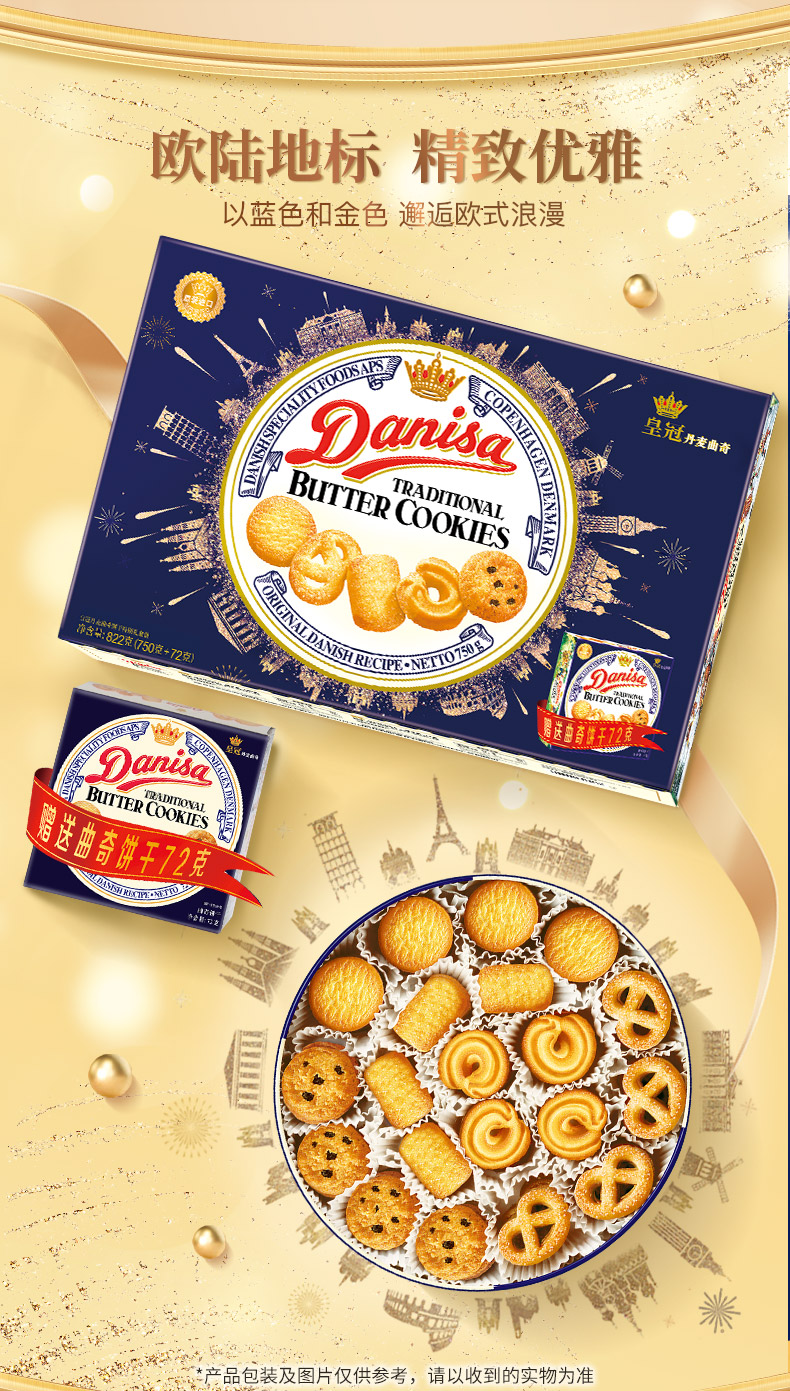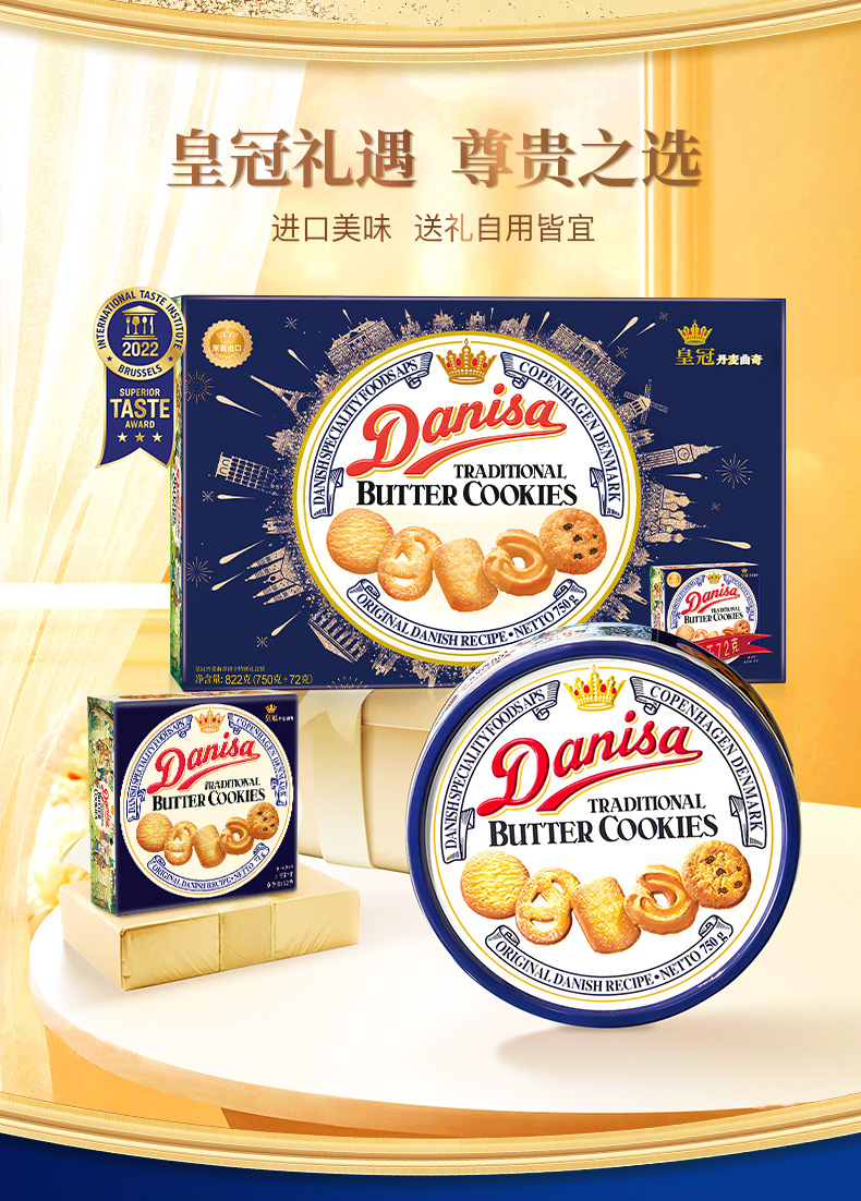 【经典曲奇】皇冠丹麦曲奇饼干750g铁盒装!进口黄油,酥香经典,下午茶/送礼不出错的选择!