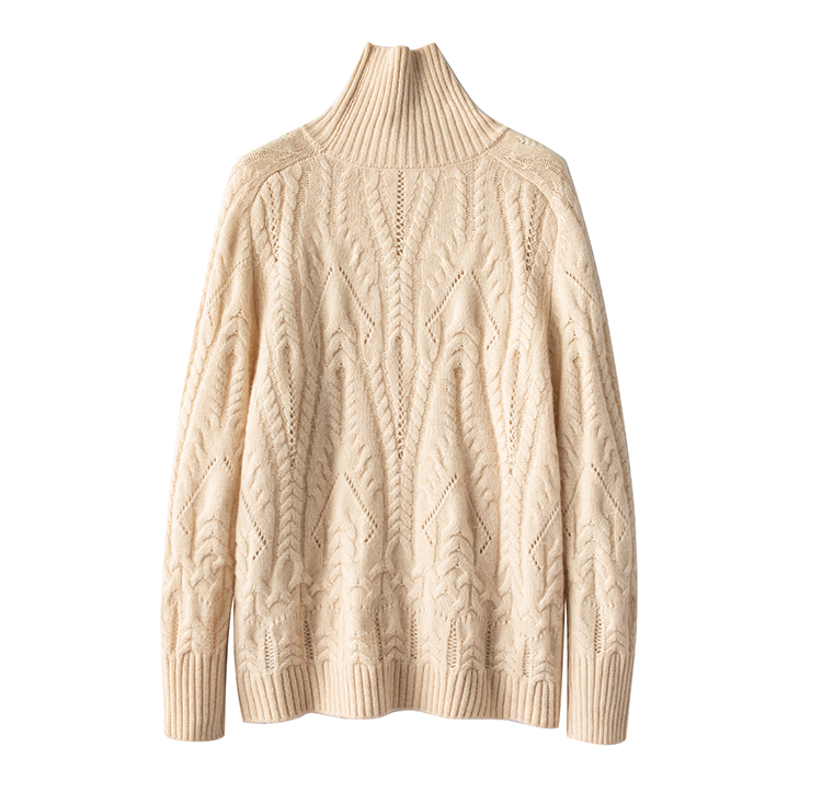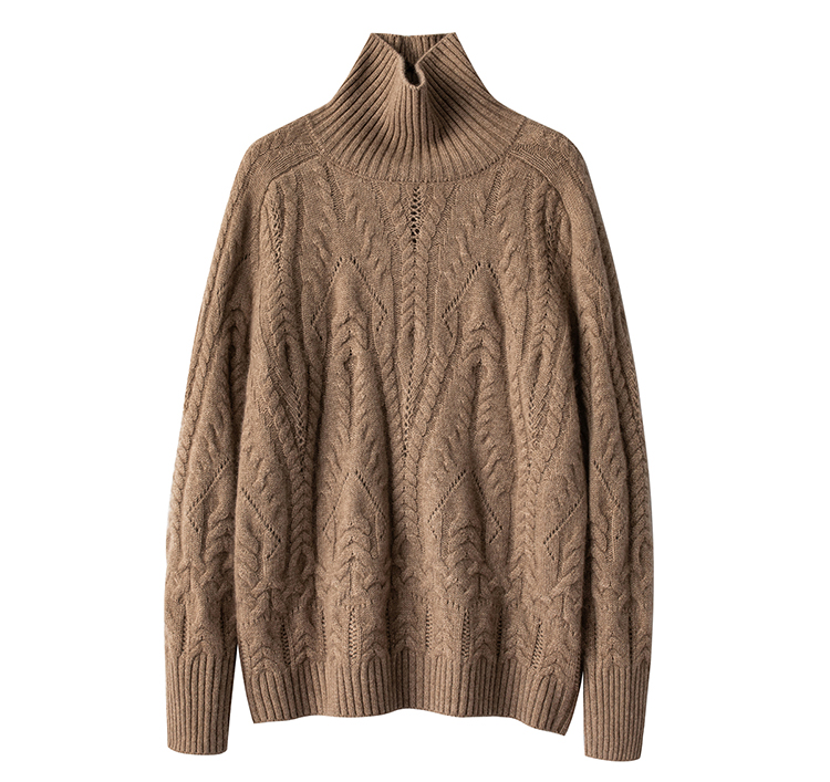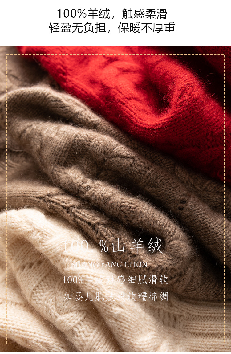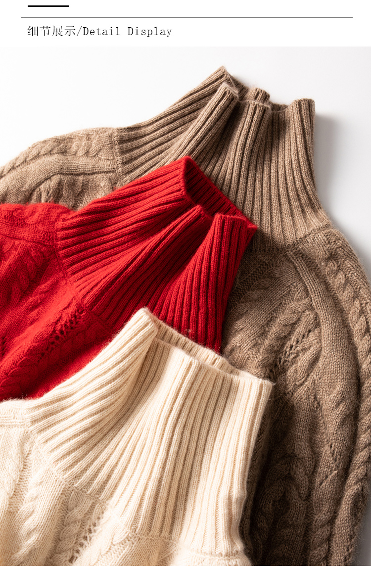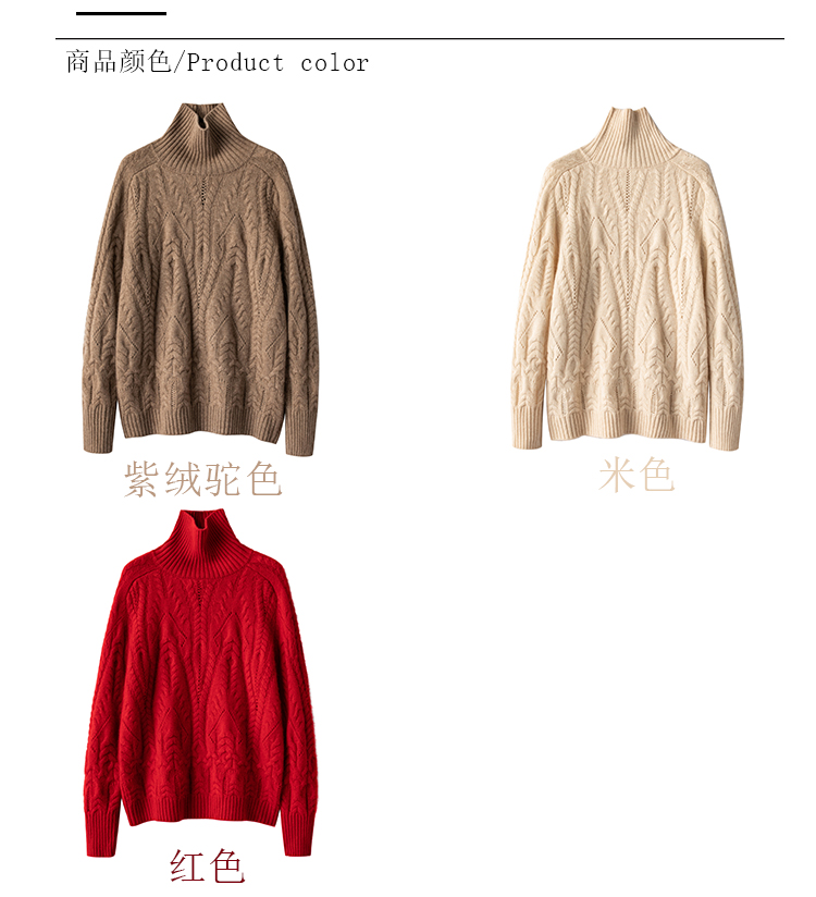 【LP原版棒针】100纯山羊绒高领堆领两穿立体绞花冬季R2135