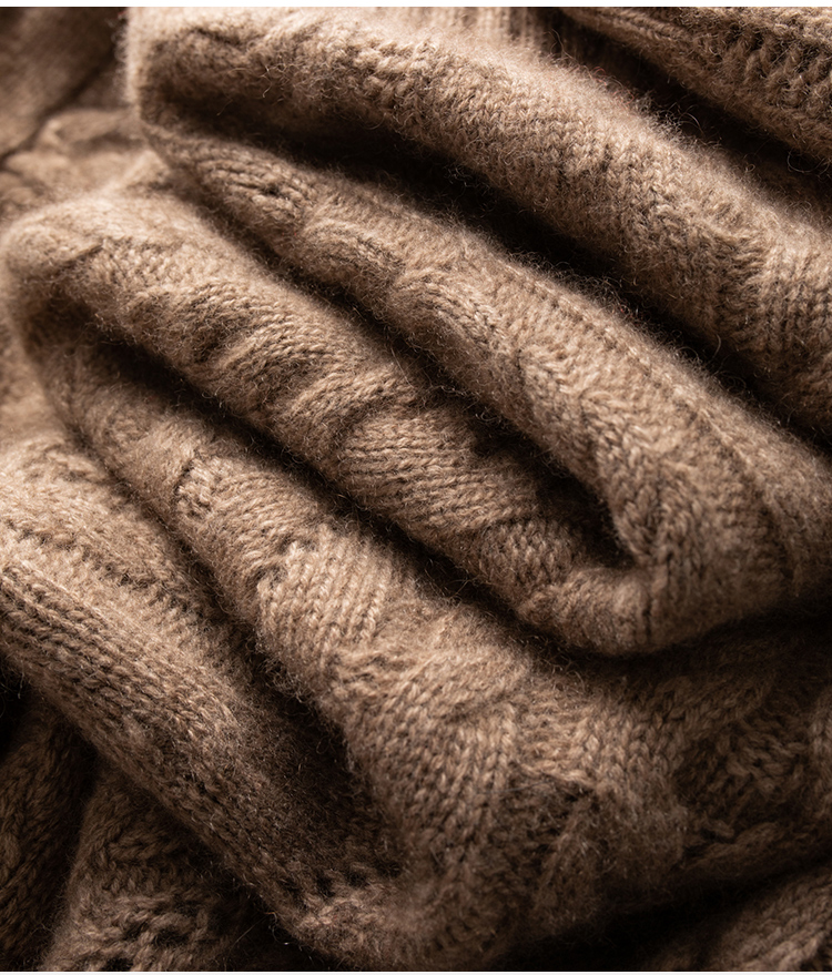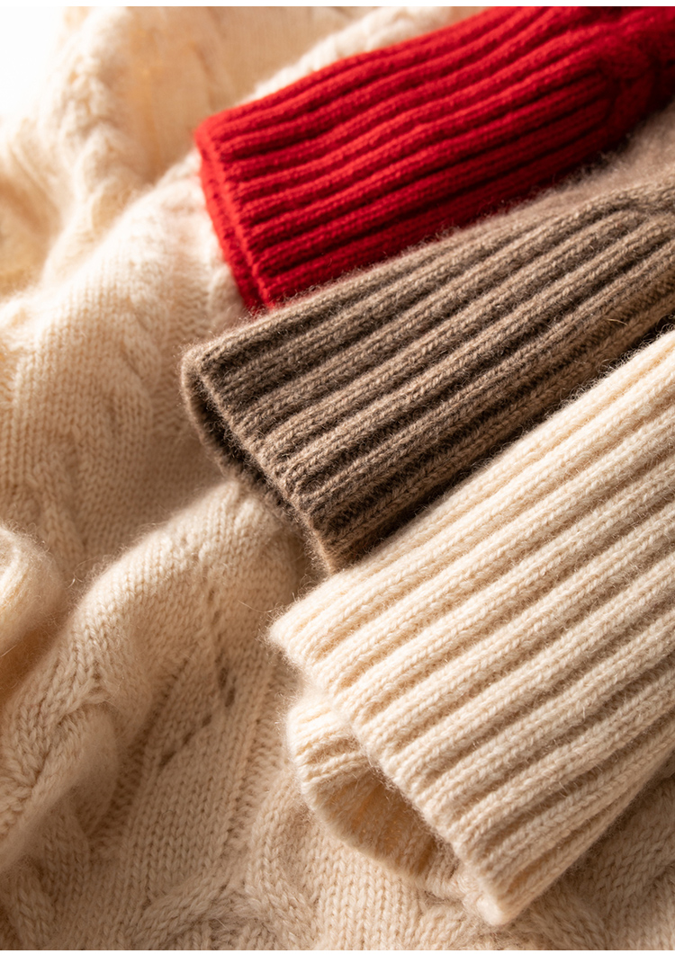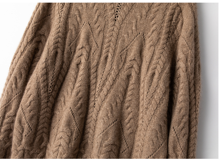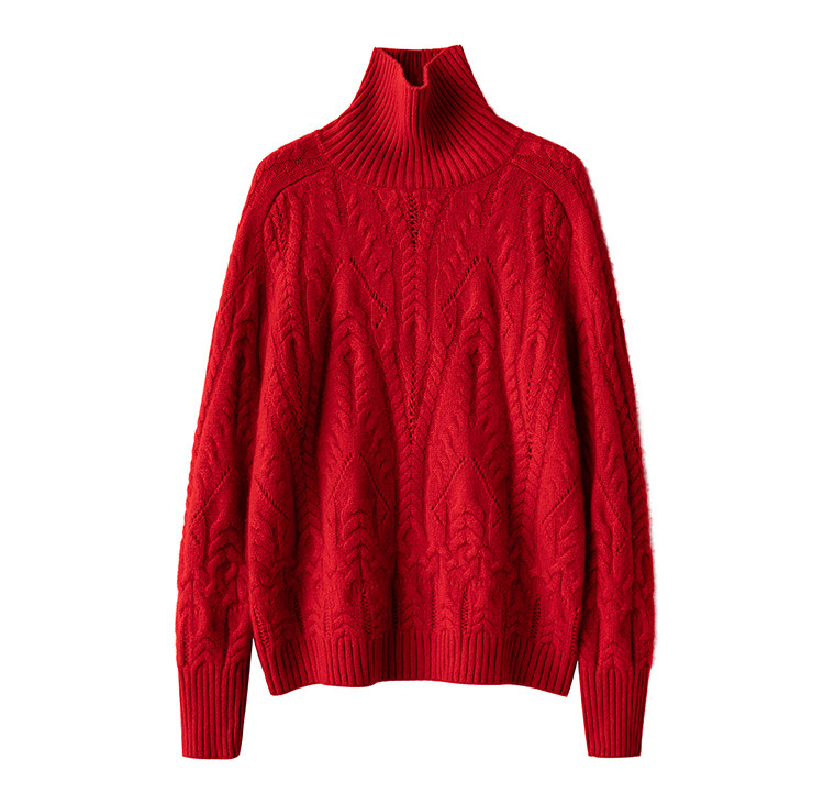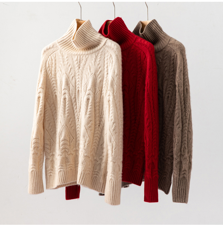 【LP原版棒针】100纯山羊绒高领堆领两穿立体绞花冬季R2135