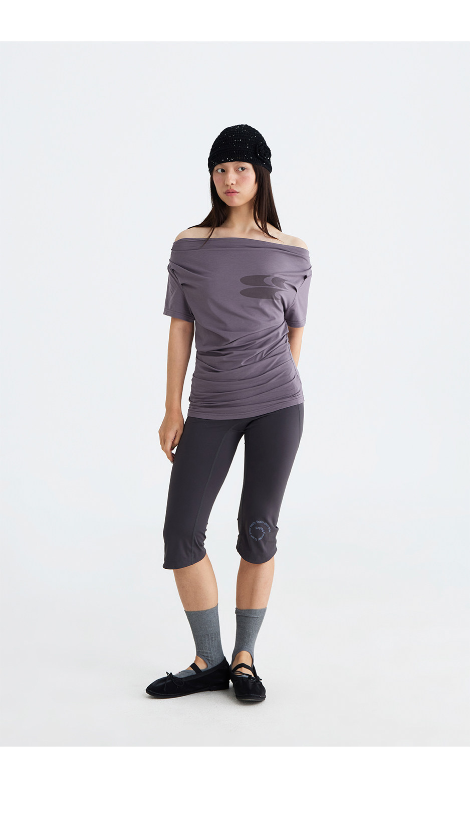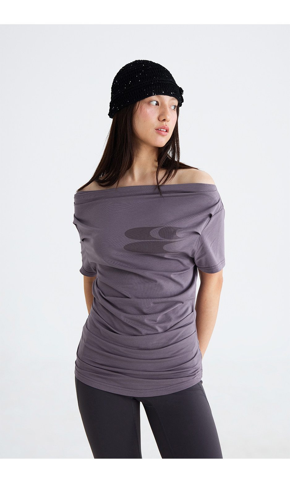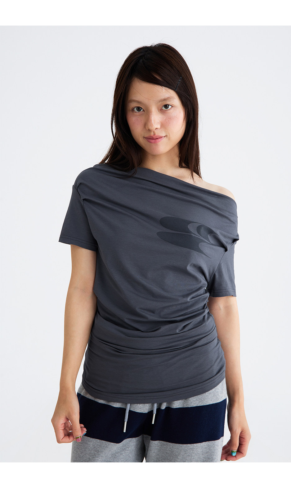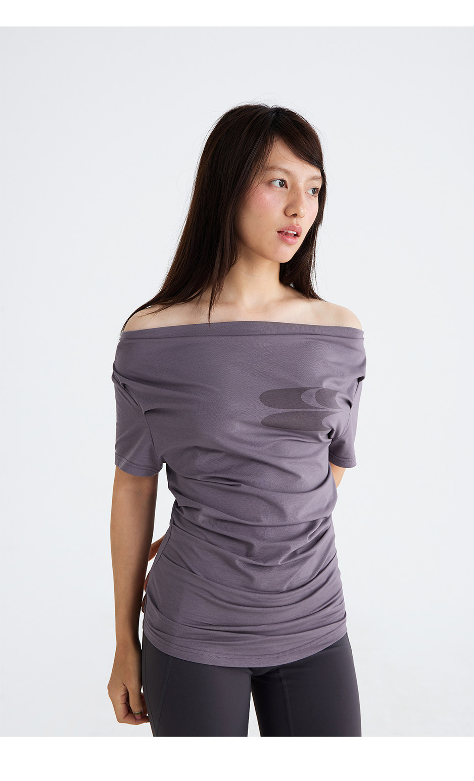 CryingCenter兰精莫代尔凉感斜肩一字肩领短袖露肩褶皱凉感上衣