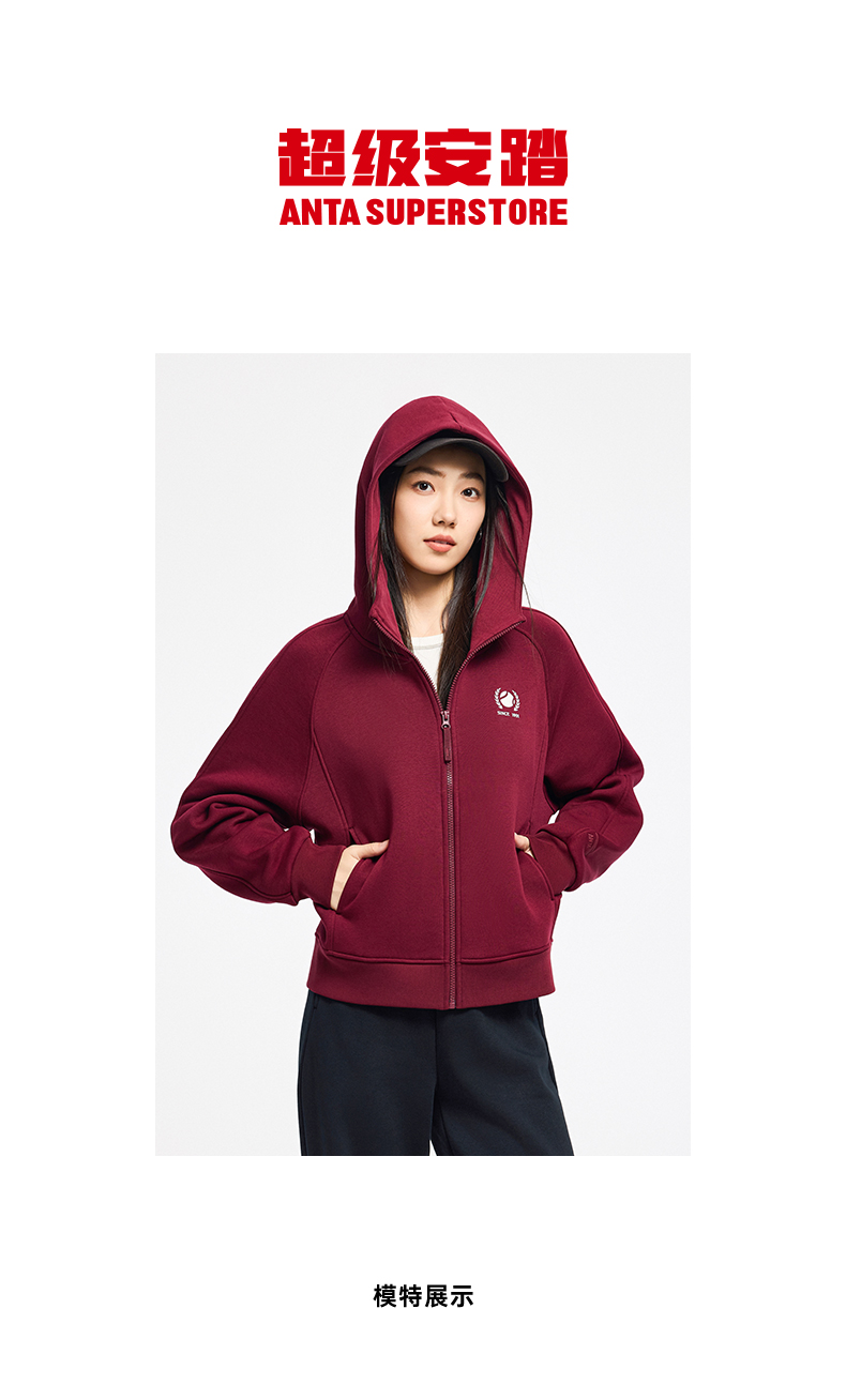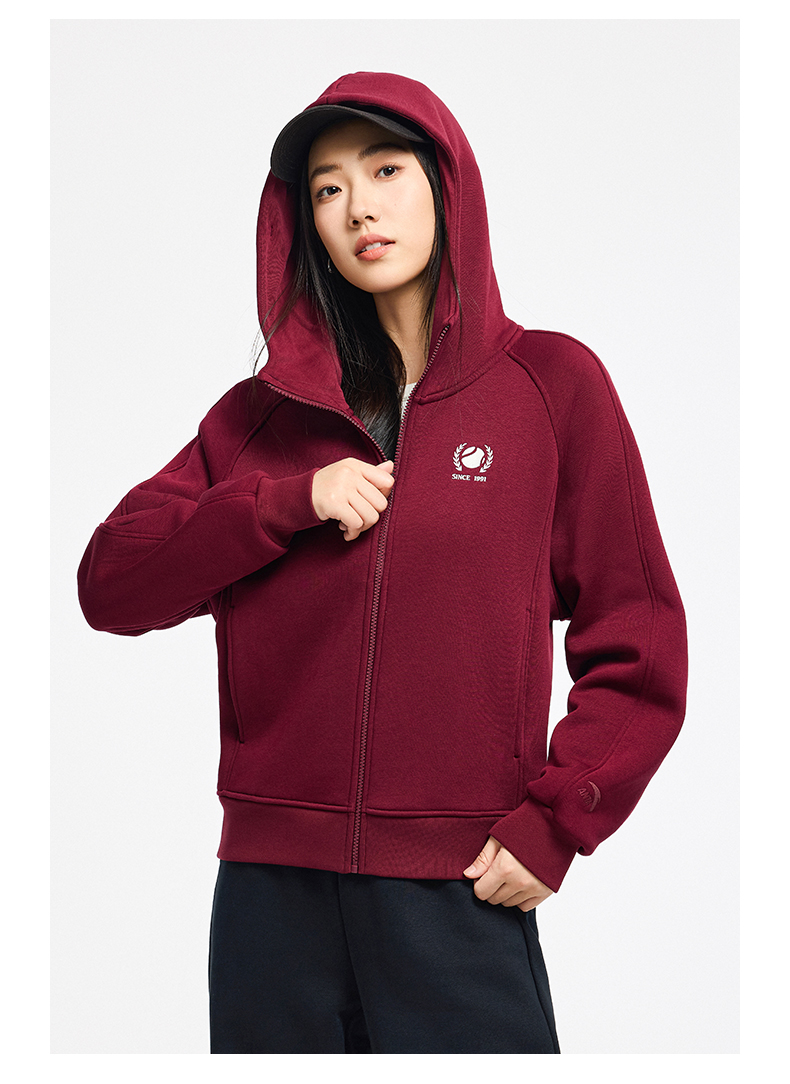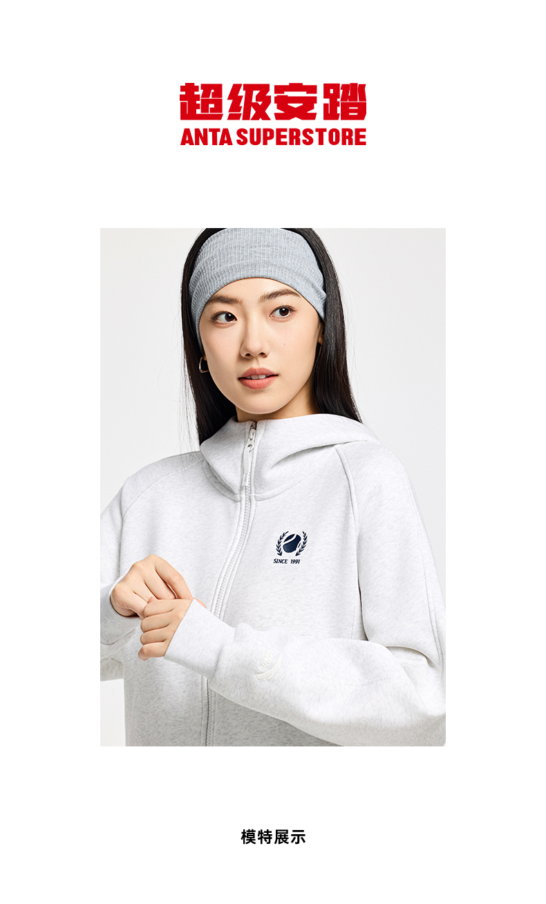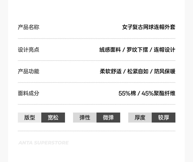 超级安踏加绒连帽外套女士秋冬保暖网球复古休闲百搭运动夹克162548723U