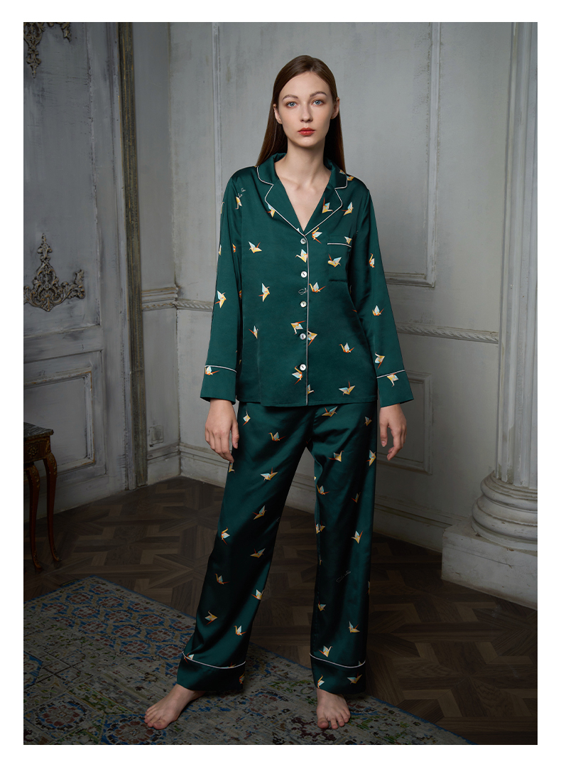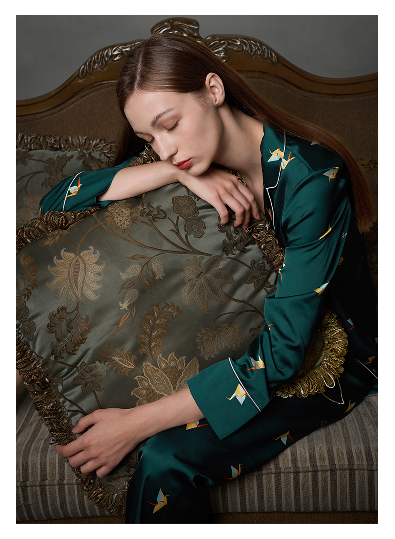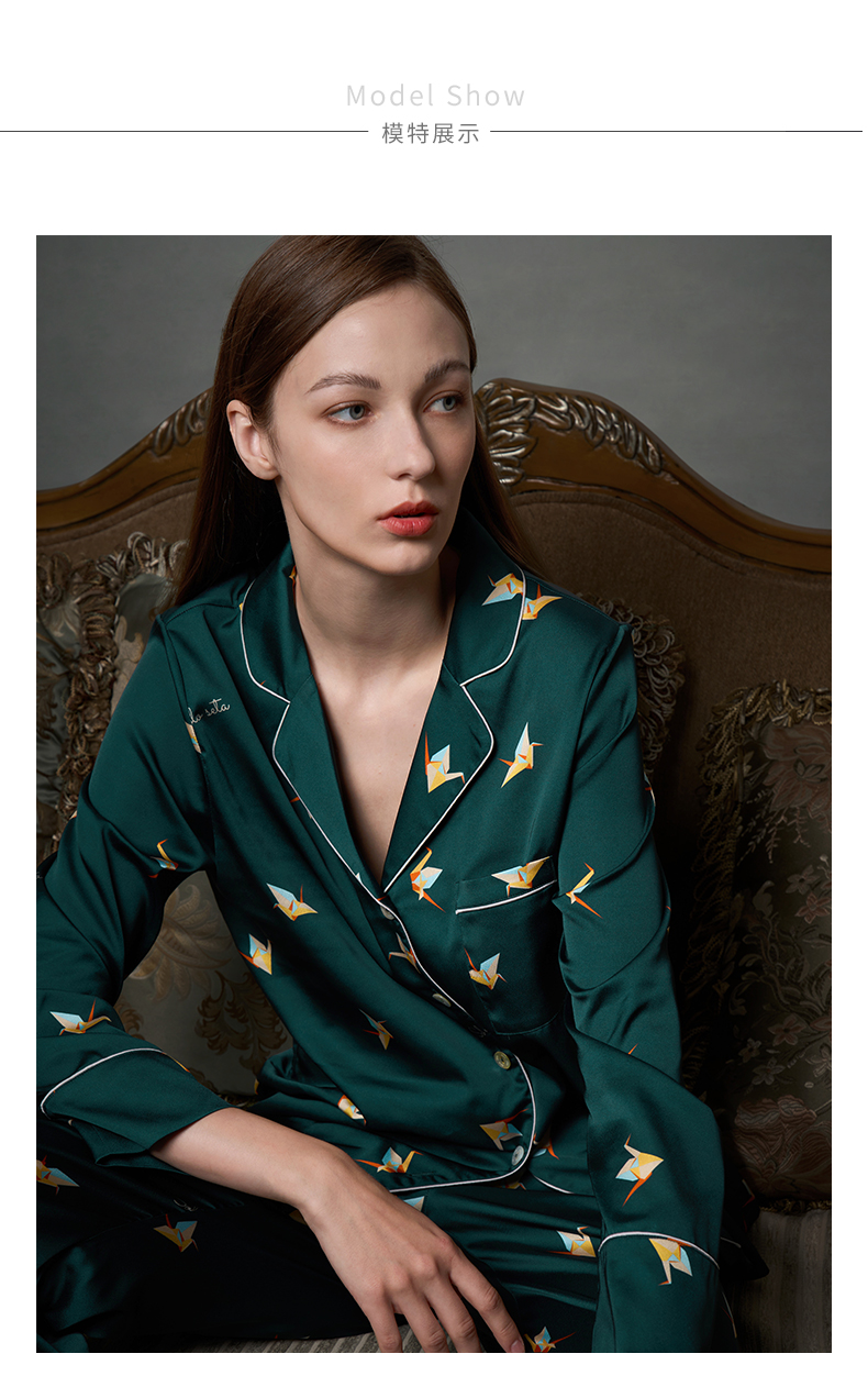 Solo seta真丝睡衣套装女长袖丝绸家居服两件套桑蚕丝高级感秋冬