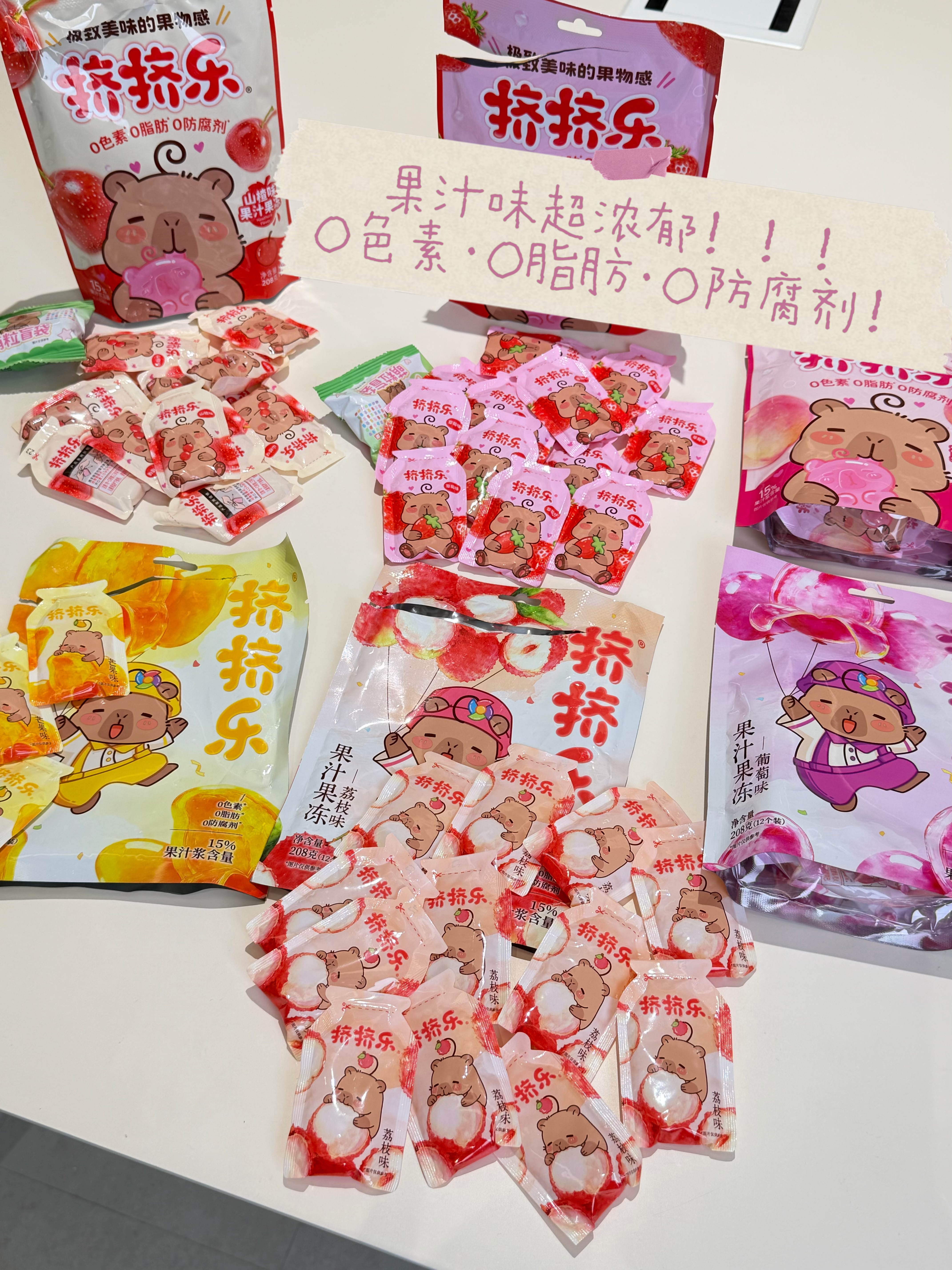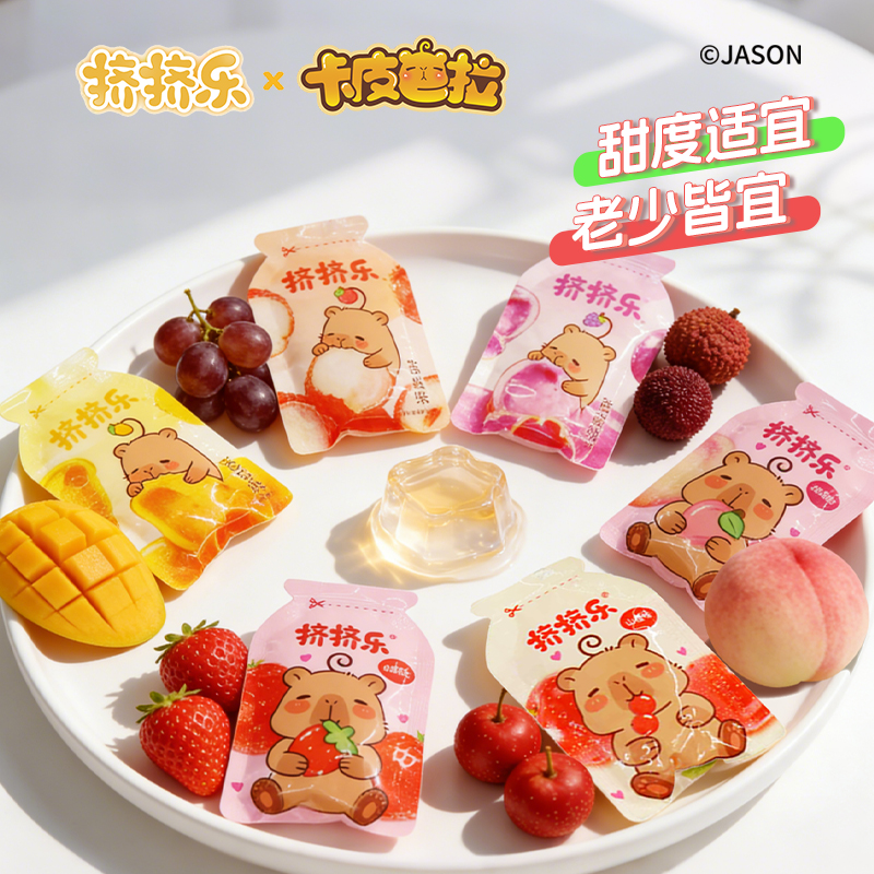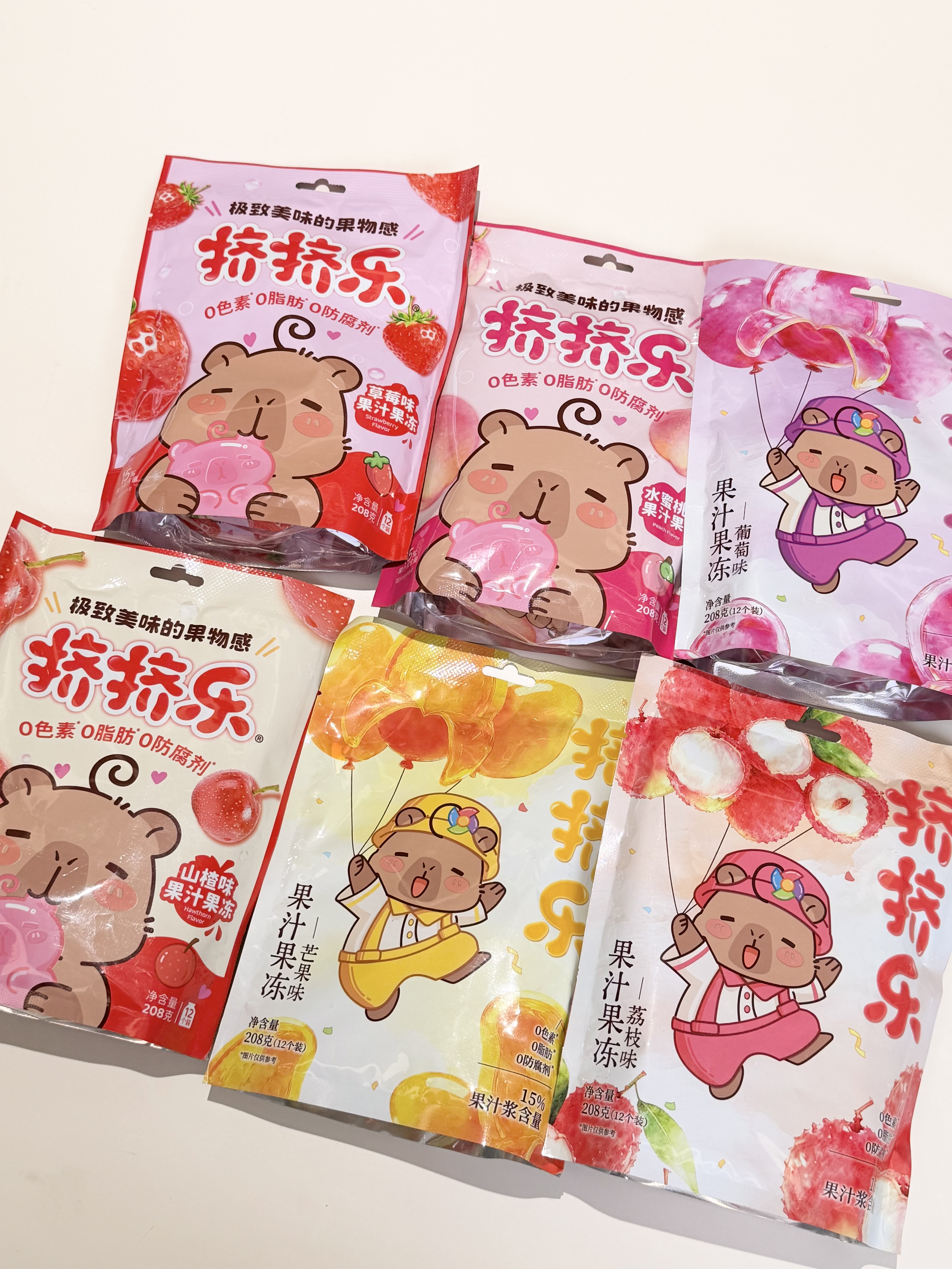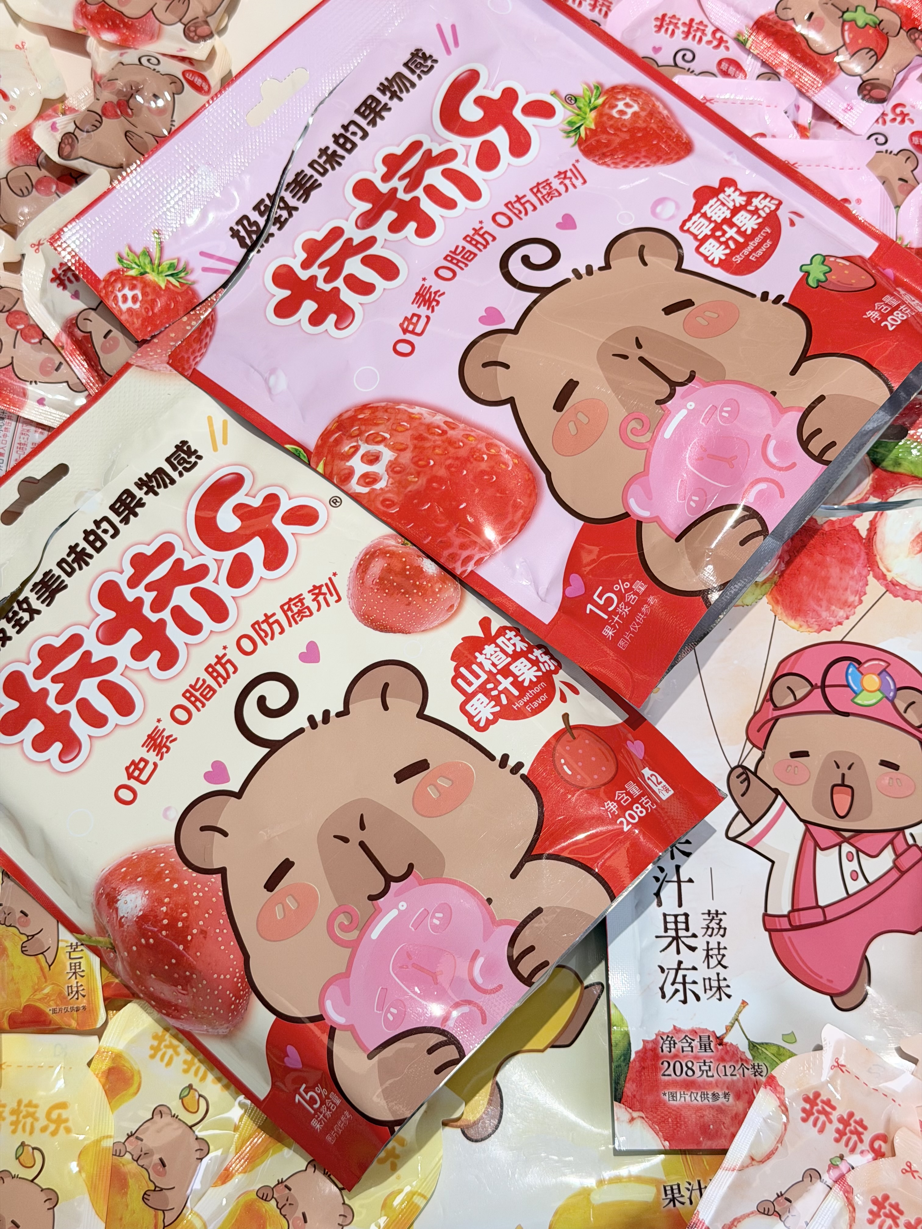 6种神仙果味一口沦陷💖【水果味蒟蒻果冻卡皮巴拉联名款】芒果/葡萄/荔枝/草莓/山楂/水蜜桃🍑每颗含≥15%真实果汁🥭果香直接在嘴里爆开,巨清爽!