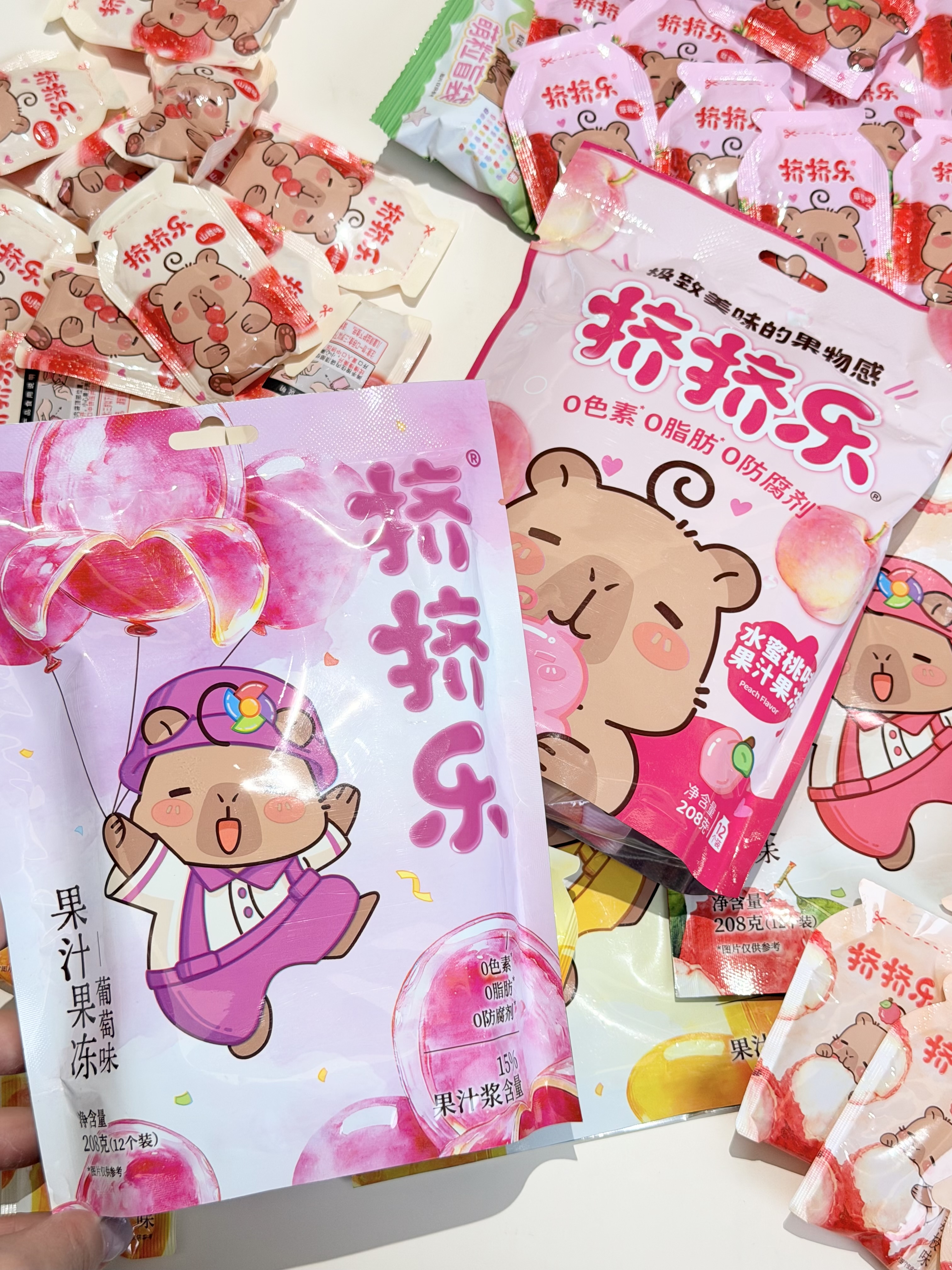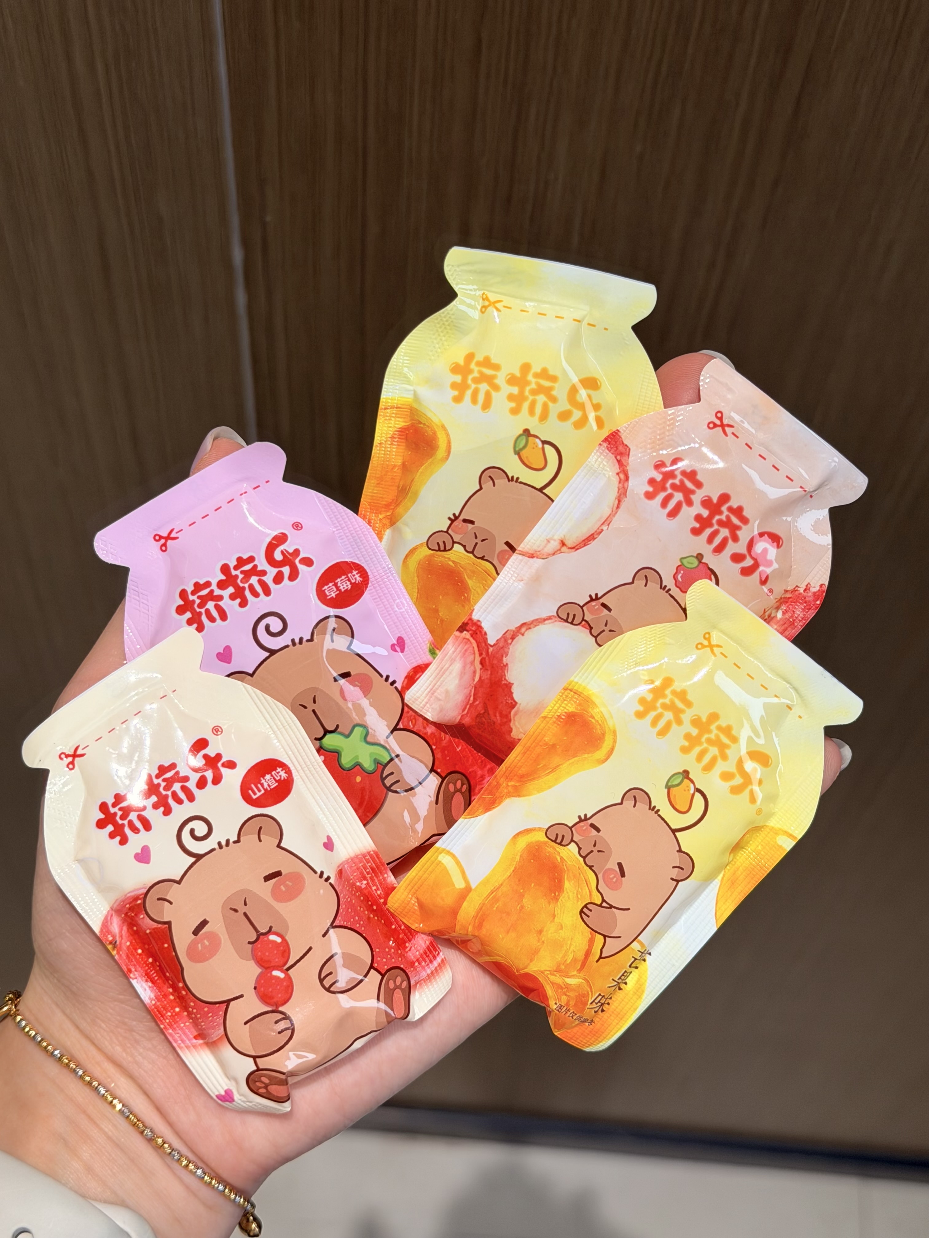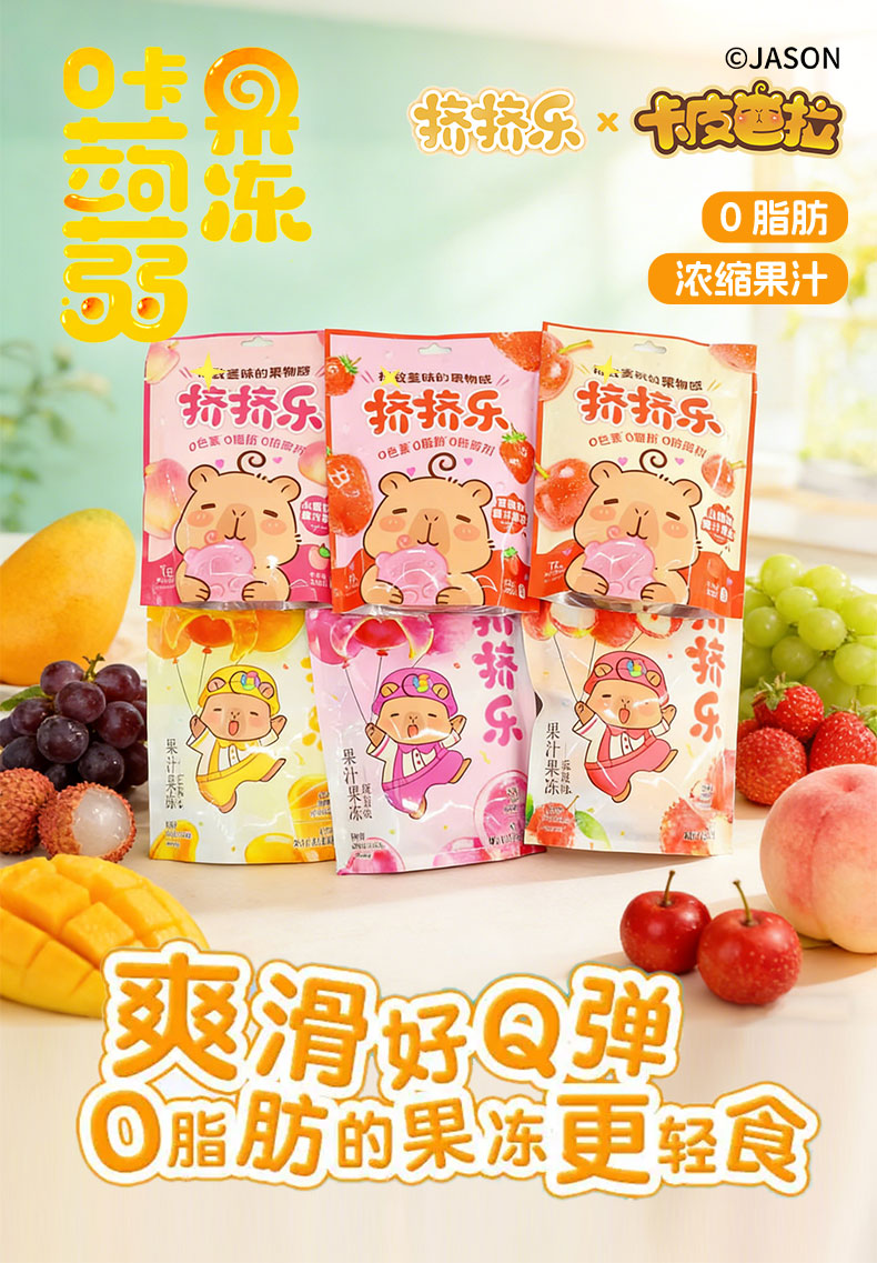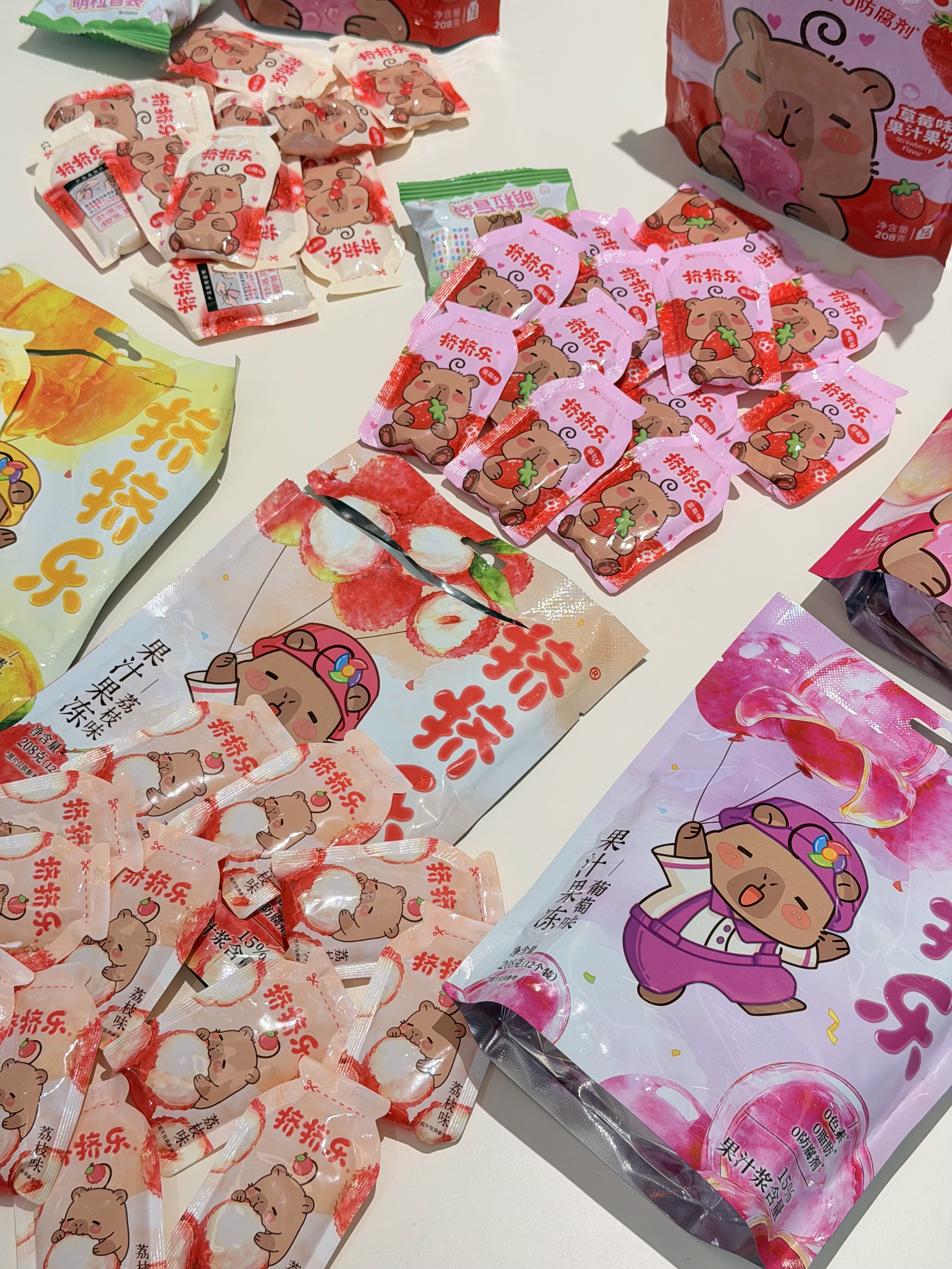 6种神仙果味一口沦陷💖【水果味蒟蒻果冻卡皮巴拉联名款】芒果/葡萄/荔枝/草莓/山楂/水蜜桃🍑每颗含≥15%真实果汁🥭果香直接在嘴里爆开,巨清爽!
