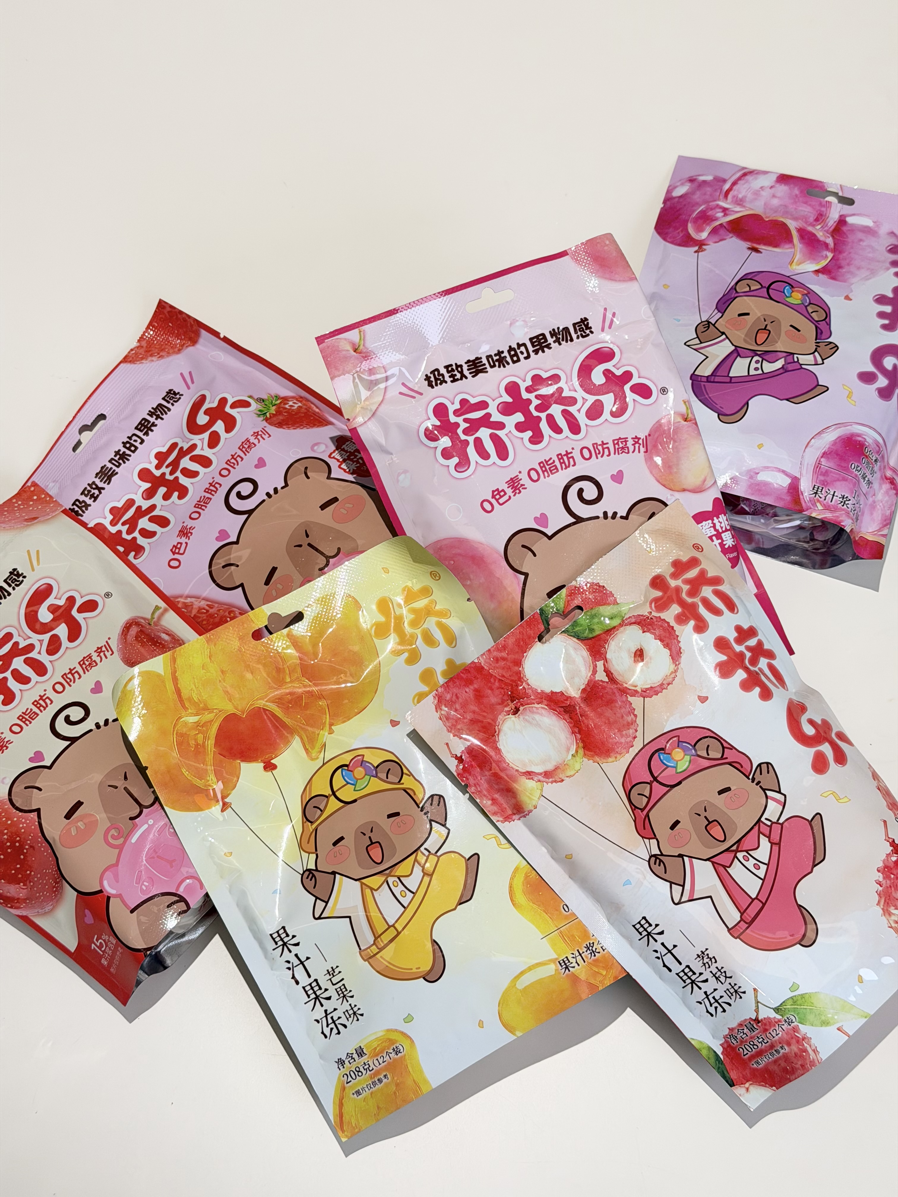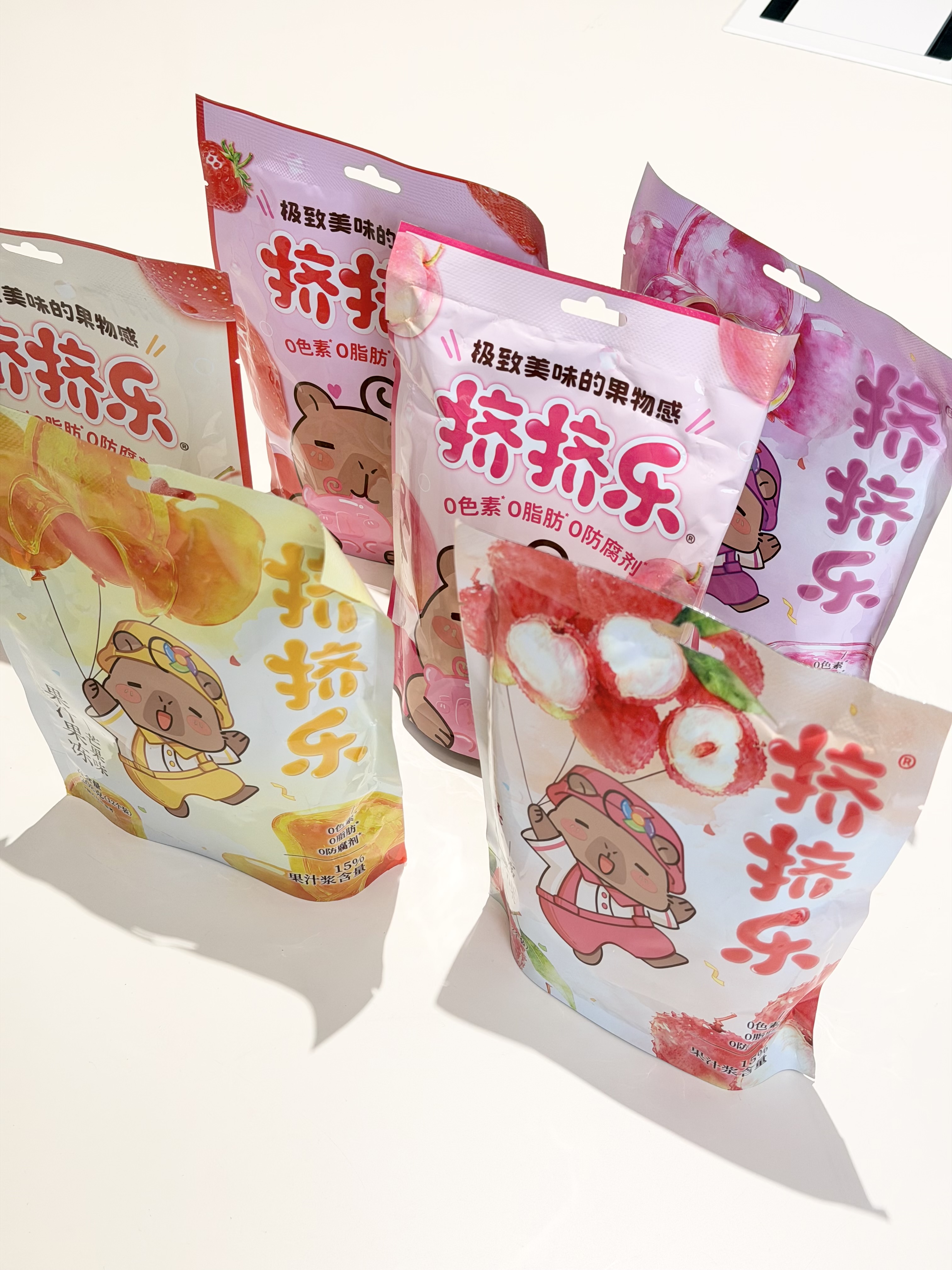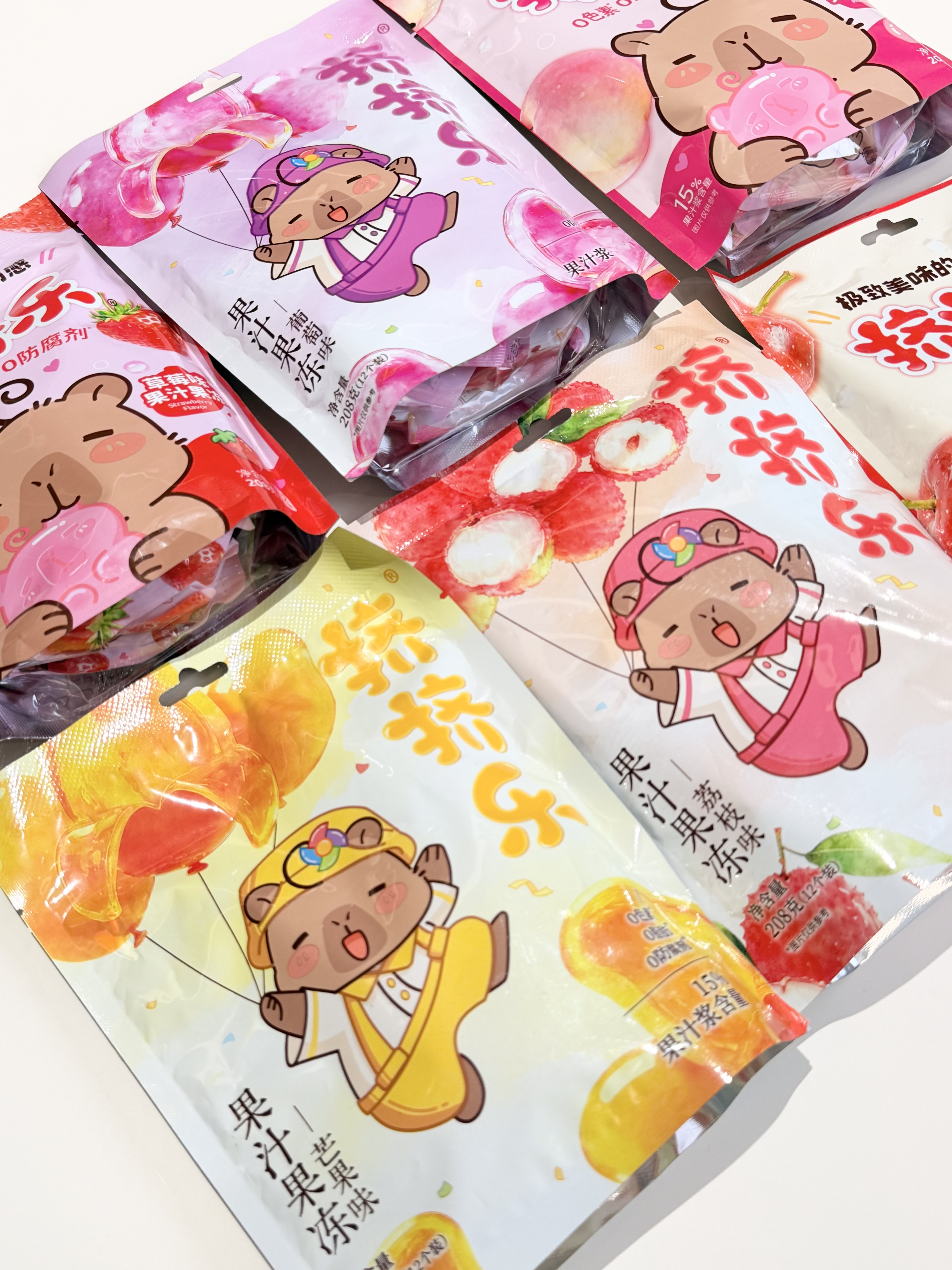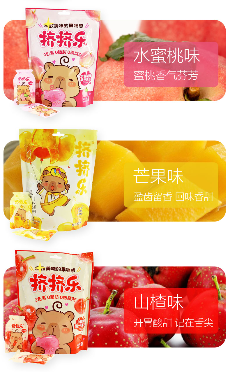 6种神仙果味一口沦陷💖【水果味蒟蒻果冻卡皮巴拉联名款】芒果/葡萄/荔枝/草莓/山楂/水蜜桃🍑每颗含≥15%真实果汁🥭果香直接在嘴里爆开,巨清爽!