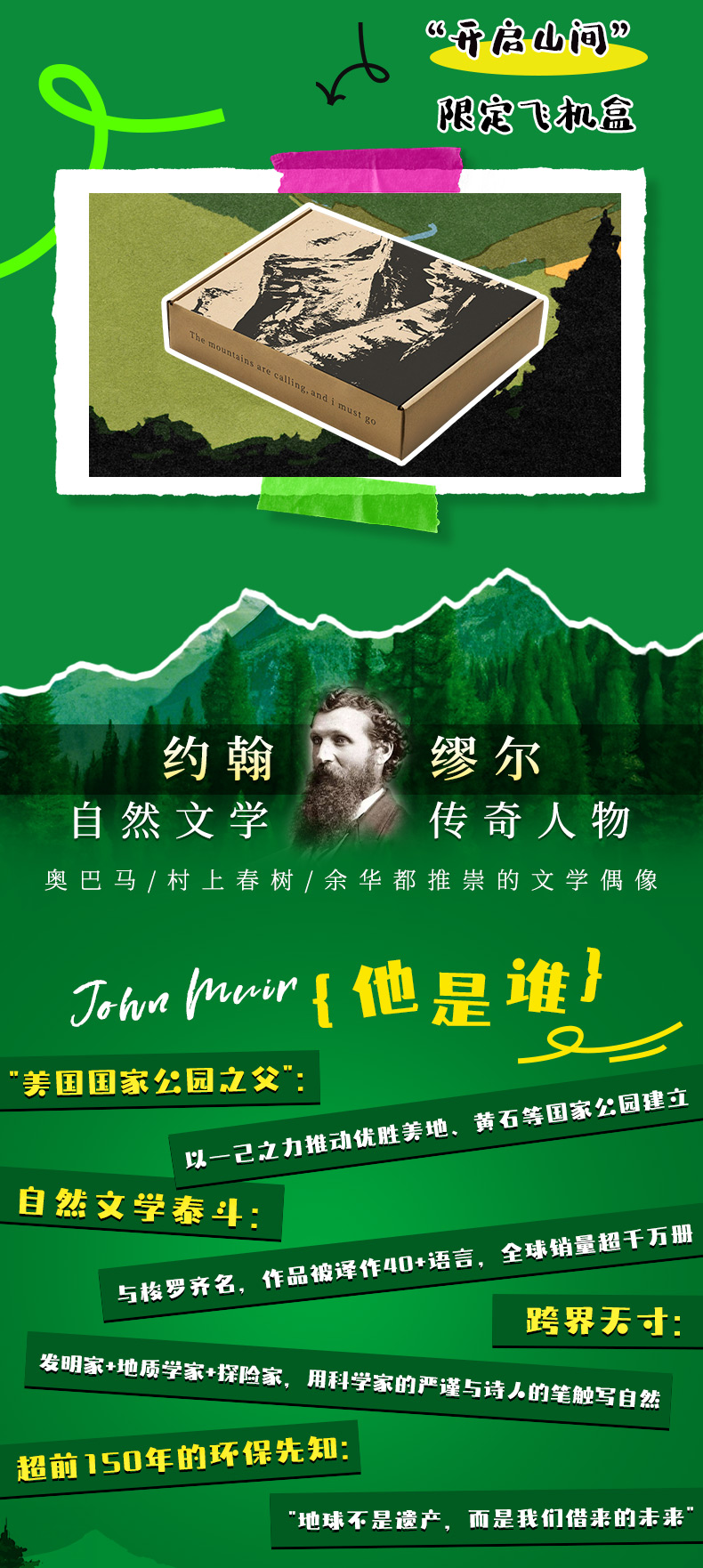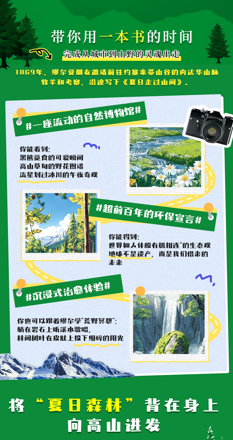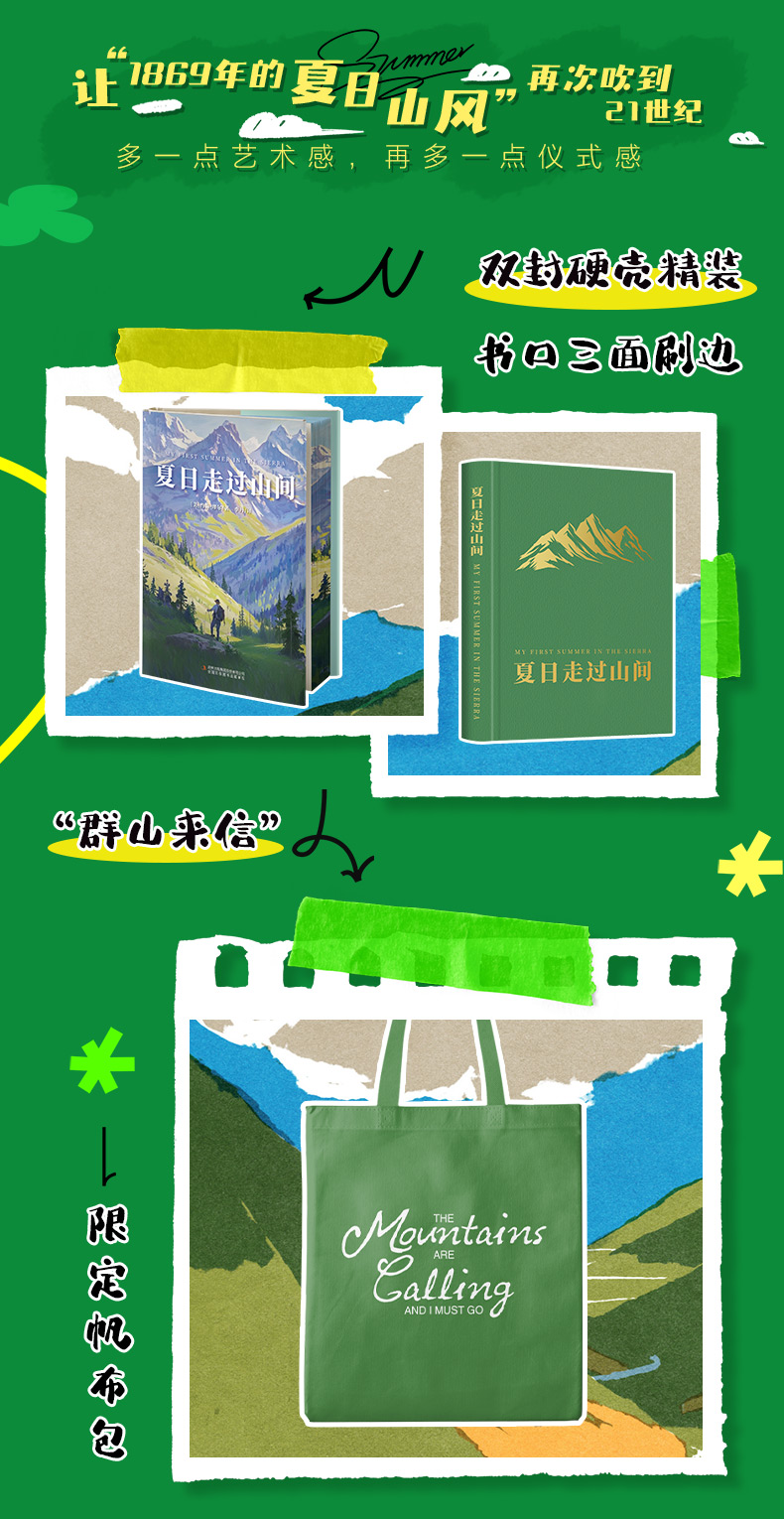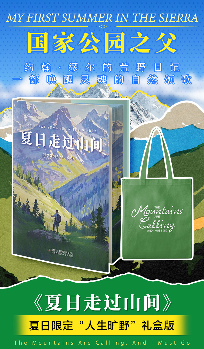 【帆布袋+飞机盒+刷边版】夏日走过山间 双封硬壳精装 约翰·缪尔著 带你用一本书的时间 完成从城市到山野的灵魂出走