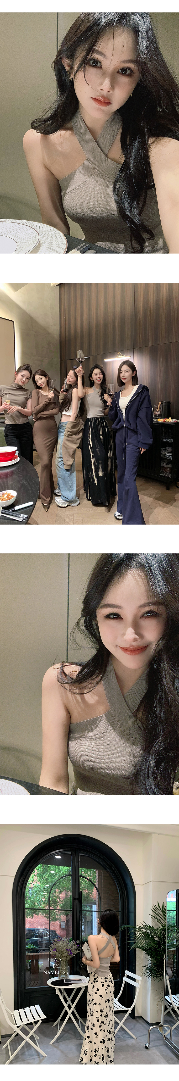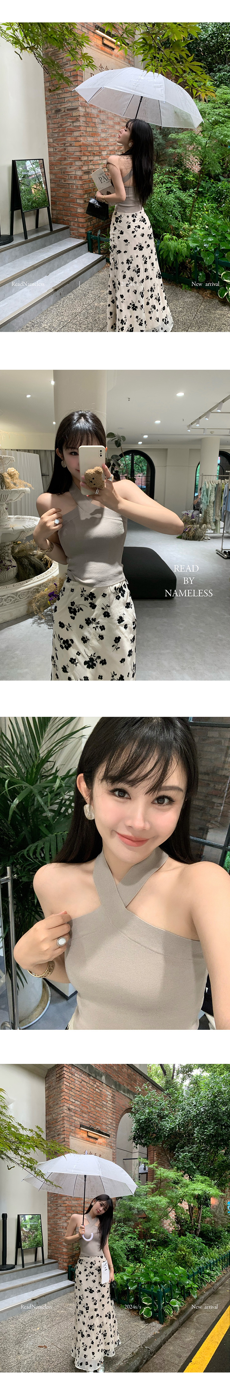 Read Nameless /灰色交叉挂脖吊带+黑色植绒花朵裙