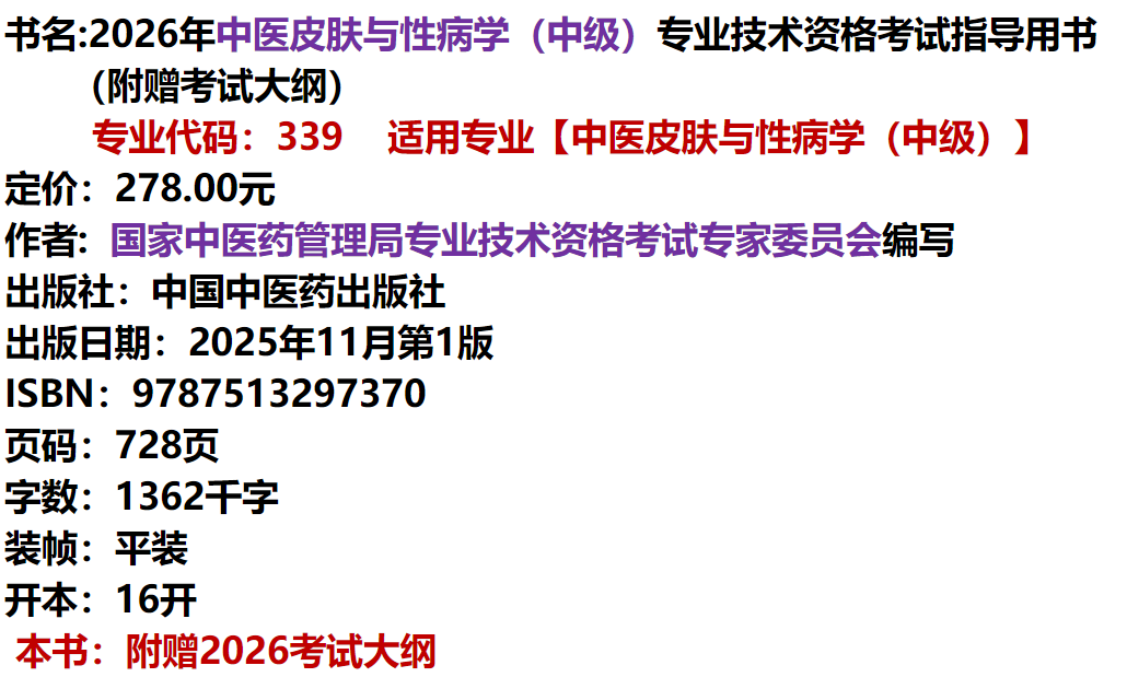 2026年中医皮肤与性病学(中级)专业技术资格考试指导用书 专业代码339国家中医药管理局专业技术资格考试专家委员会中医药出版社