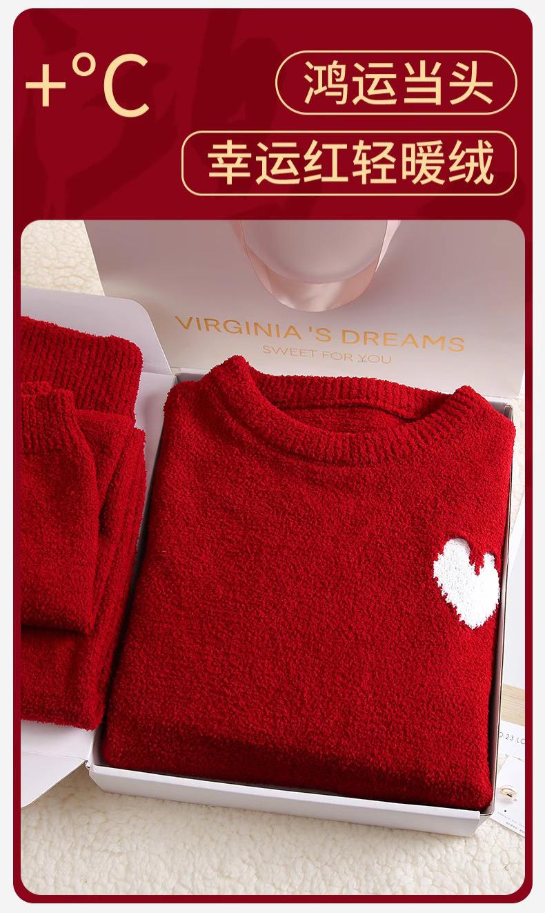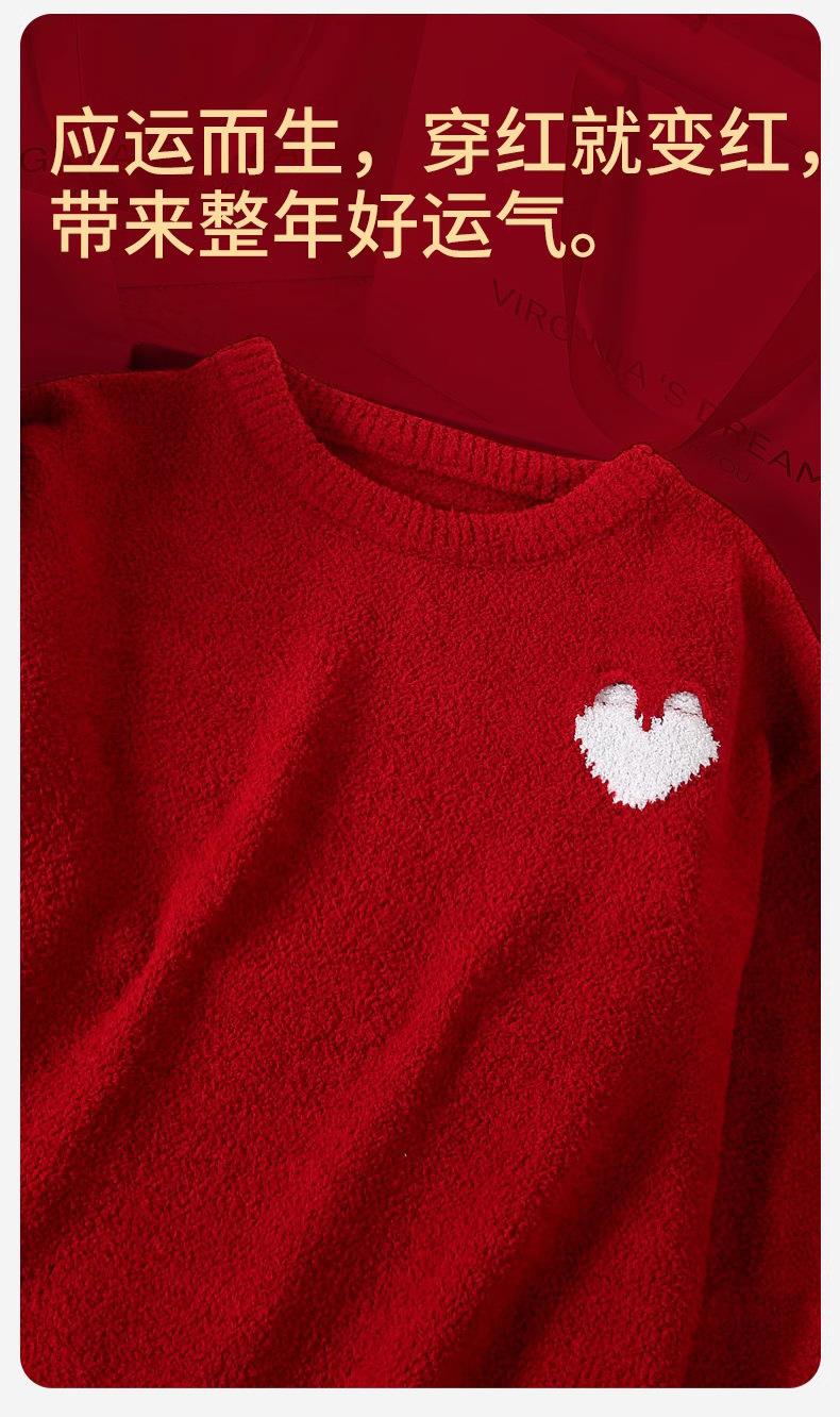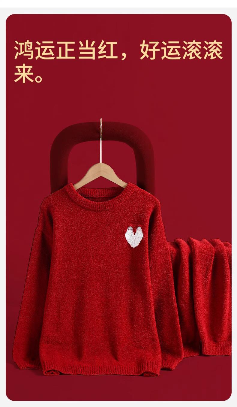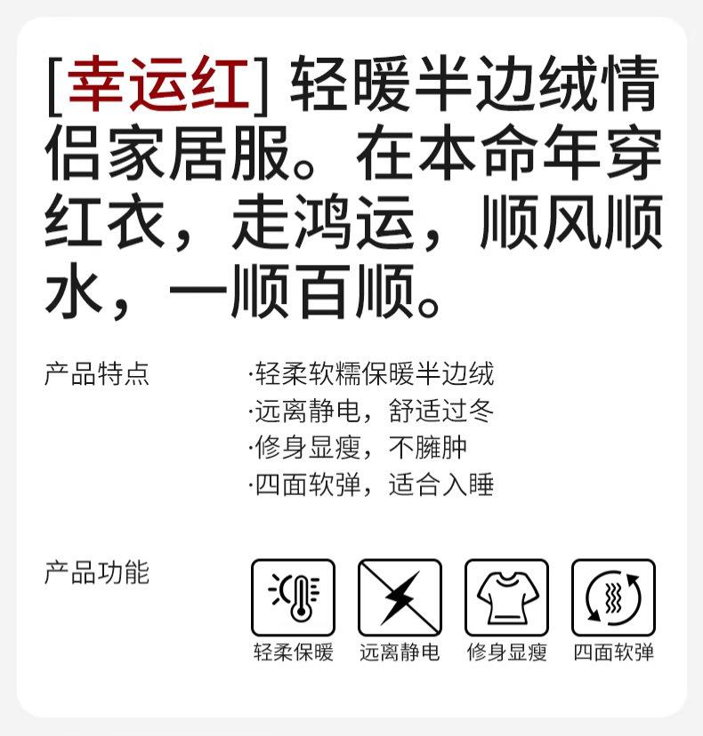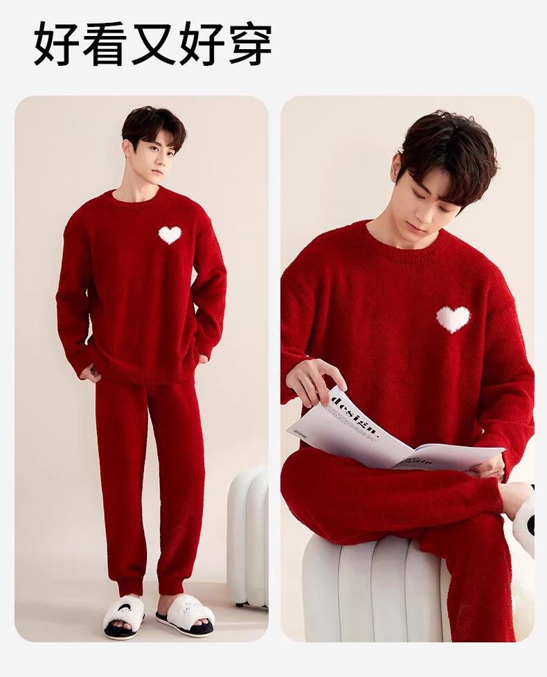 2【026全新马年情侣红色睡衣】男本命年新款男士半边绒冬季加绒加厚家居服男套装送男友