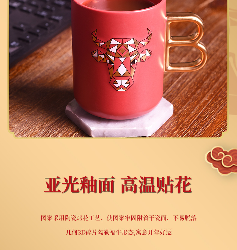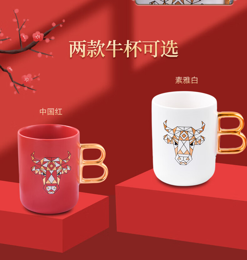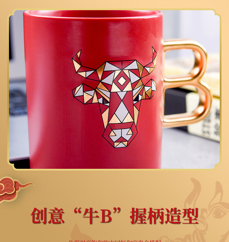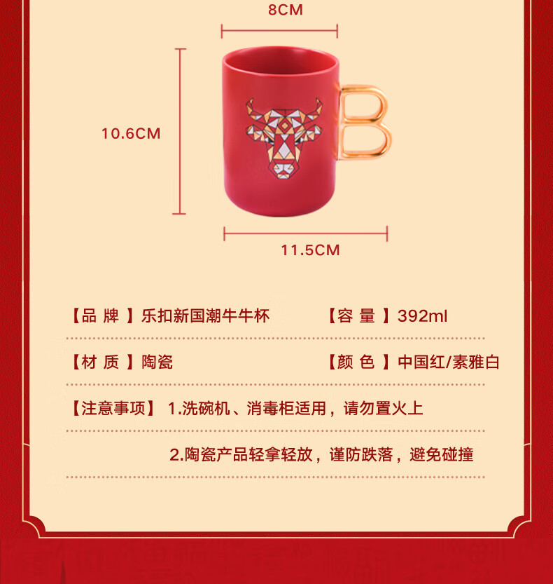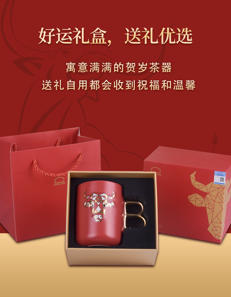 LOCK&LOCK乐扣乐扣新国潮 牛牛杯 马克陶瓷水杯 390ML红色/白色