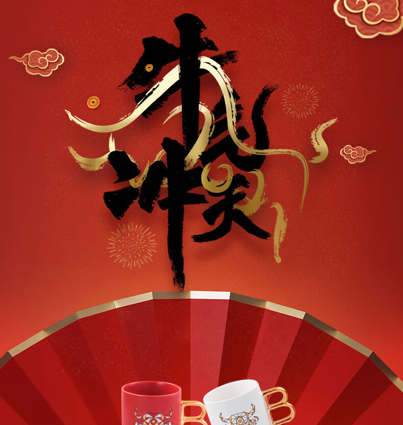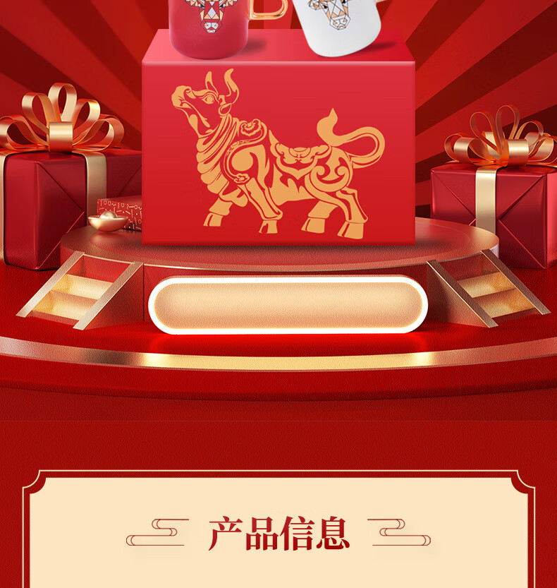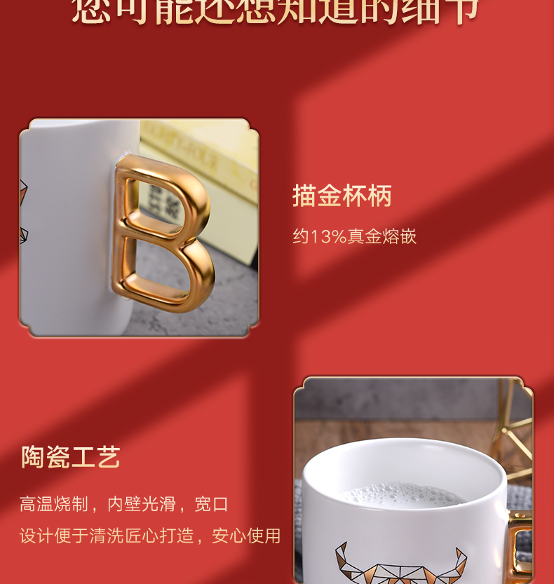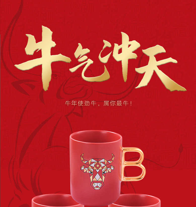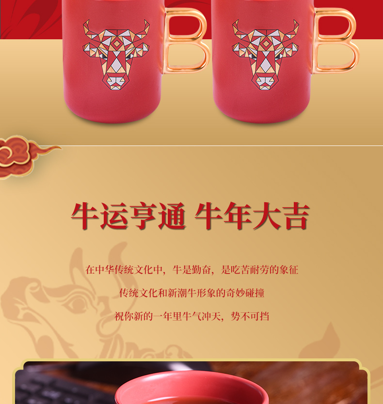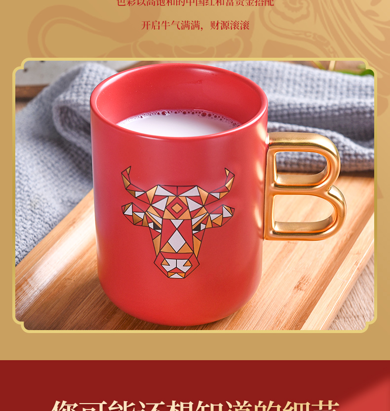 LOCK&LOCK乐扣乐扣新国潮 牛牛杯 马克陶瓷水杯 390ML红色/白色