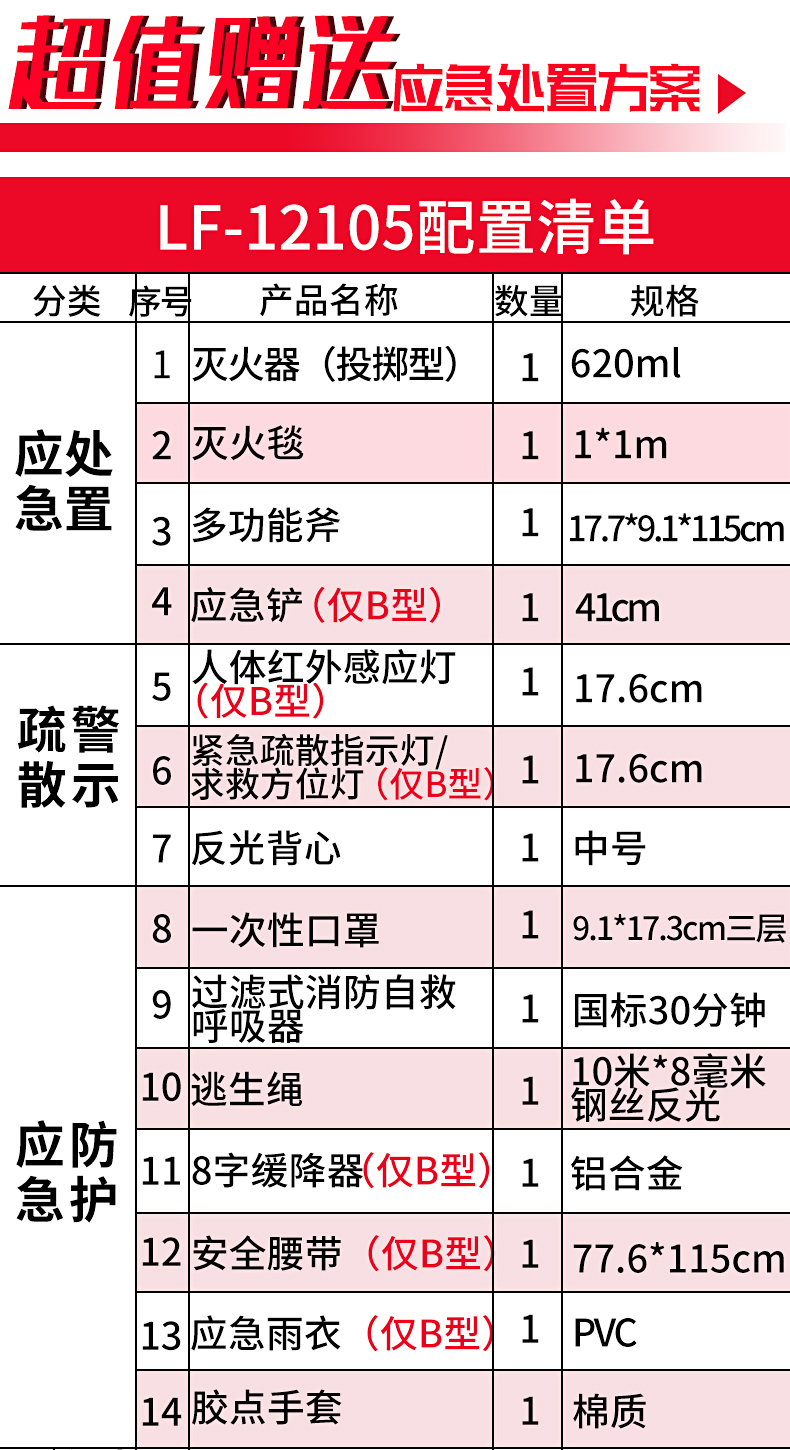 蓝夫应急 家庭应急包LF-12105B