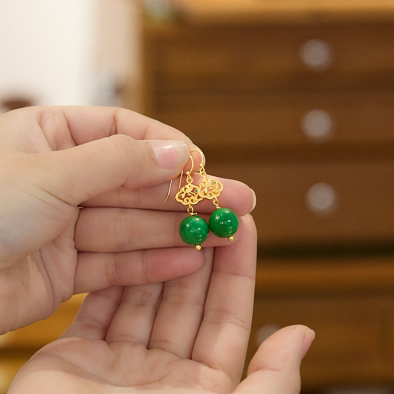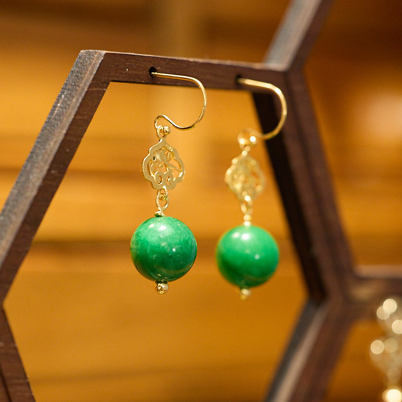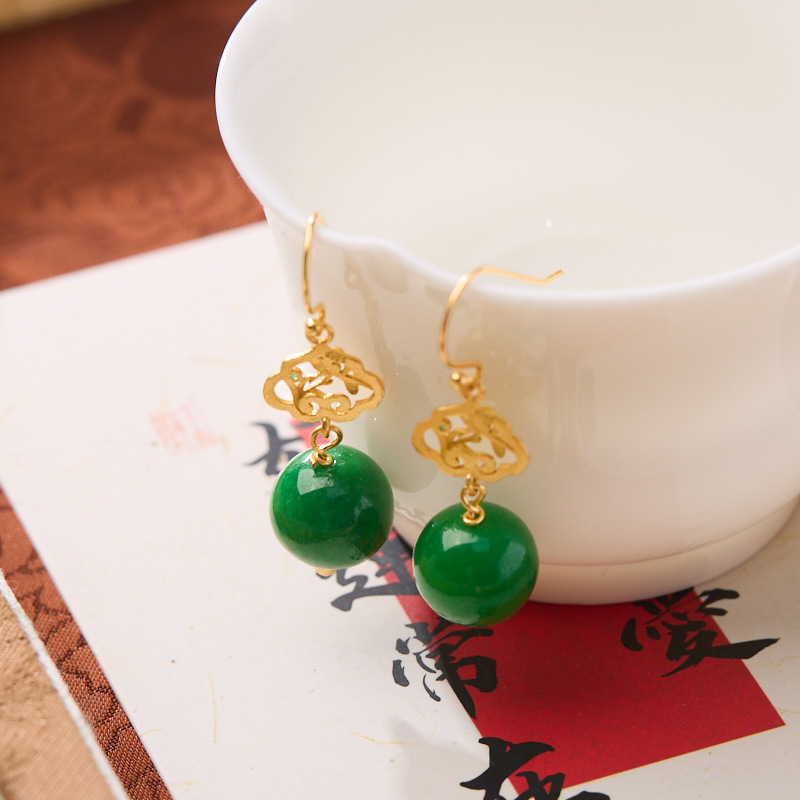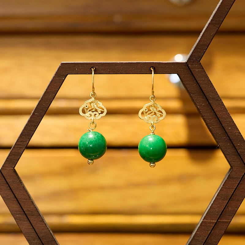 【品名】敦煌碧华·翡翠干青耳坠