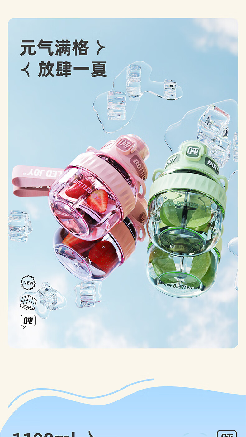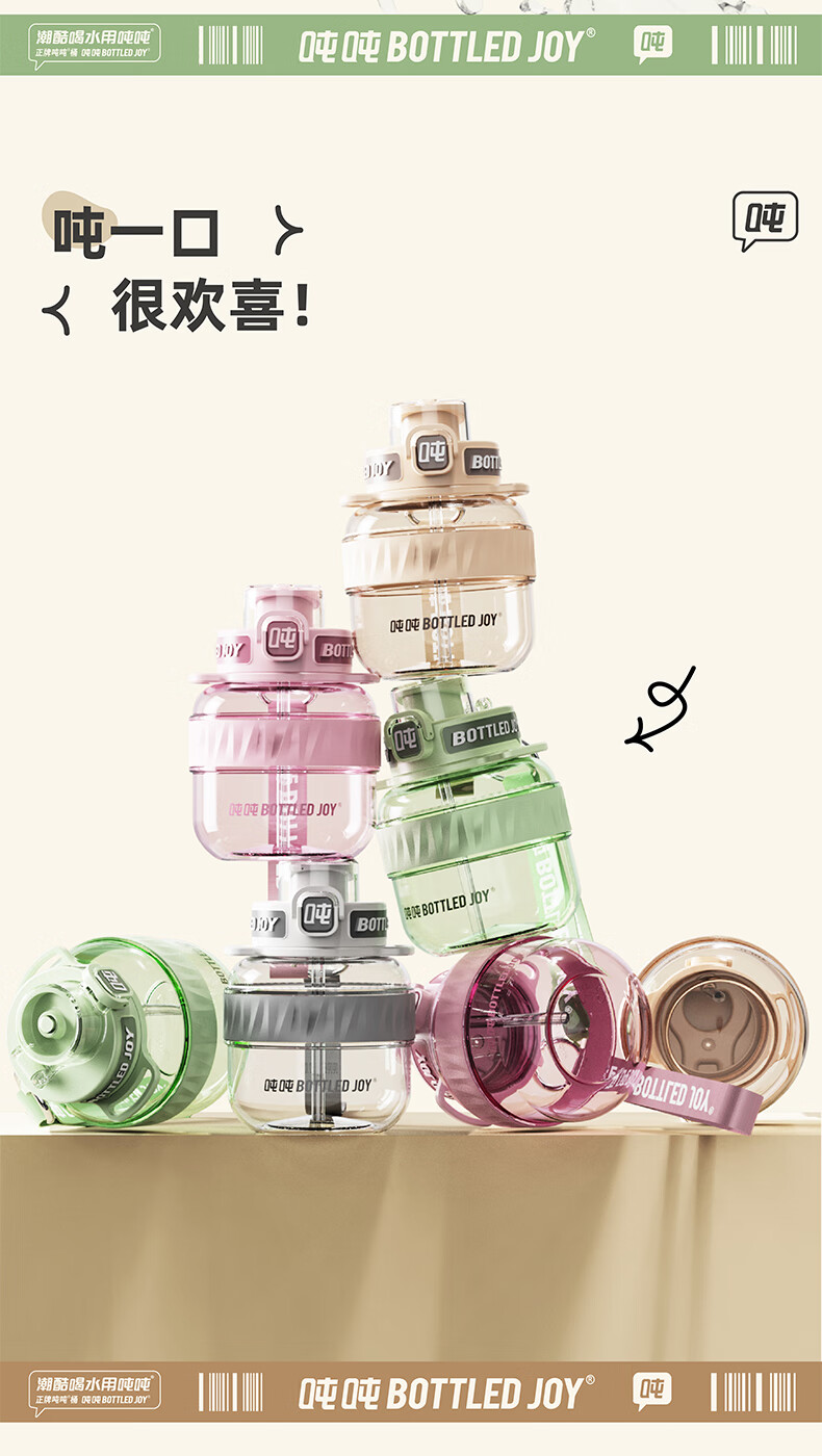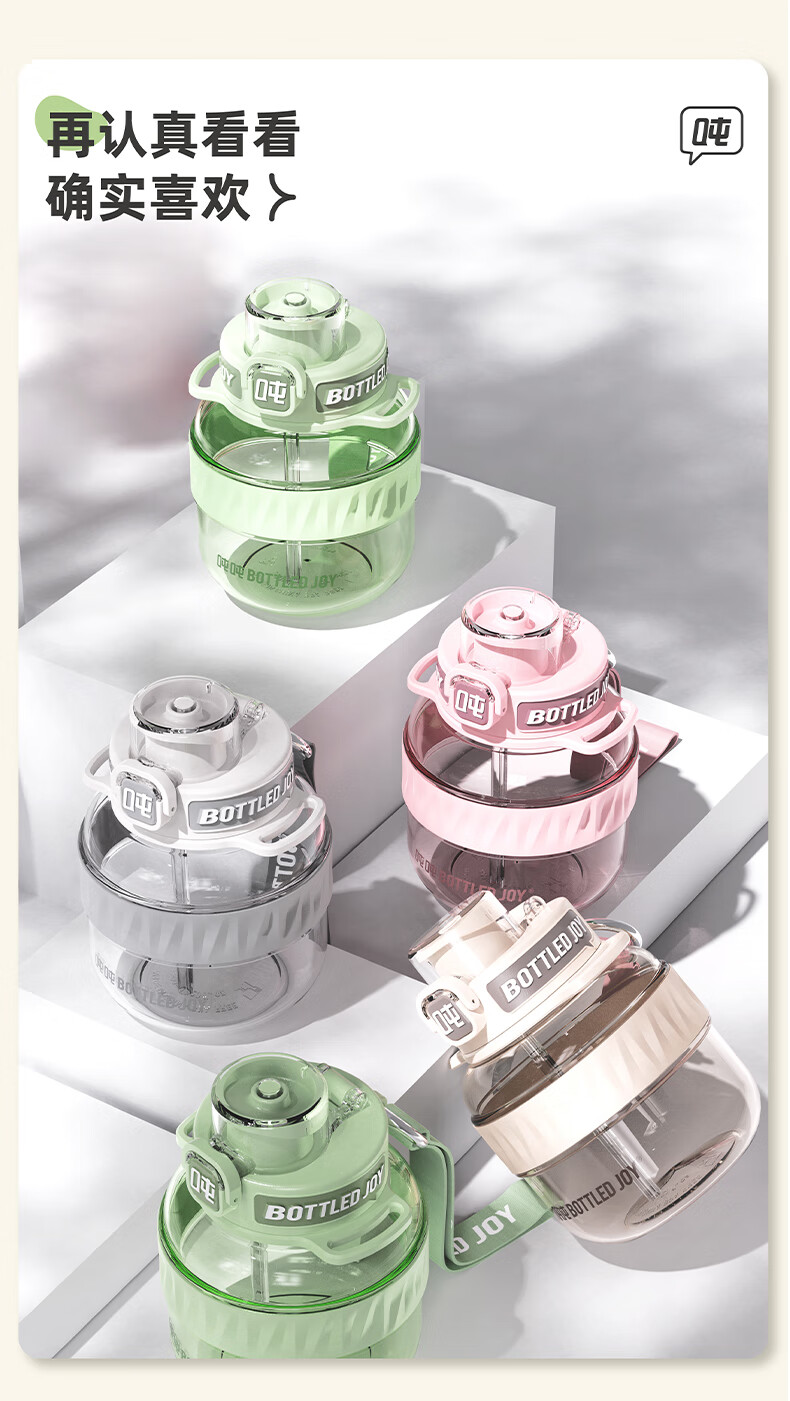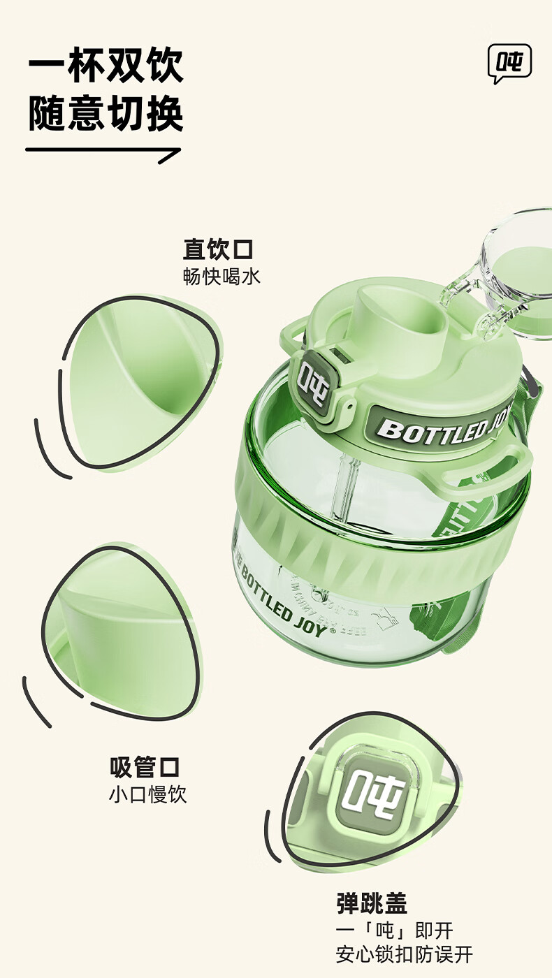 吨吨 钢环款吸喝弹跳盖水杯D9 1100ml