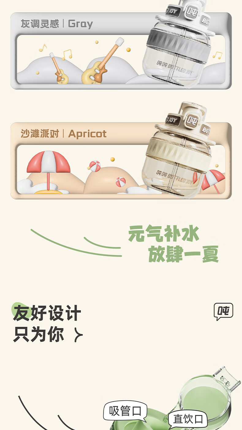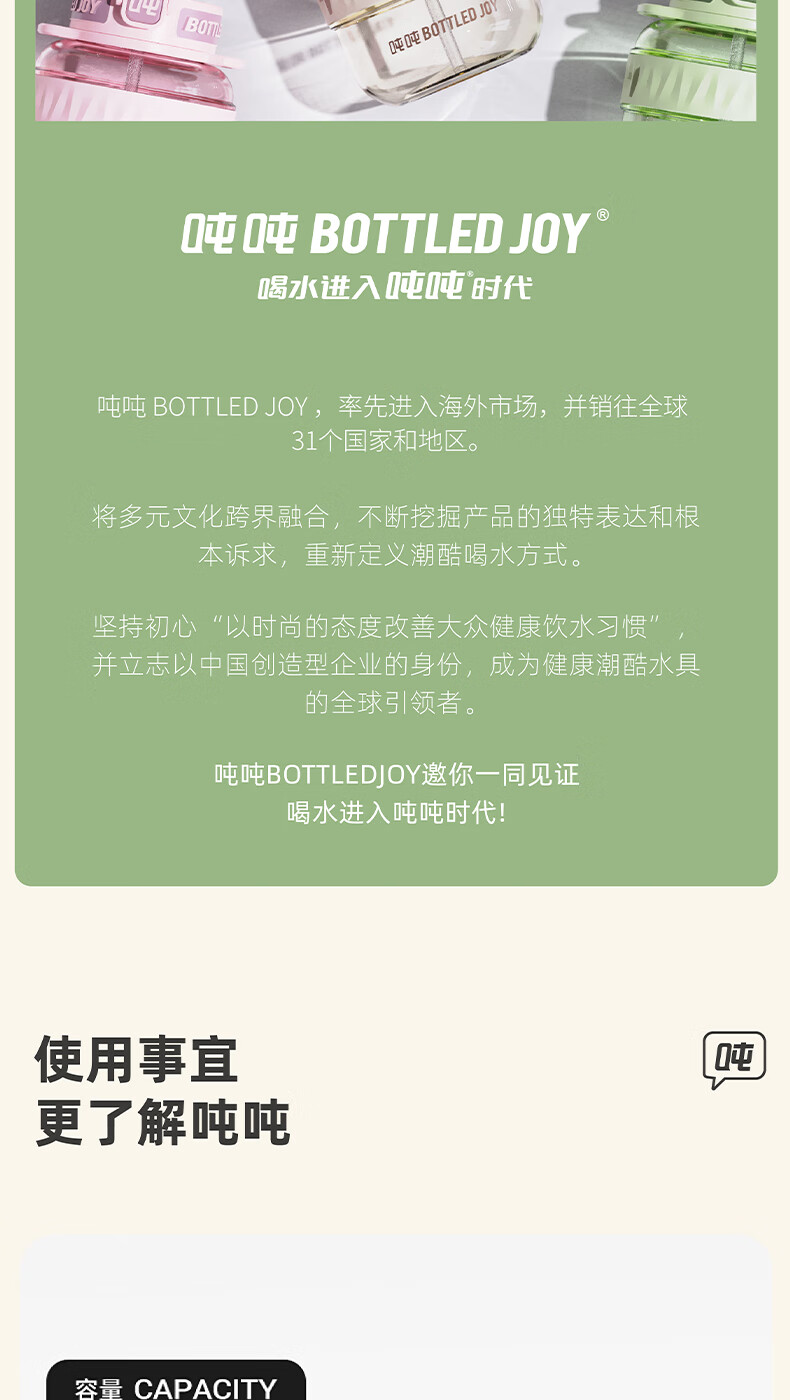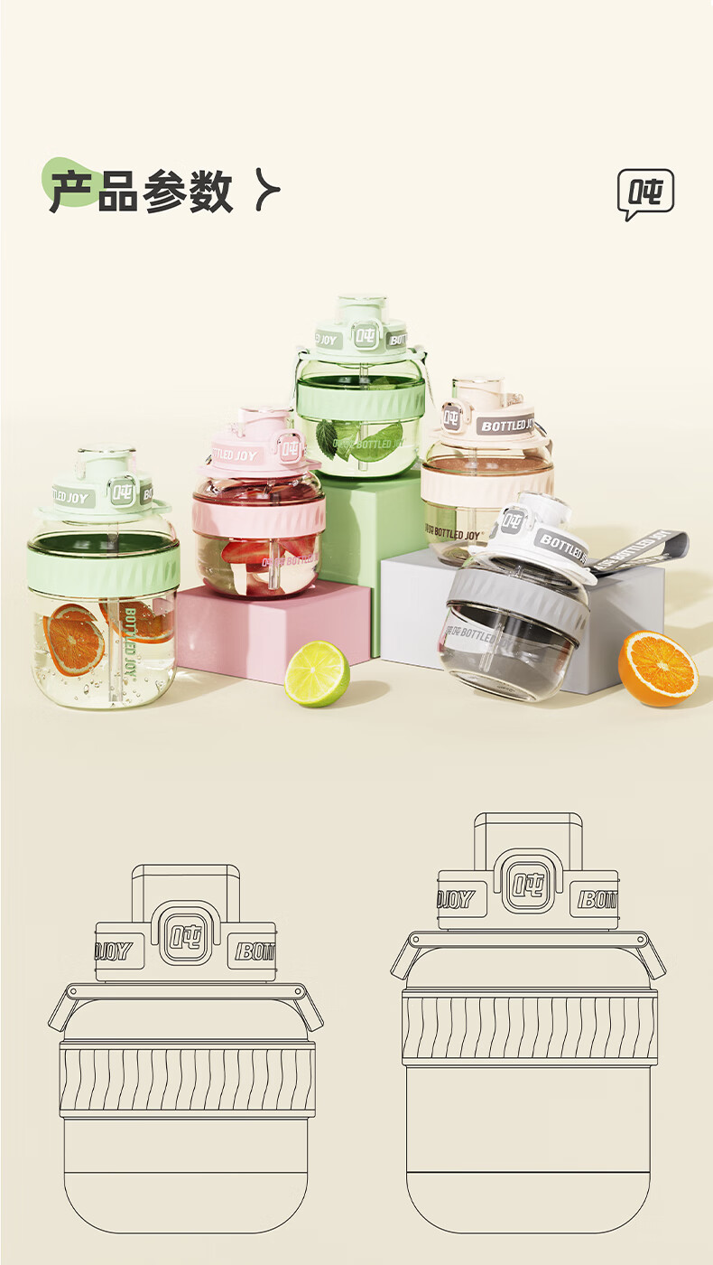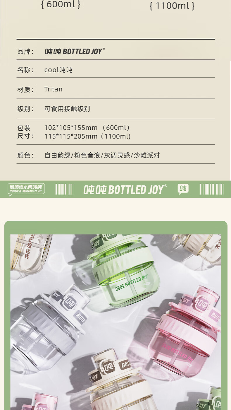 吨吨 钢环款吸喝弹跳盖水杯D9 1100ml