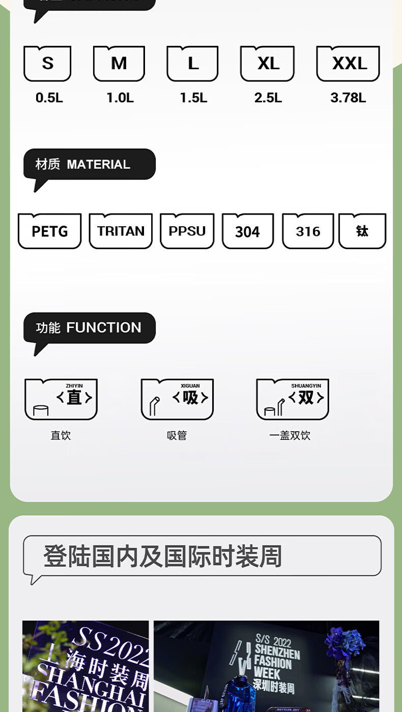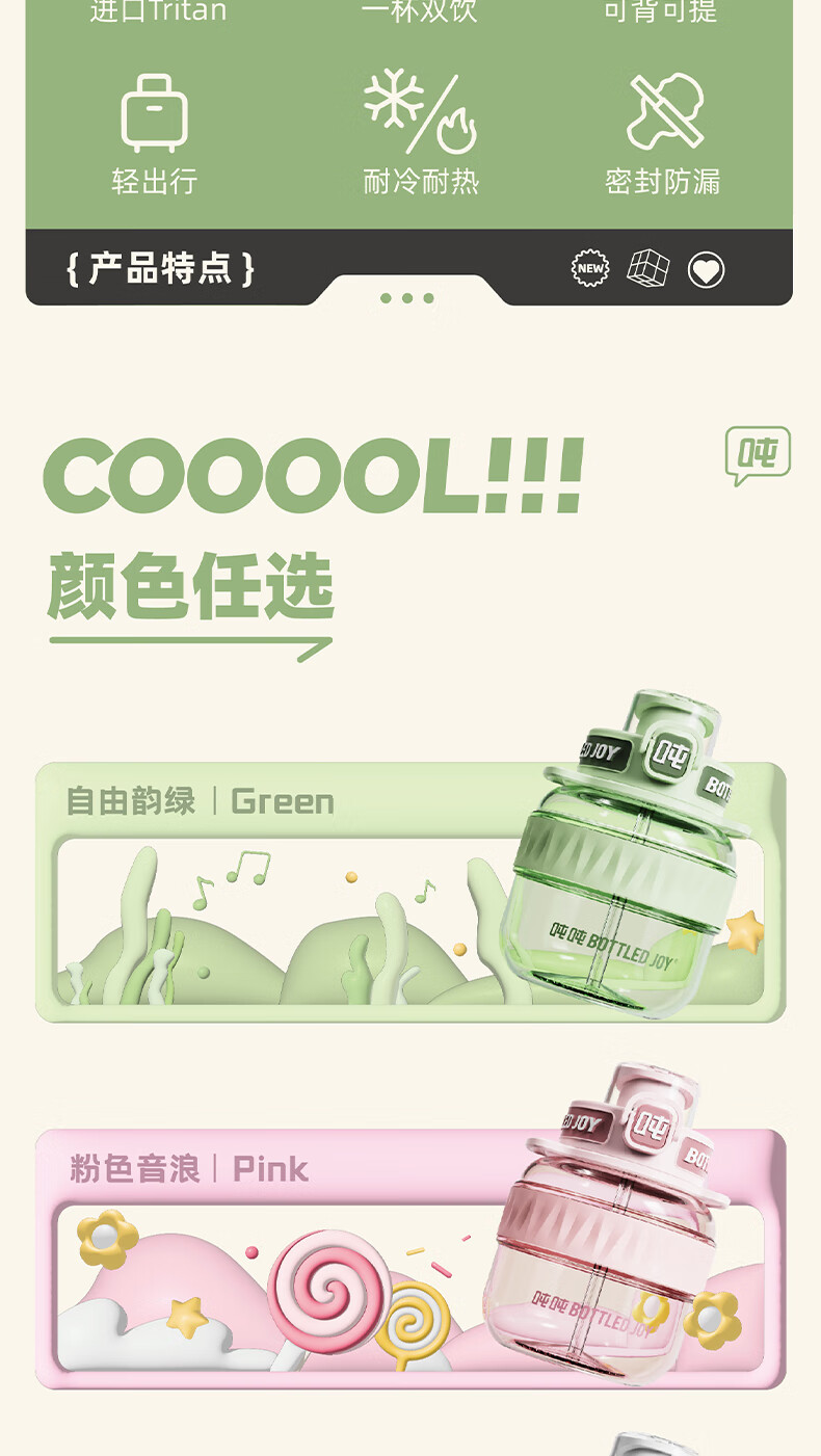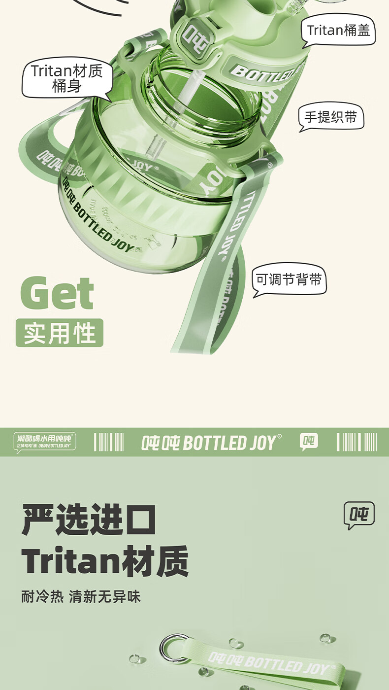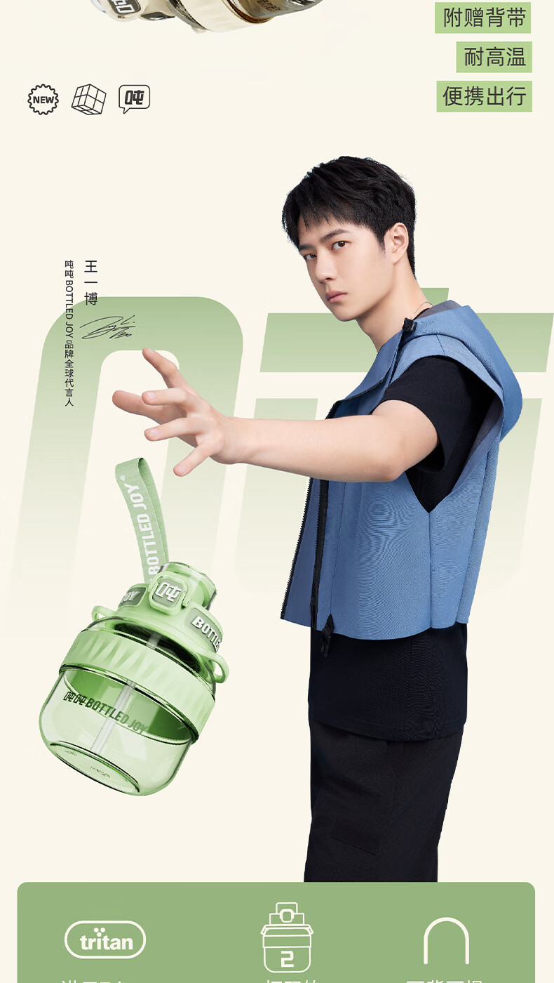 吨吨 钢环款吸喝弹跳盖水杯D9 1100ml