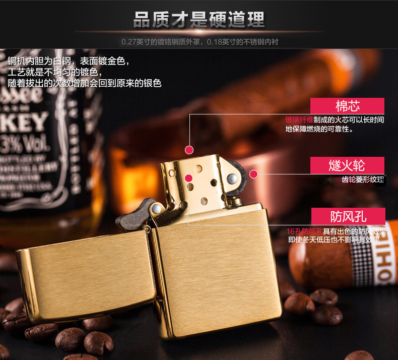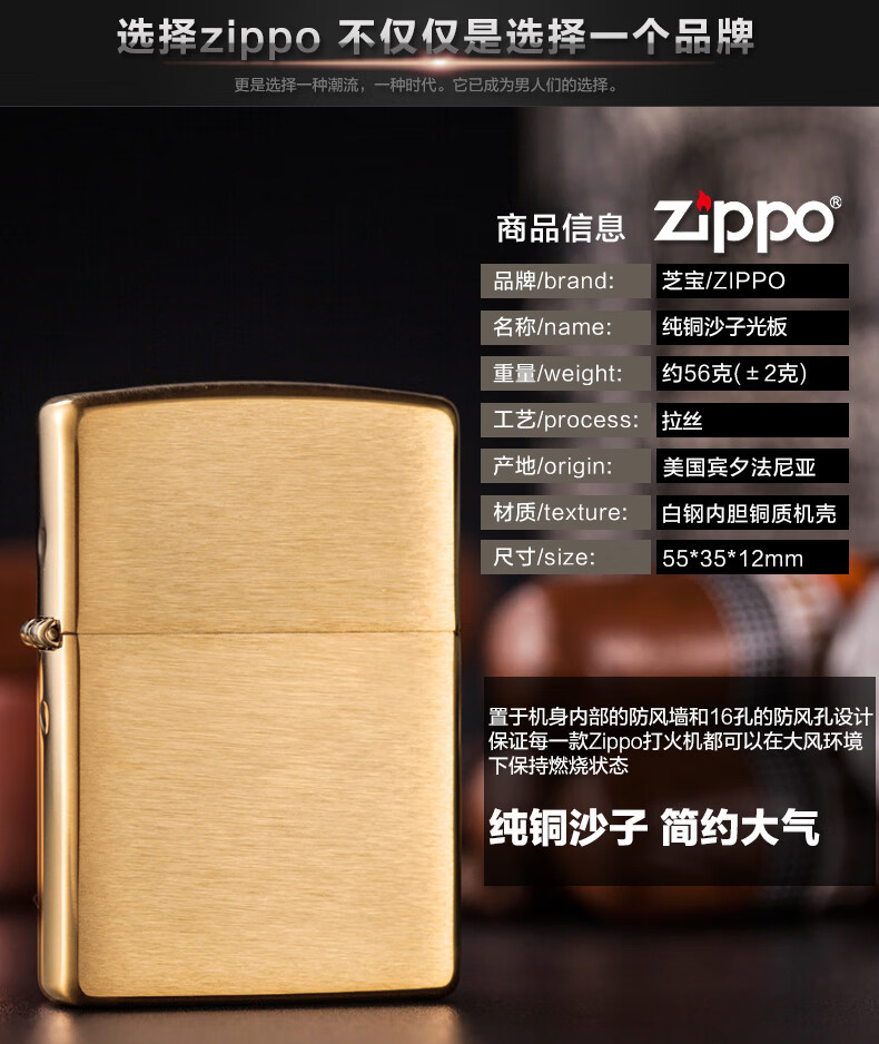 ZIPPO 打火机 防风煤油打火机铜沙子204B
