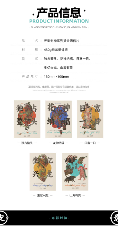 成都博物馆 【皮影光影封神明信片 】博物馆文创礼品成都纪念品中国风个性明信片财神魁星山海经