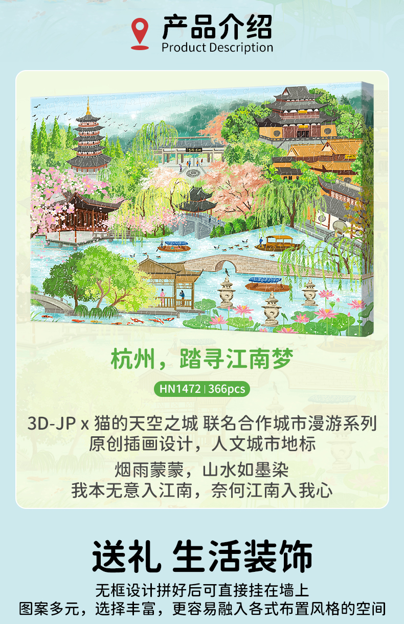 366片 无框拼图 HN1472 杭州,踏寻江南梦