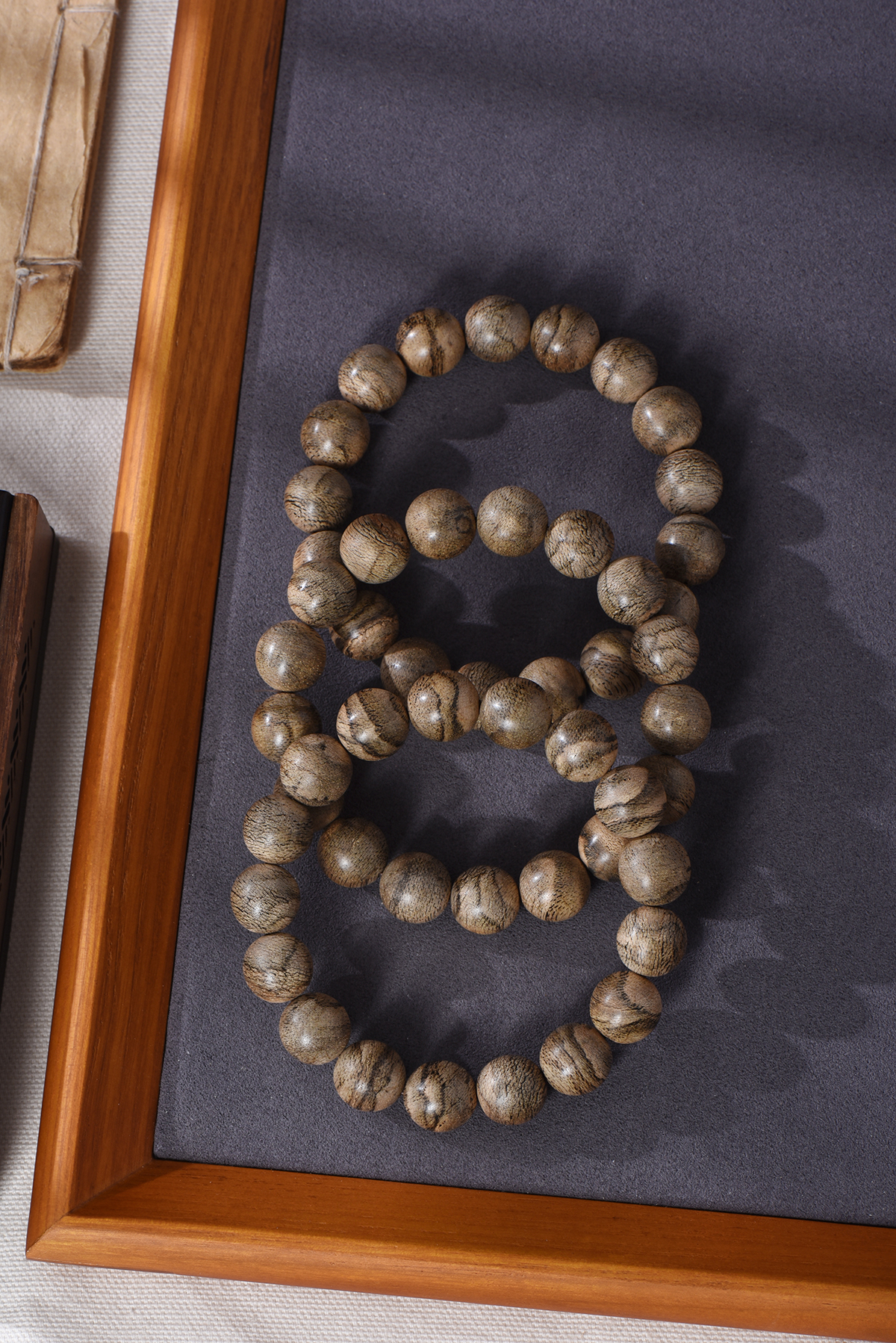 每颗 13.5mm 的圆珠,结油都特别细腻,油脂线像被精心勾勒过,清晰又飘逸,结成的花纹没一条重样的。