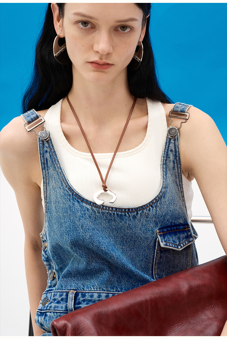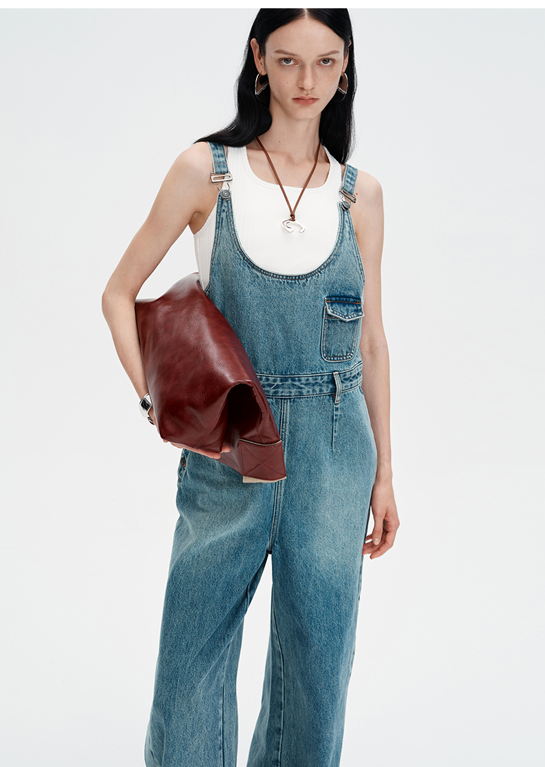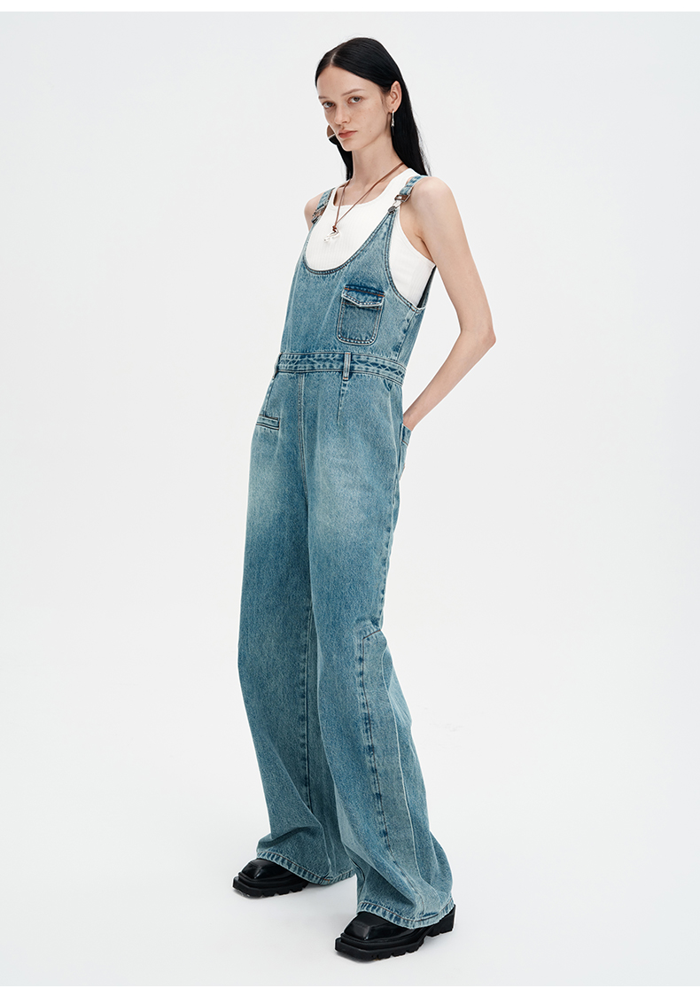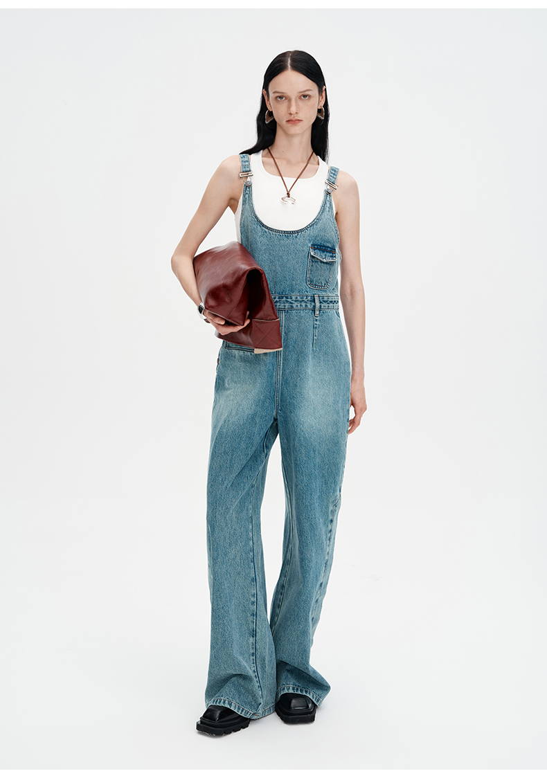 SELFWHO浮影牛仔系列复古纯棉背带牛仔连体裤女2024秋新款连衣裤