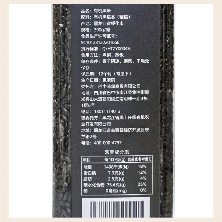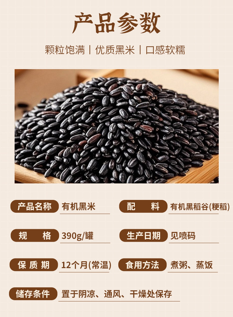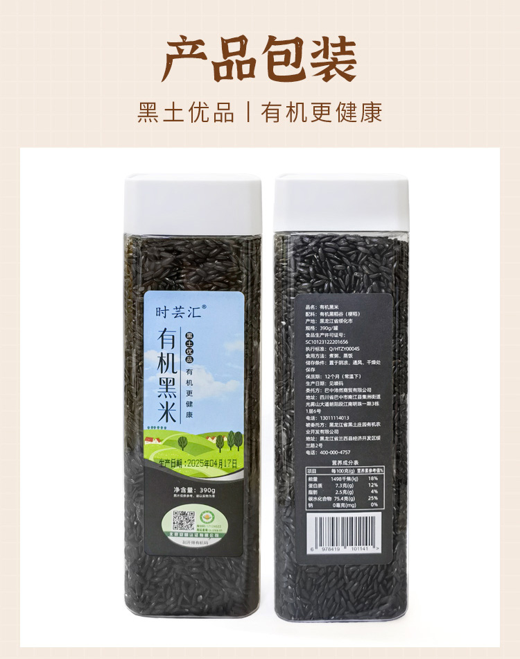 【时芸汇】有机黑米390g/罐*2 五谷杂粮煮粥蒸饭米香浓郁软糯颗粒饱满