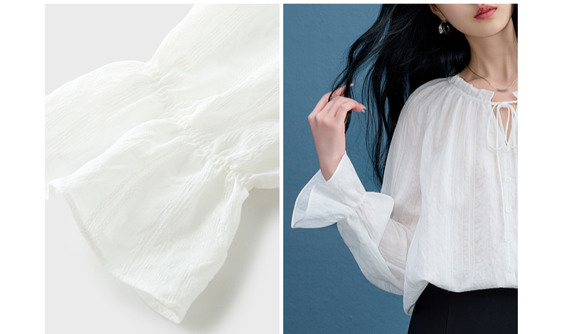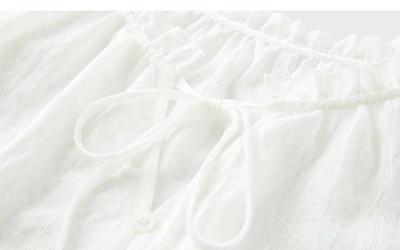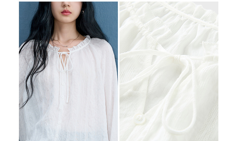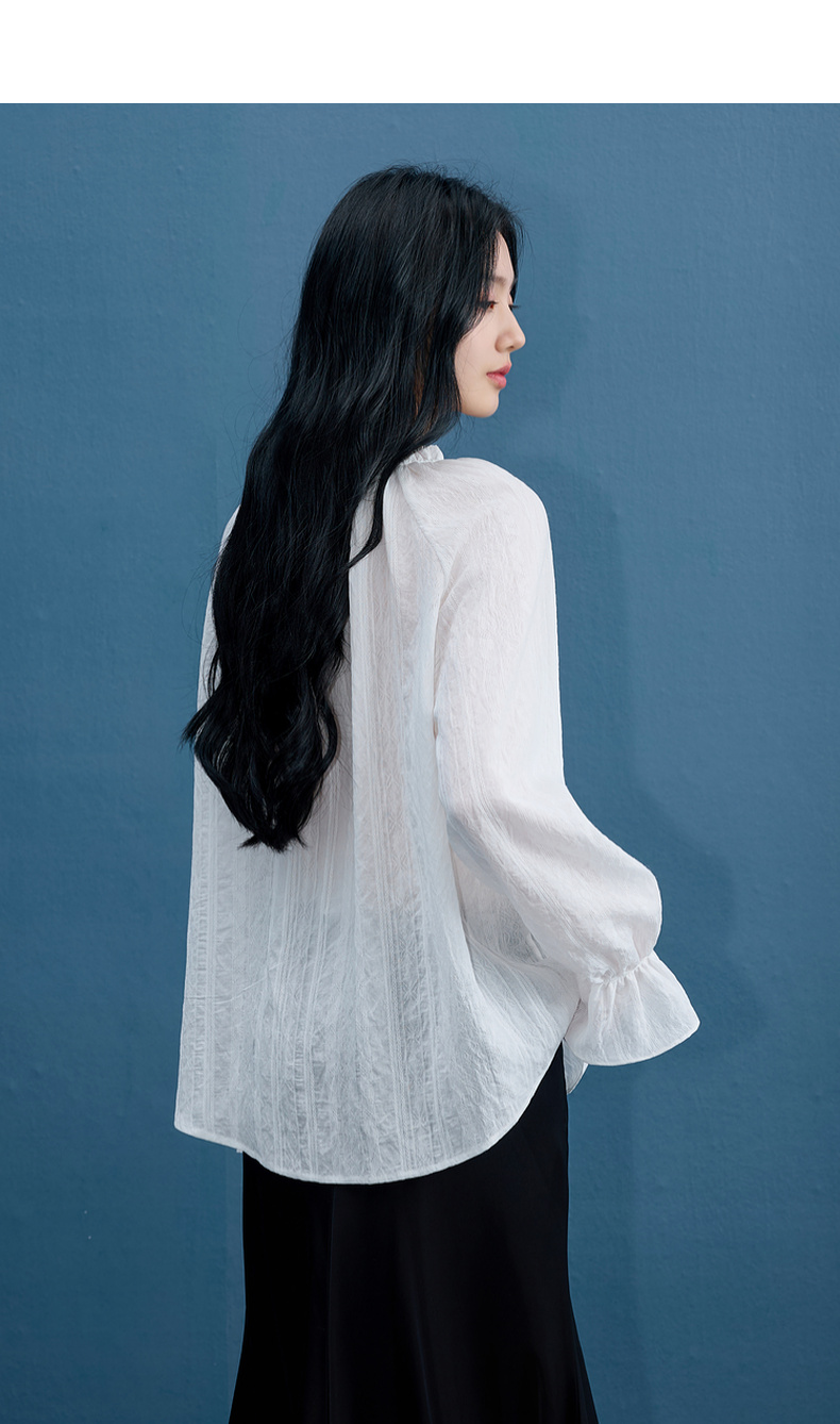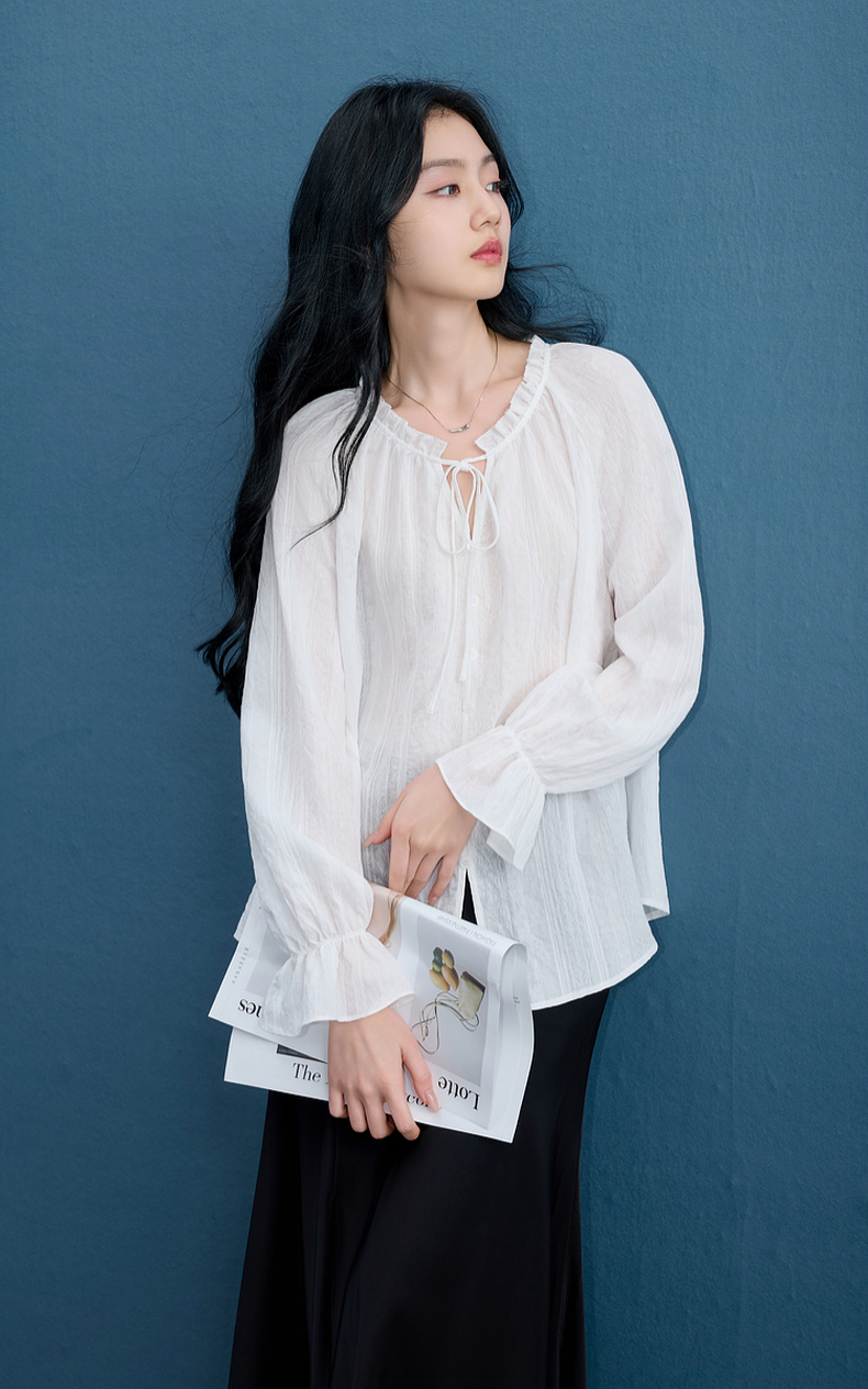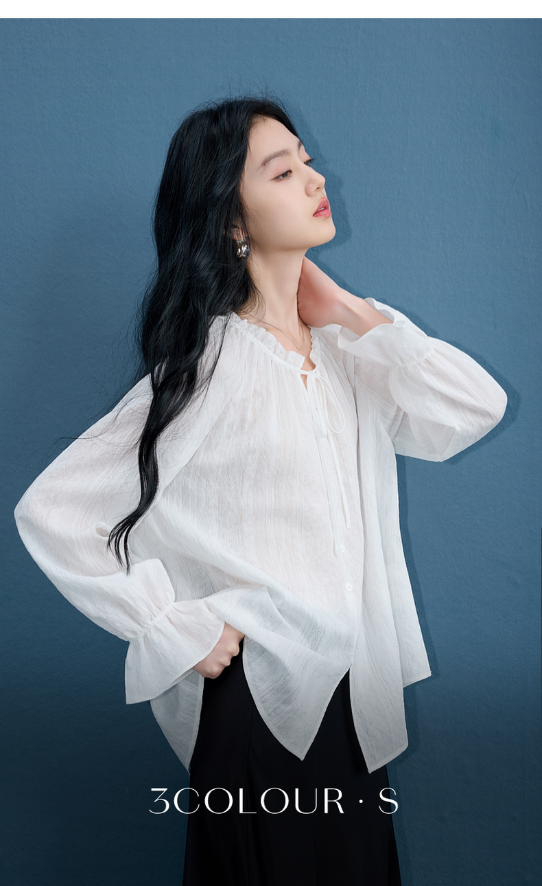 三彩2025秋季新款肌理感小衫木耳边系带上衣宽松法式S