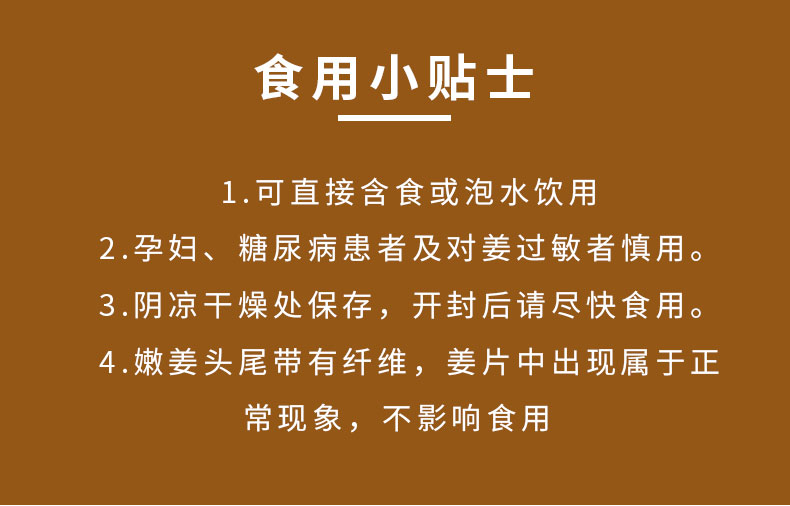 4.嫩姜头尾带有纤维,姜片中出现属于正常现象,不影响食用