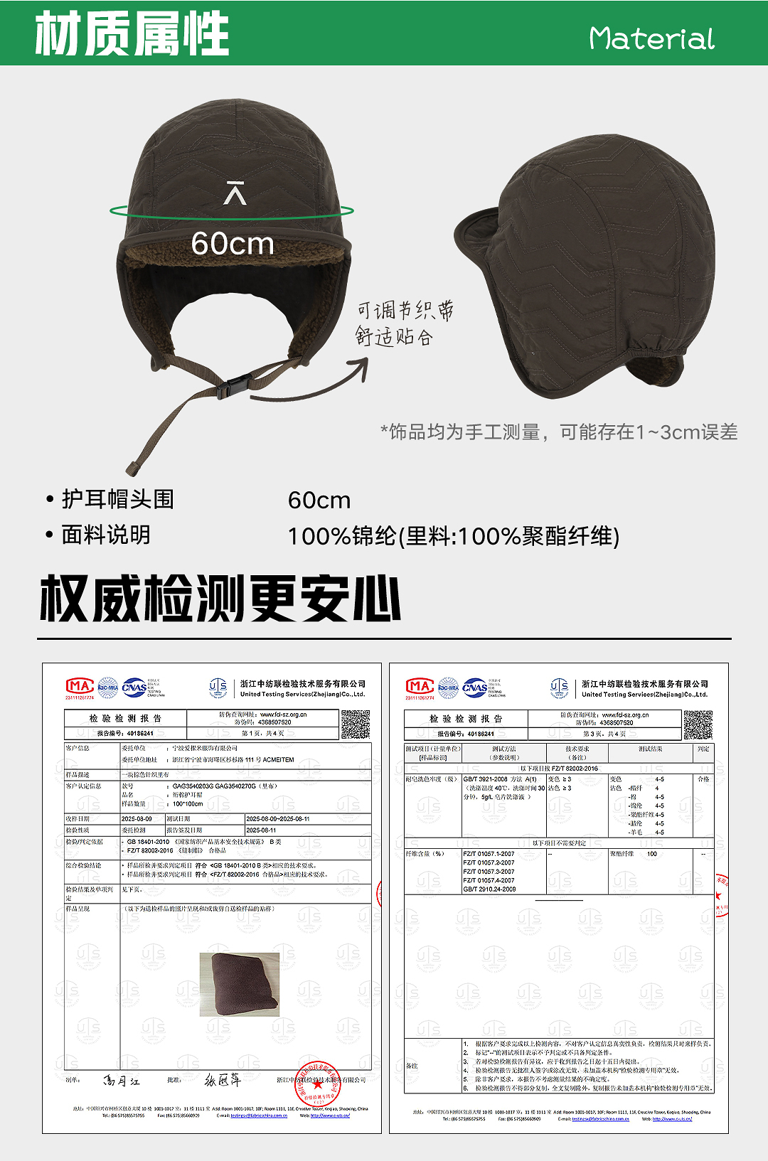【品牌特惠】ACMEITEM爱棵米 户外秋冬保暖可调节绗棉护耳帽加绒雷锋帽GAG3540270G
