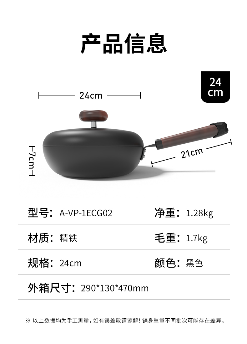 VELOSAN温仑山鹅卵石系列精铁小炒锅24cmVP-1ECG02-5F24
