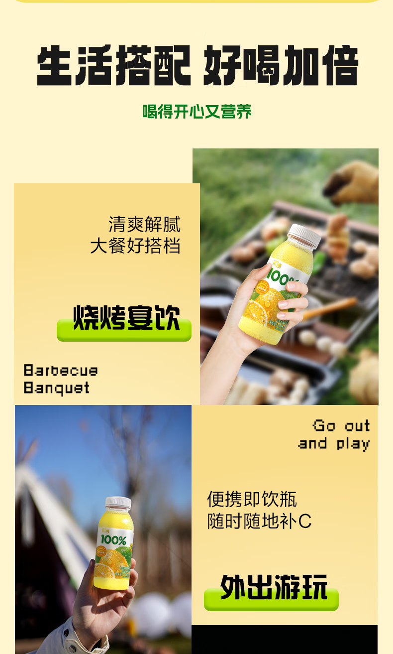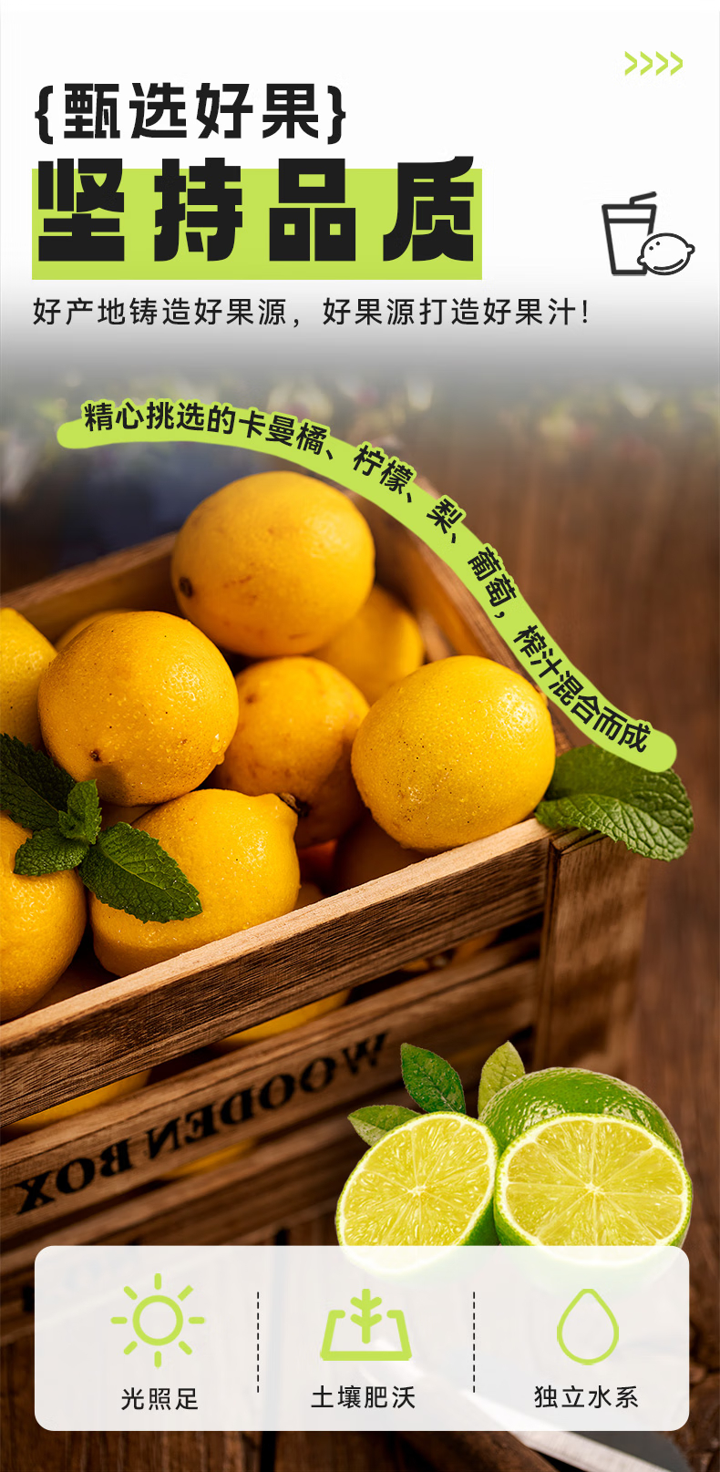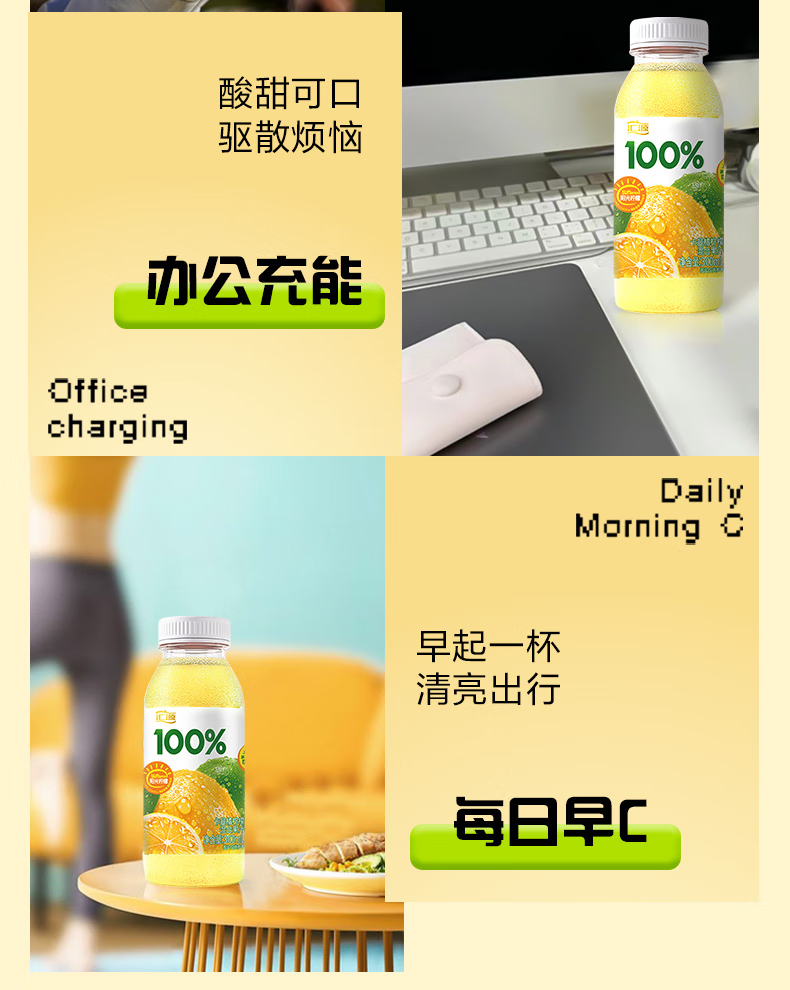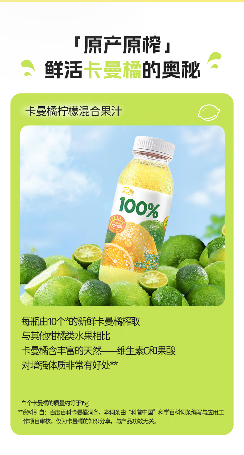 汇源100%阳光柠檬混合果汁300ml*8瓶