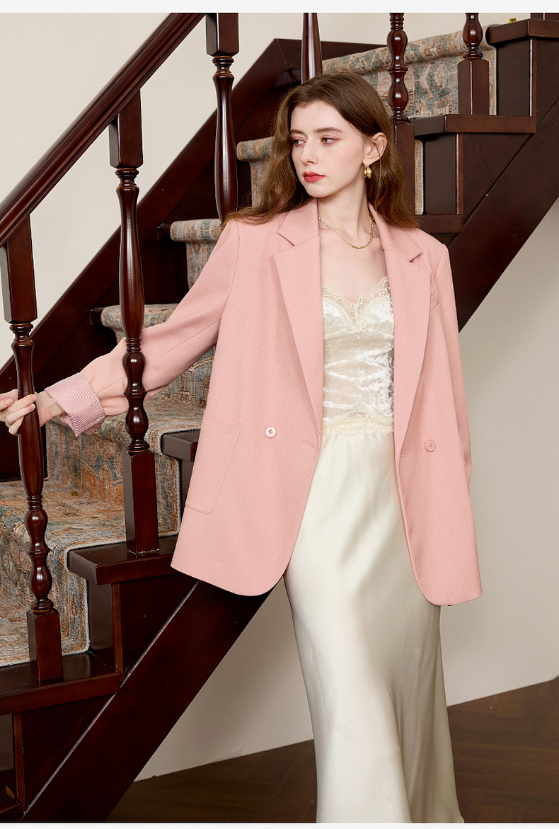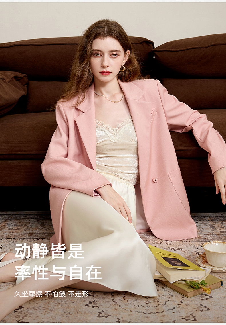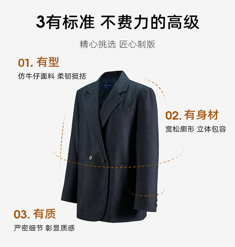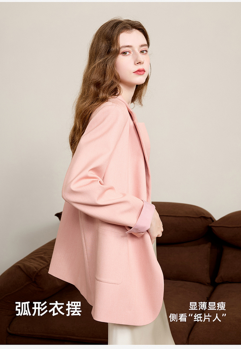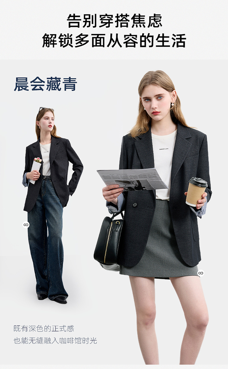 三彩2026春季新款休闲西装外套双排扣简约正肩小西服宽松气质M