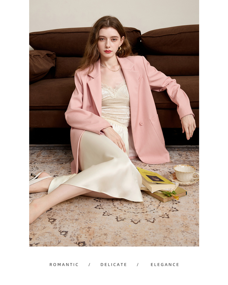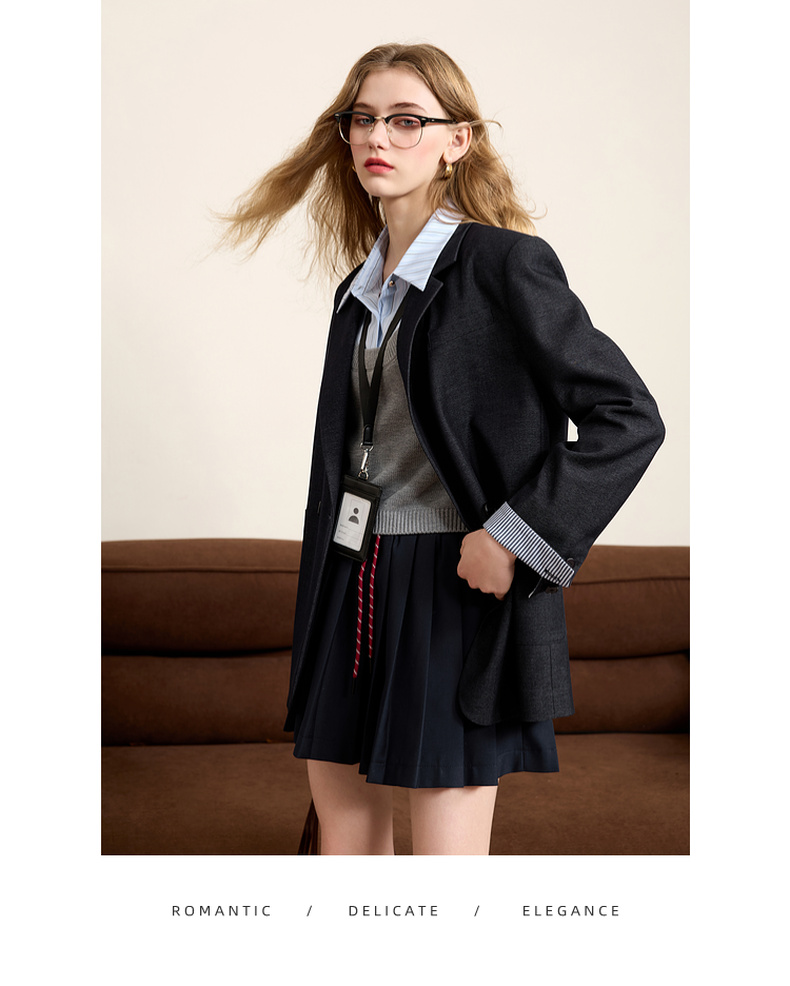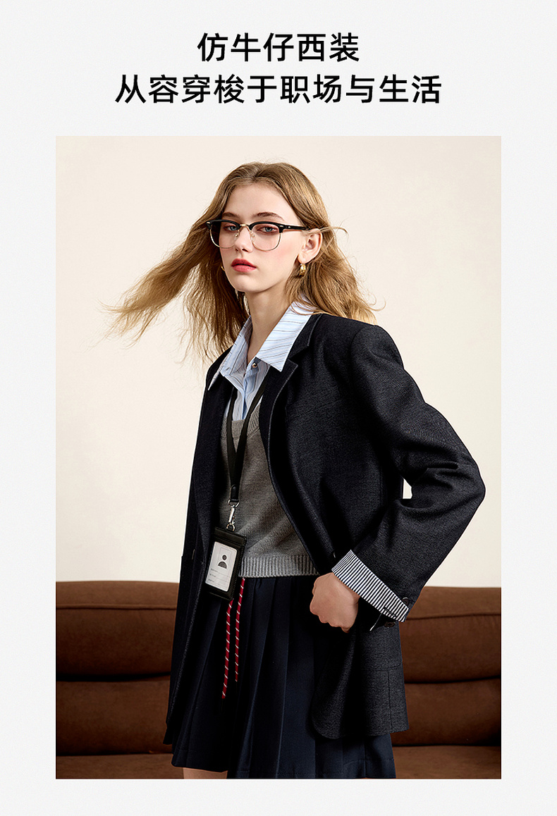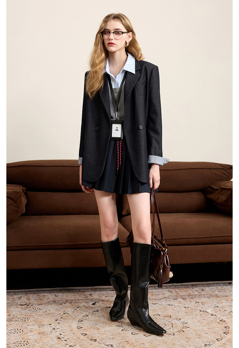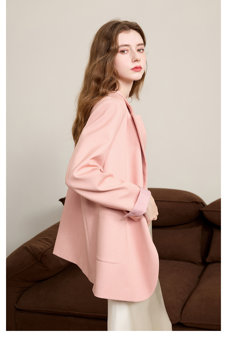 三彩2026春季新款休闲西装外套双排扣简约正肩小西服宽松气质M