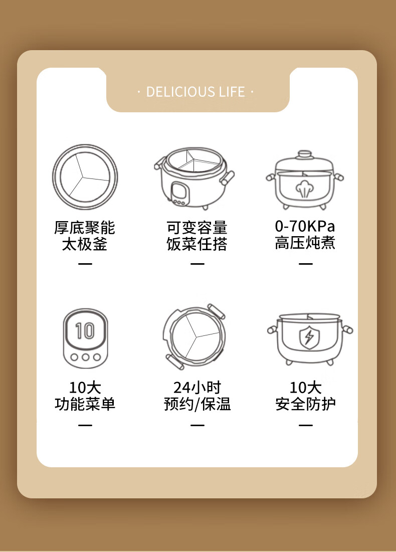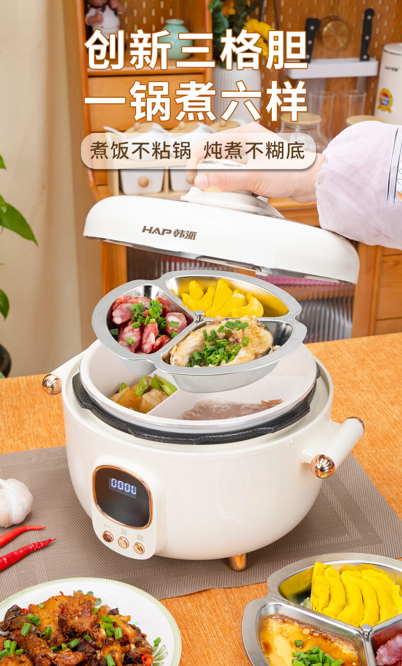 韩派三格鸳鸯锅家用高压双胆电饭煲大容量多功能智能高压力电饭煲鸳鸯胆火锅压力锅