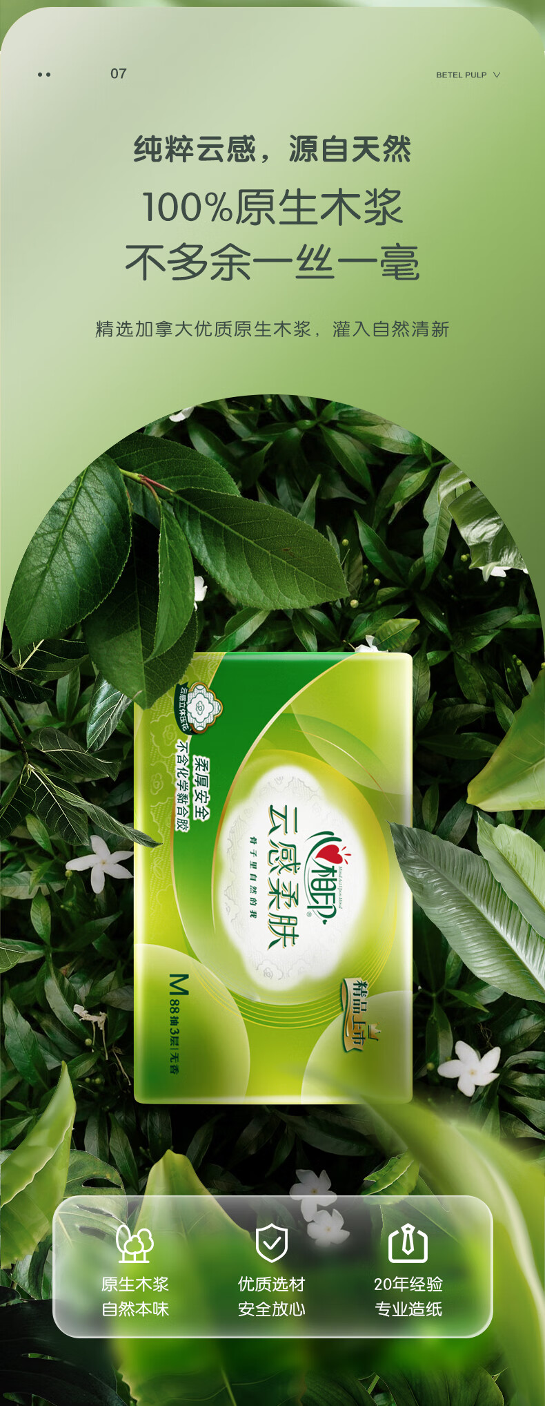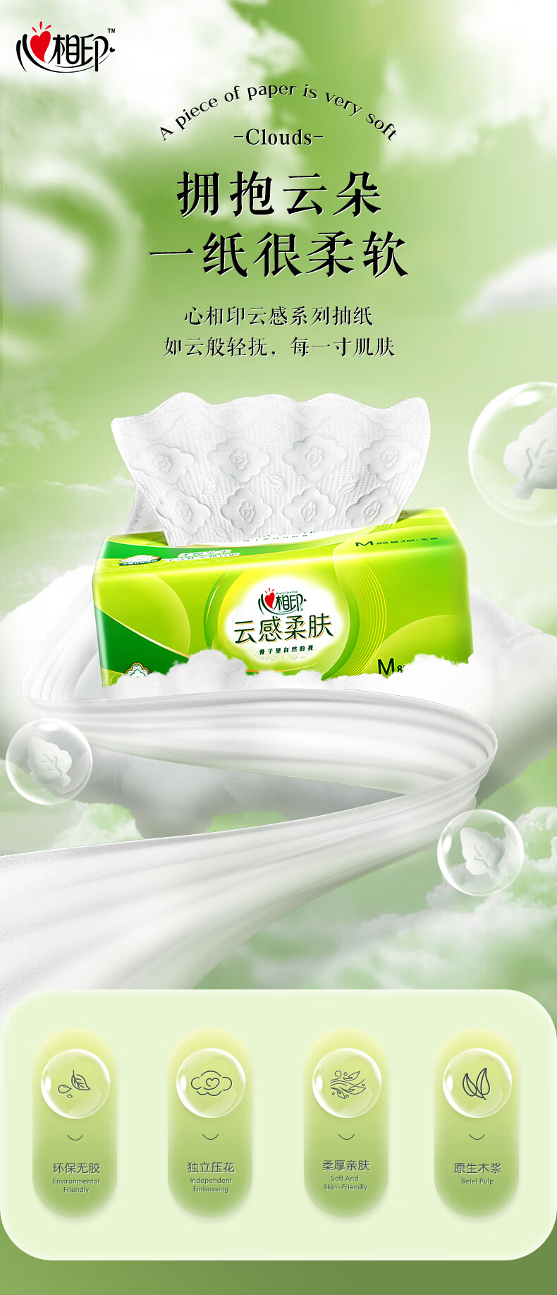 心相印抽纸云感88抽16包装三层立体压花塑装纸(M码)