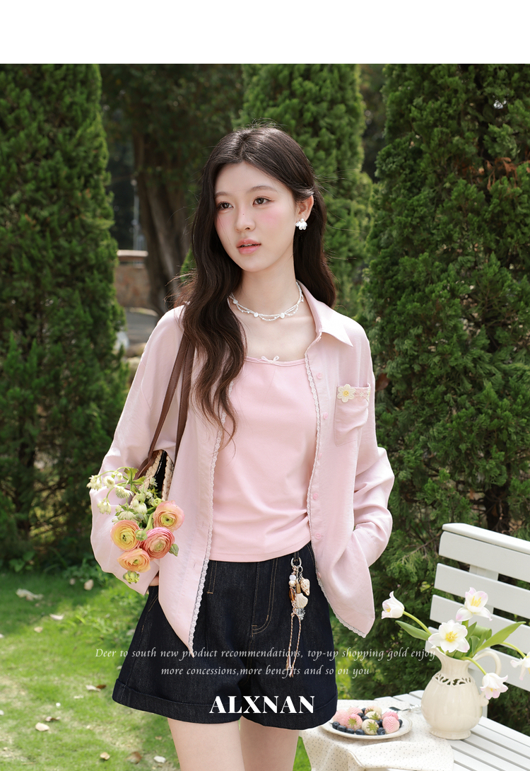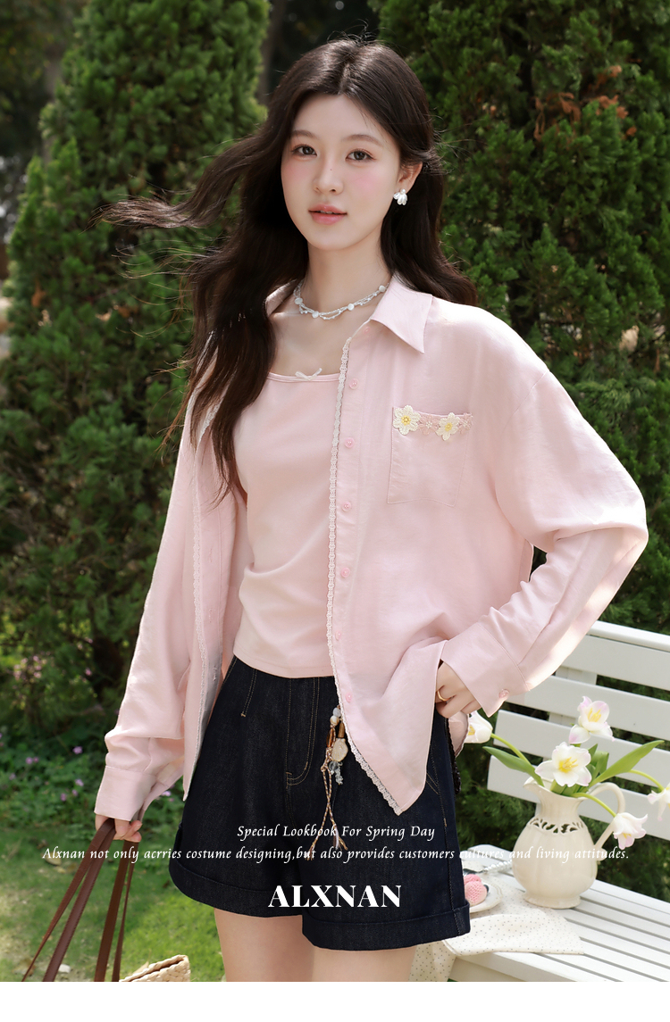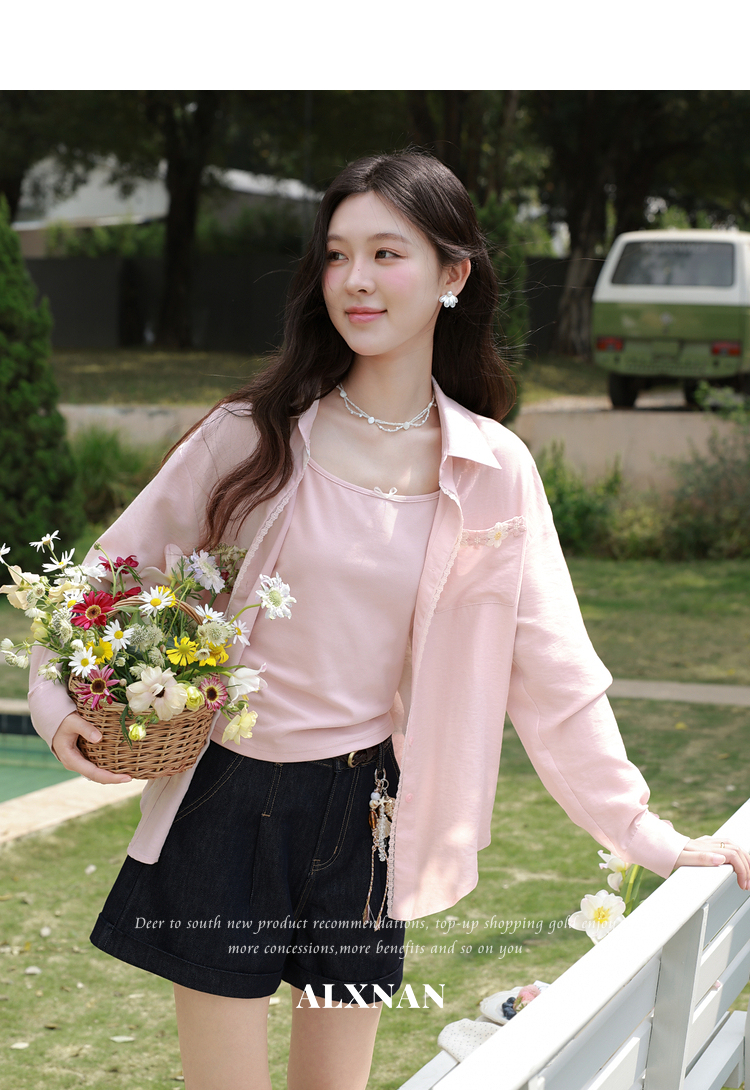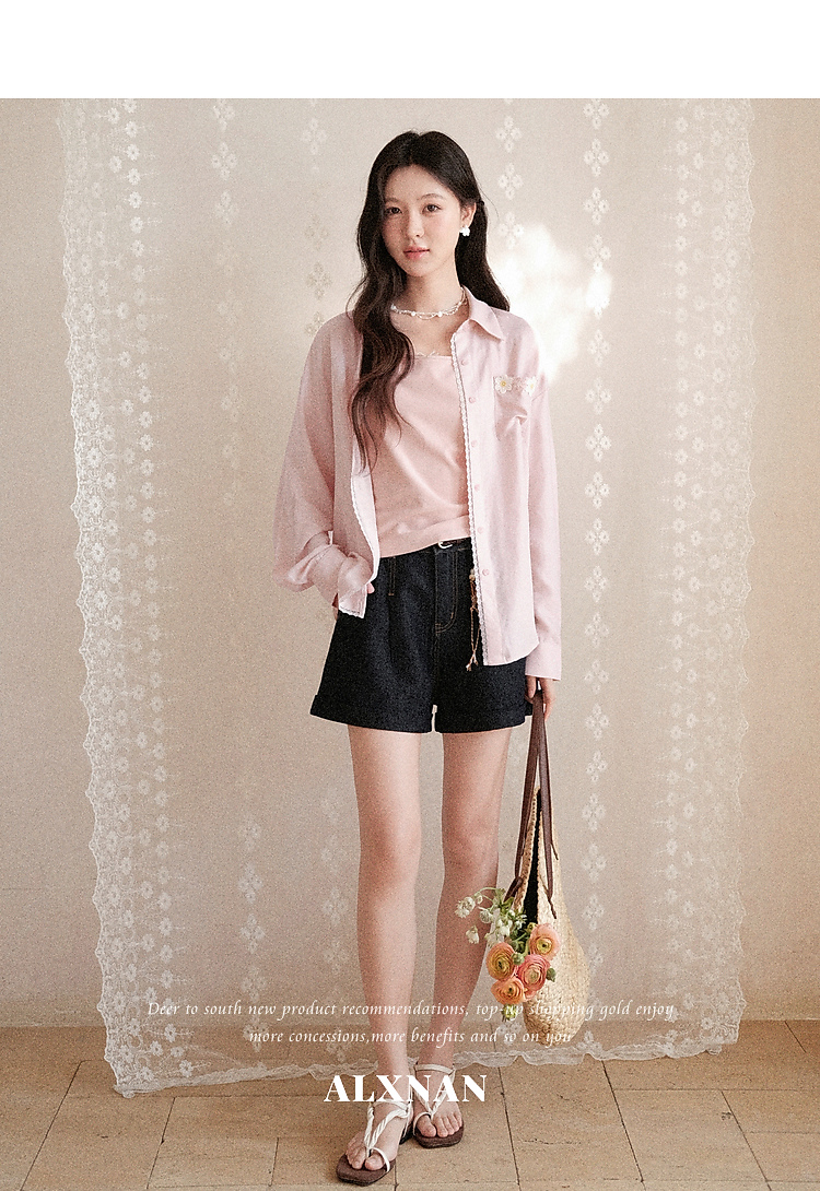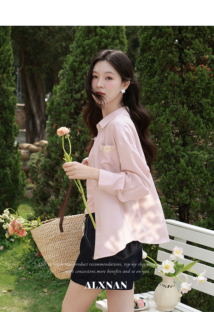 鹿向南「桃汽小盏」设计感甜美粉色衬衫女夏新款独特衬衣流行上衣
