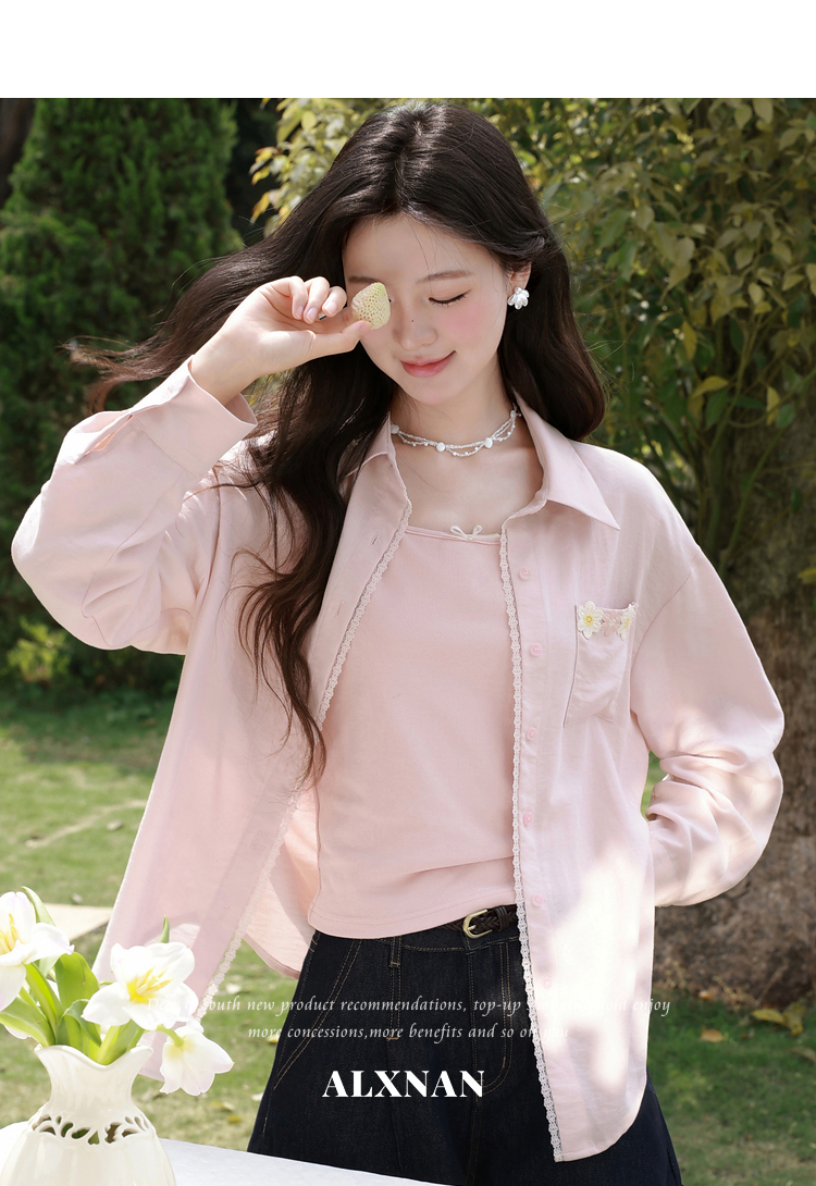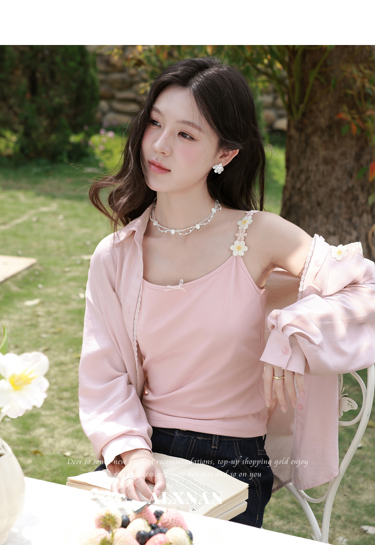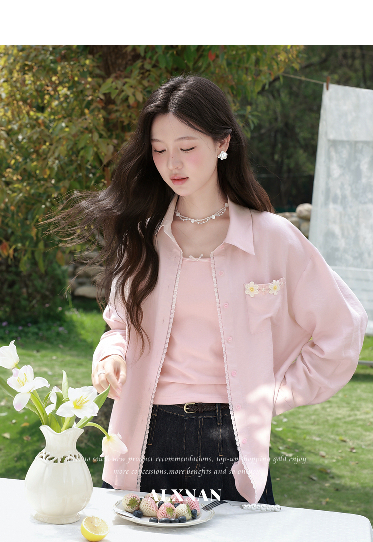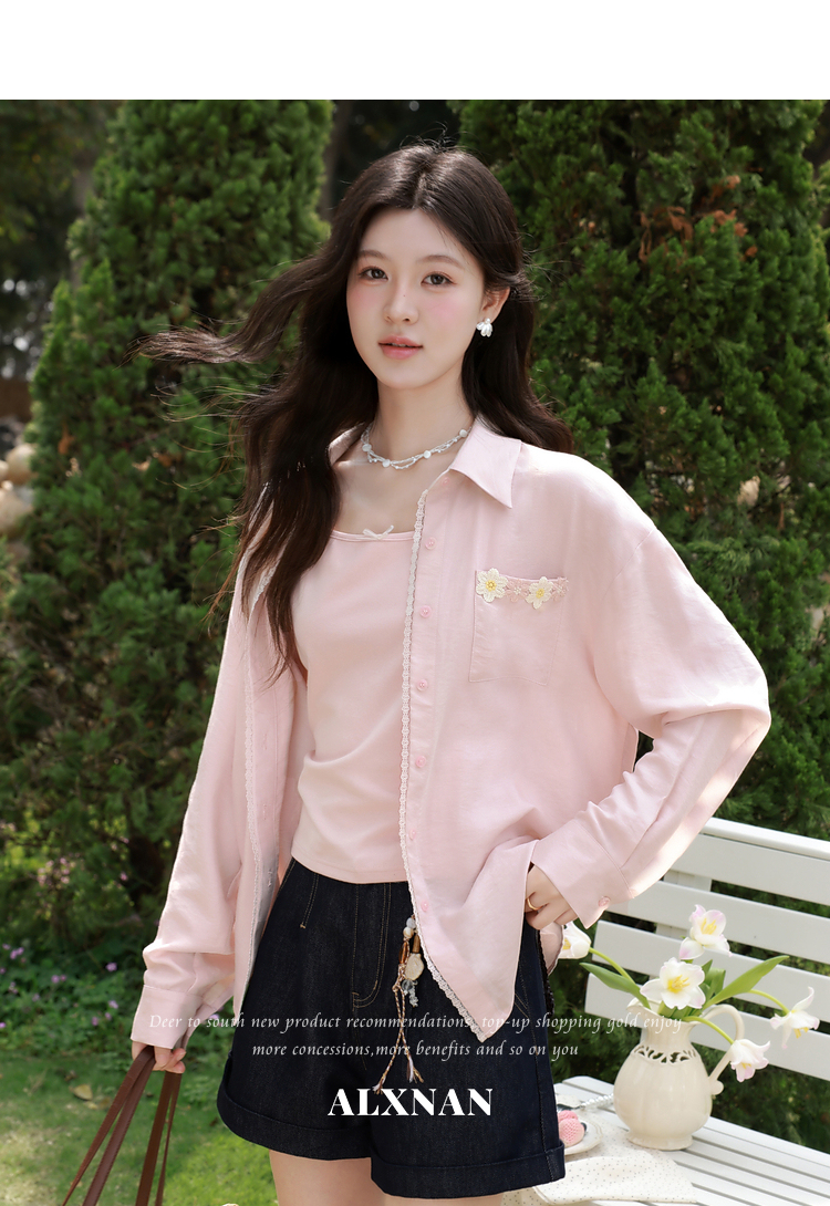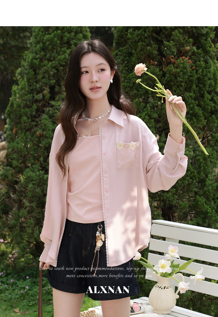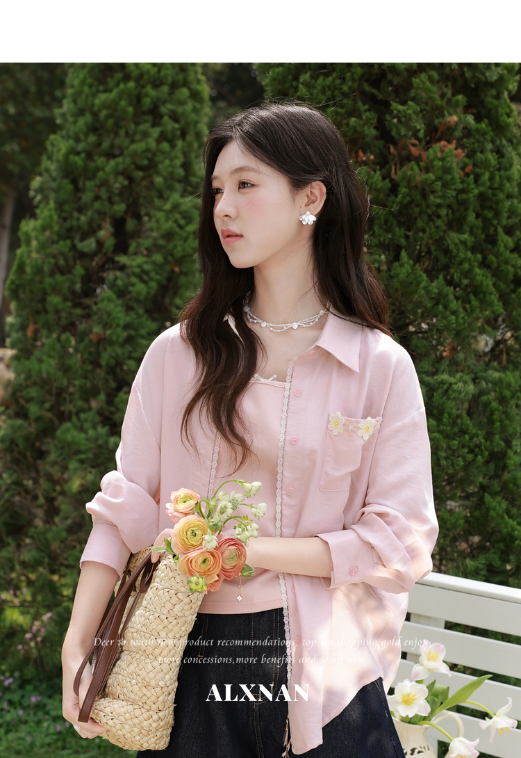 鹿向南「桃汽小盏」设计感甜美粉色衬衫女夏新款独特衬衣流行上衣