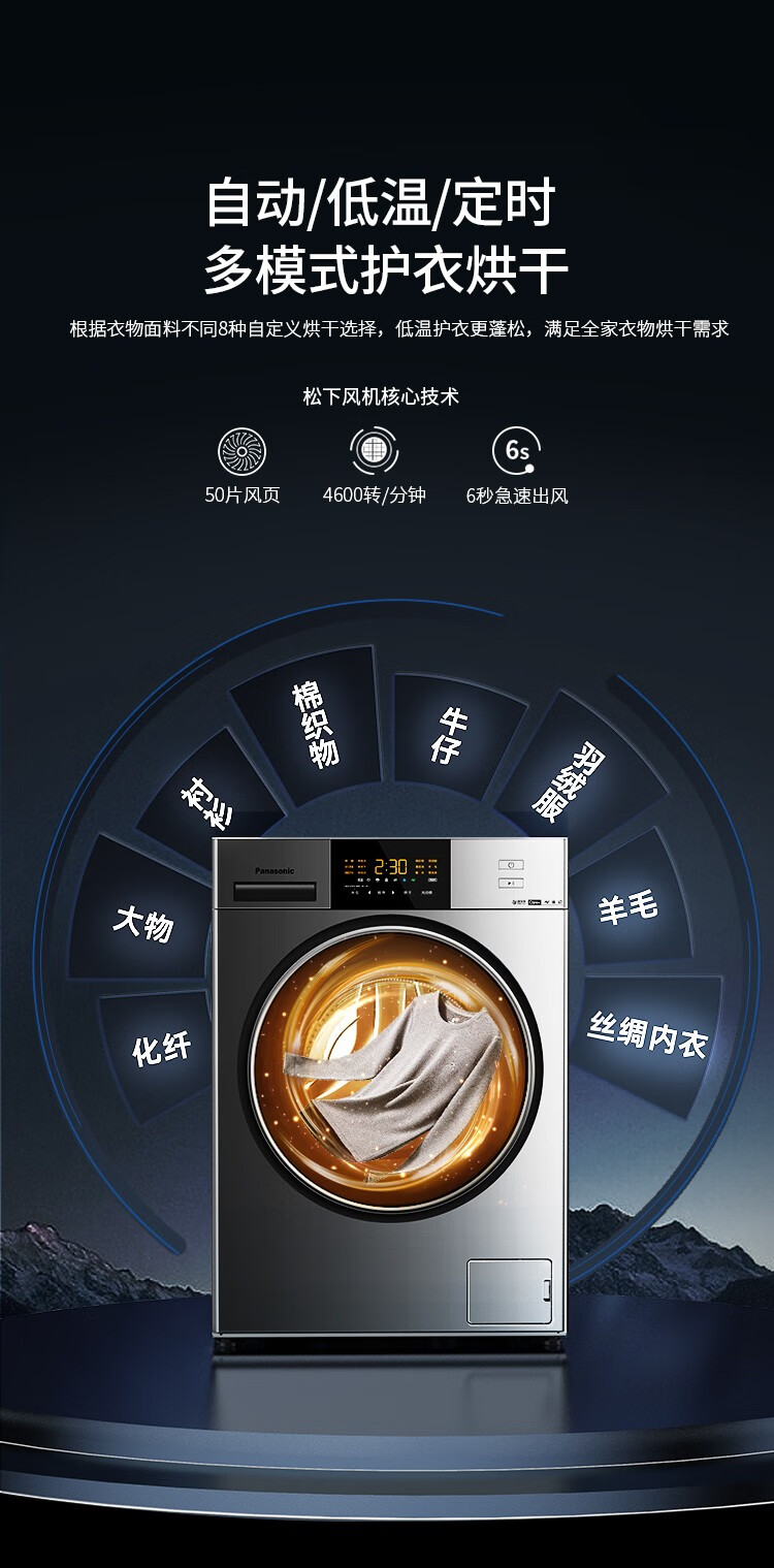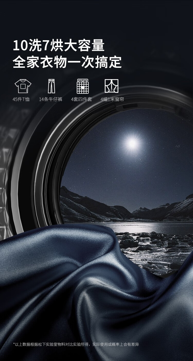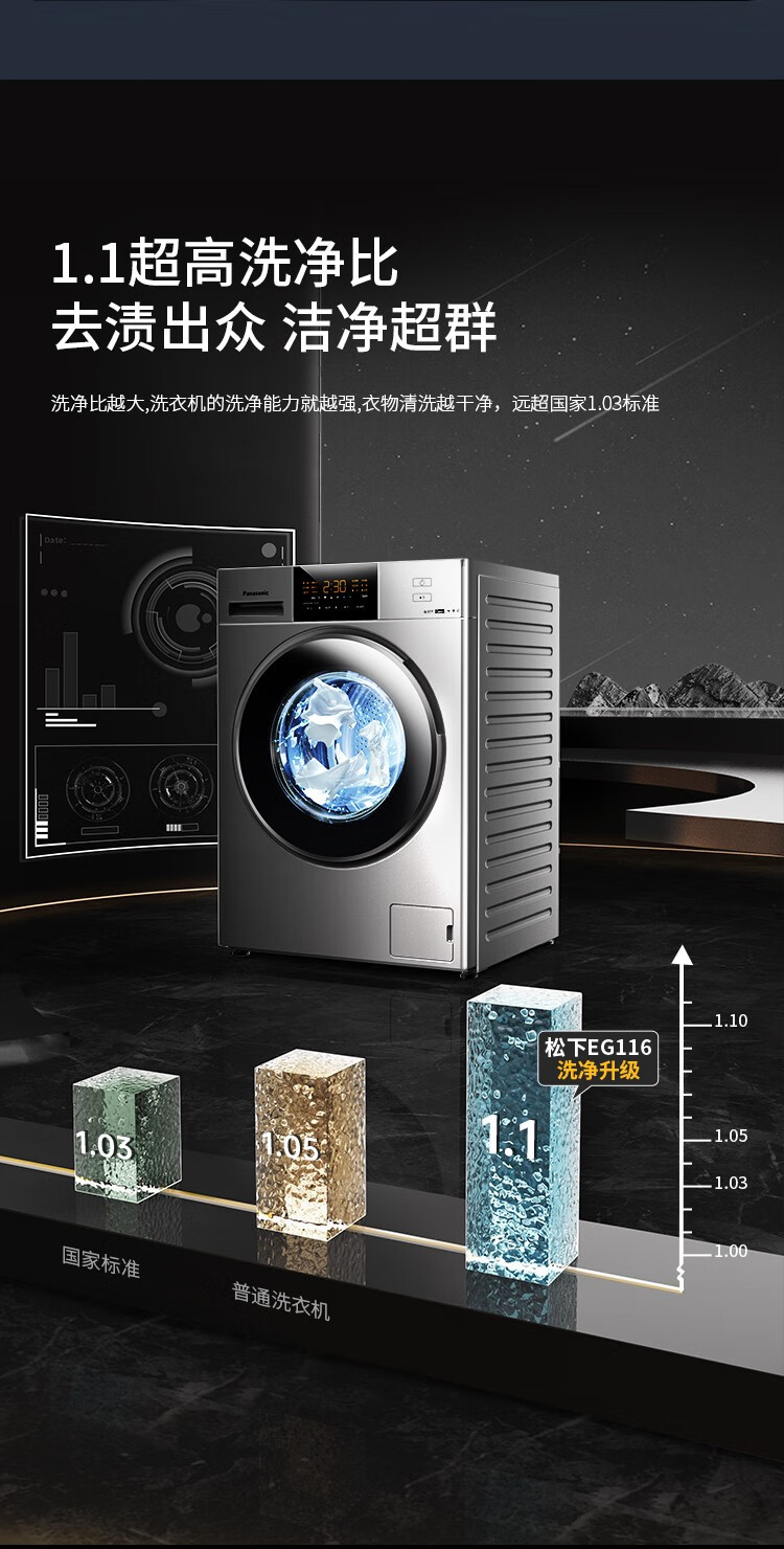 松下(Panasonic)10+7kg一体全自动滚筒洗衣机除菌空气洗暖衣1.1洗净比 XQG100-EG116