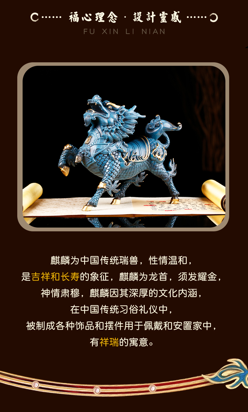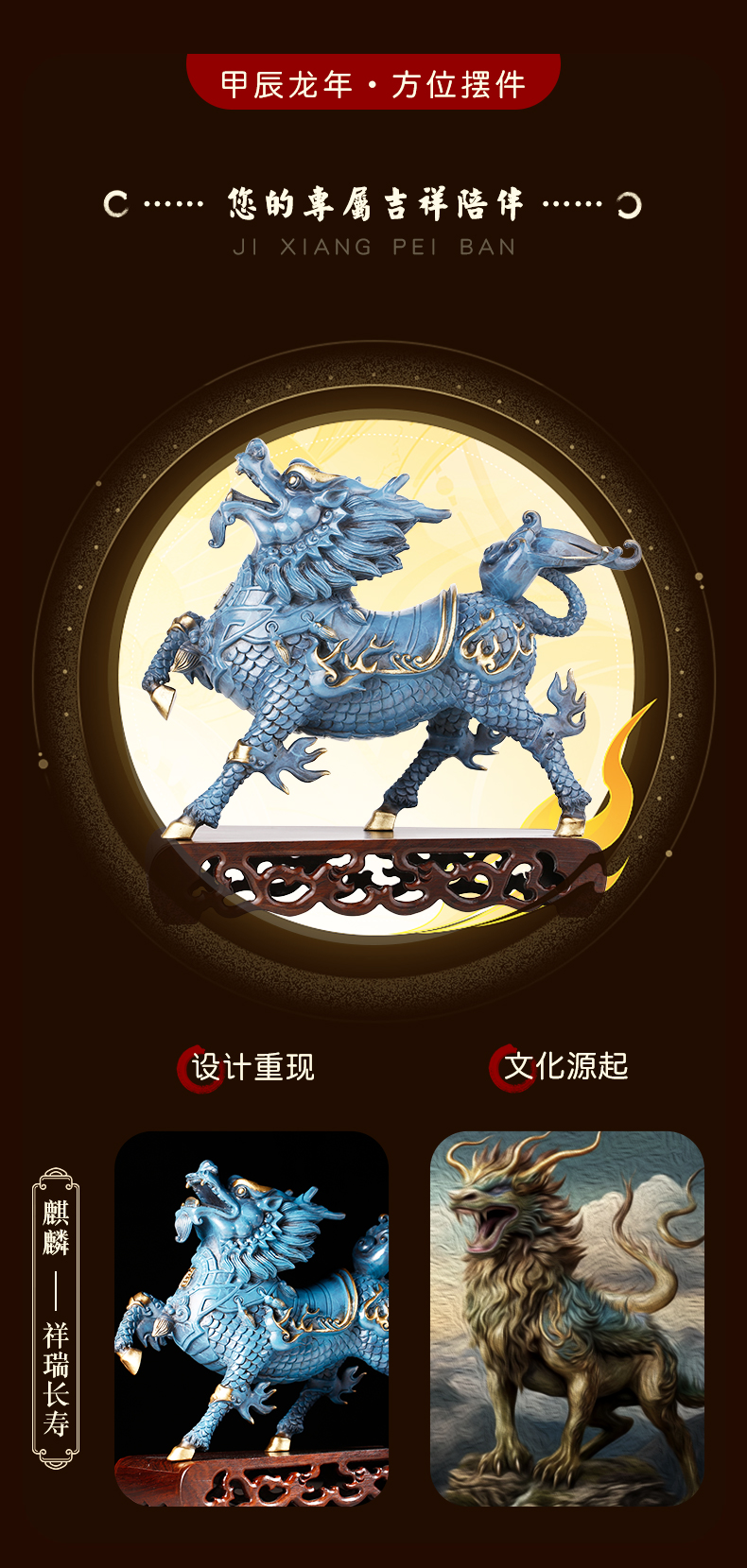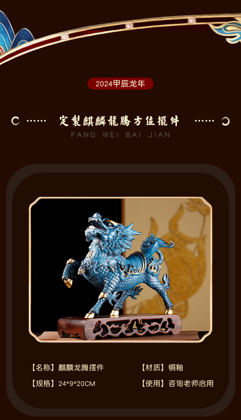 慈元阁2024年方位吉祥物麒麟隆腾铜釉摆件家居玄关客厅书房办公室摆件